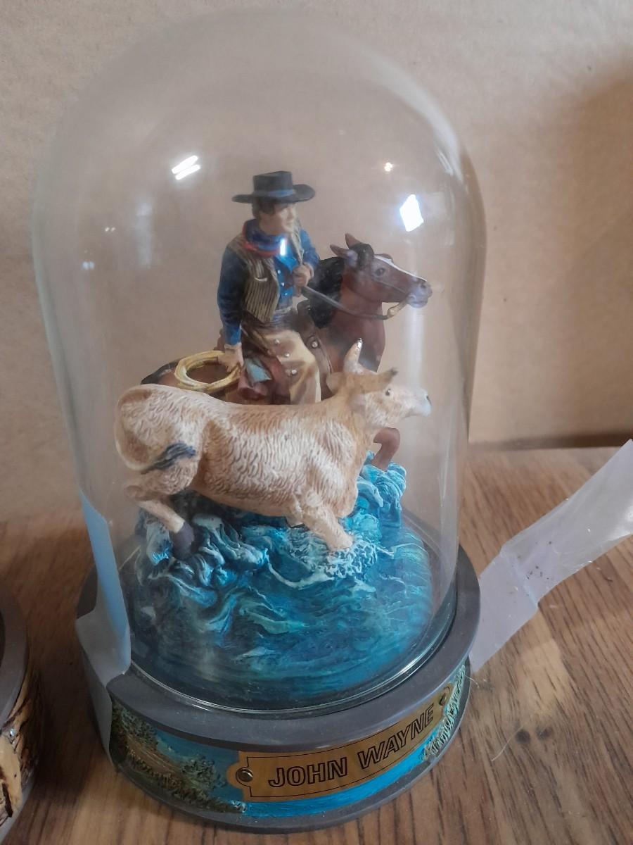 LOT 107 GLASS GLOBED JOHN WAYNE HAND PAINTED LIMITED EDITION NUMBERED SCULPTURES