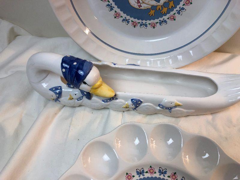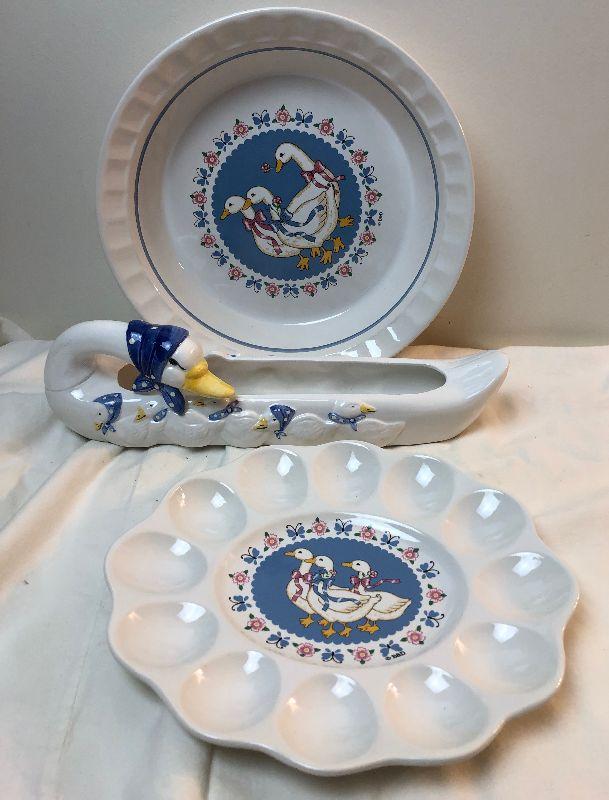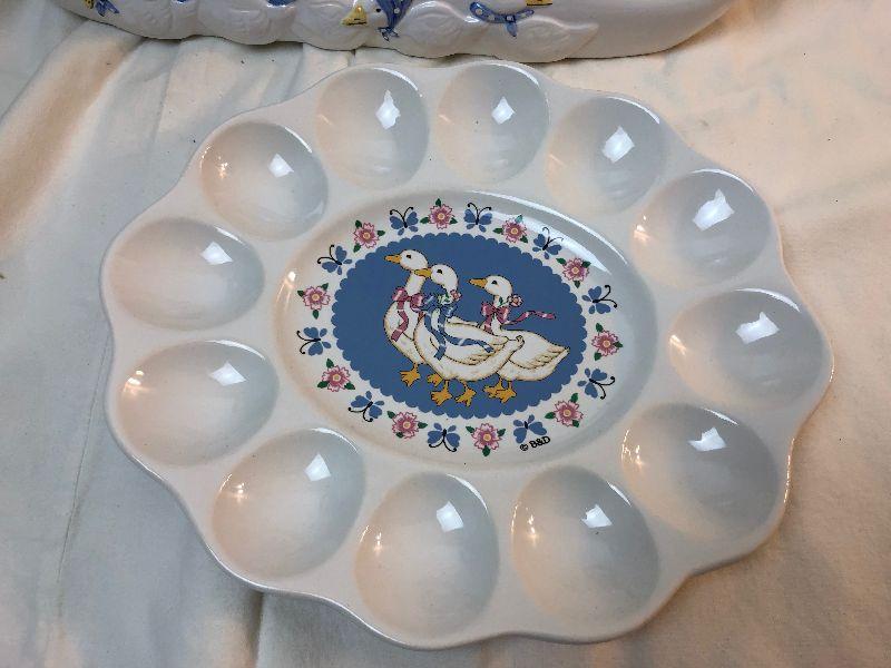 Lot #107 Goose dishes deviled eggs, pie plate and dish