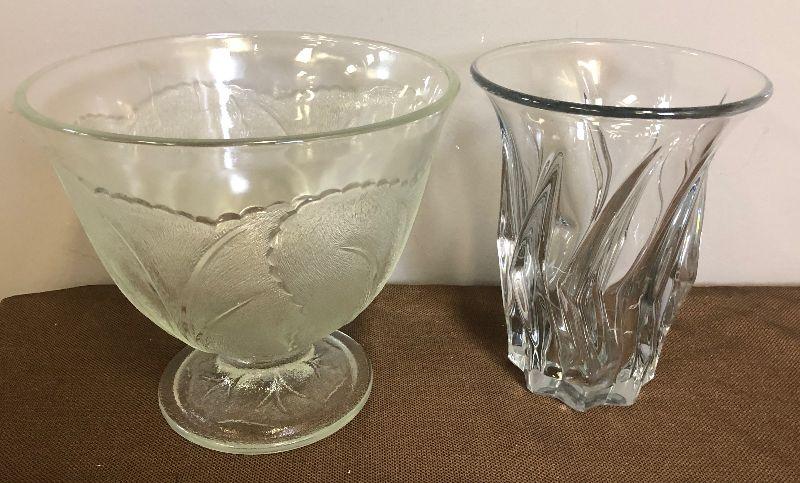 Lot #107 Leaf Pattern Punch Bowl and Flower Vase
