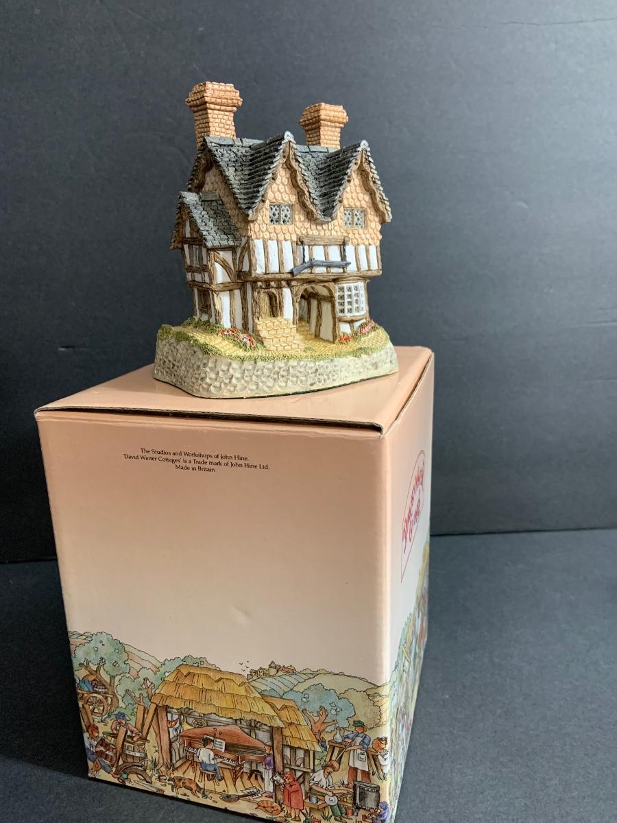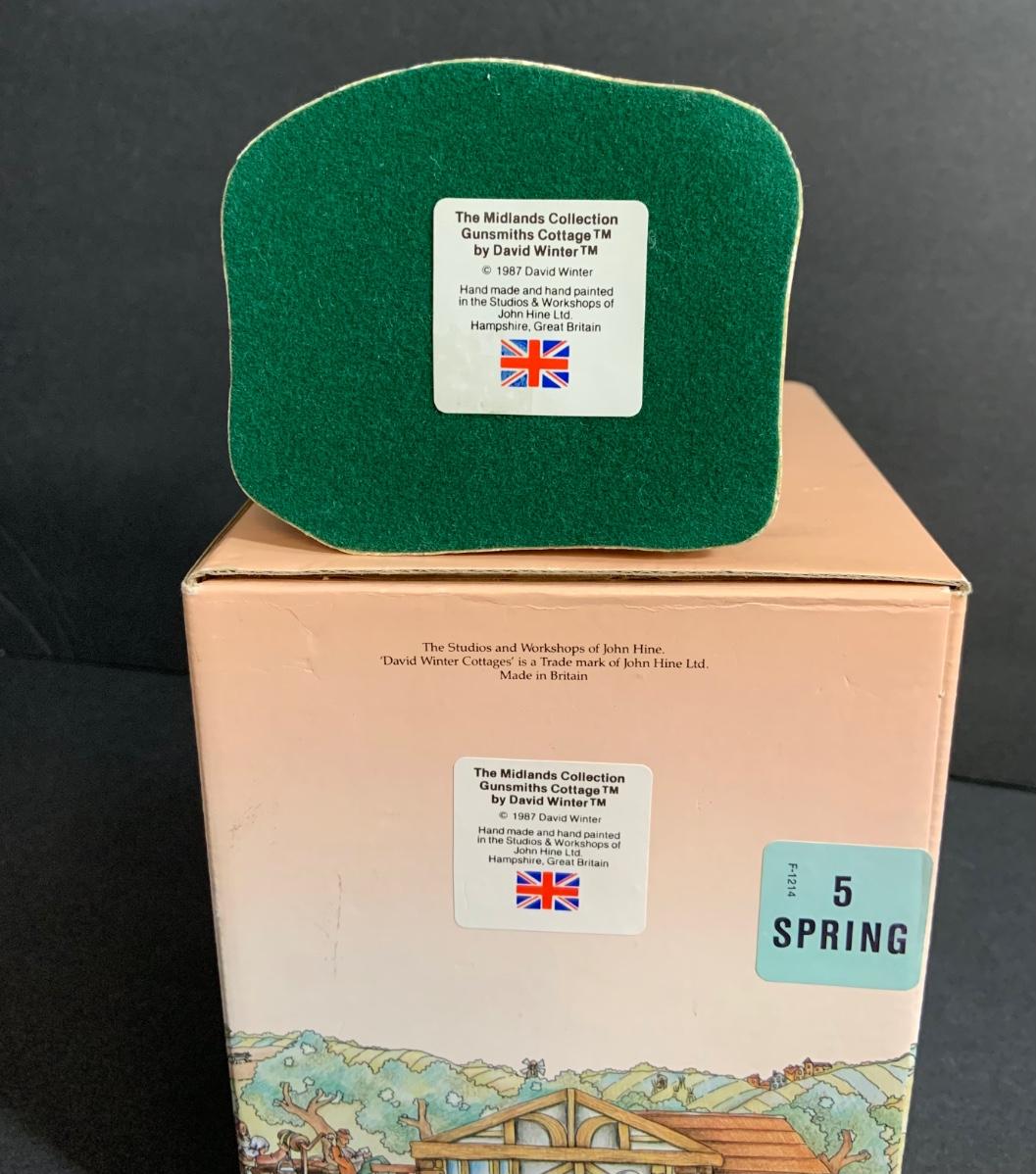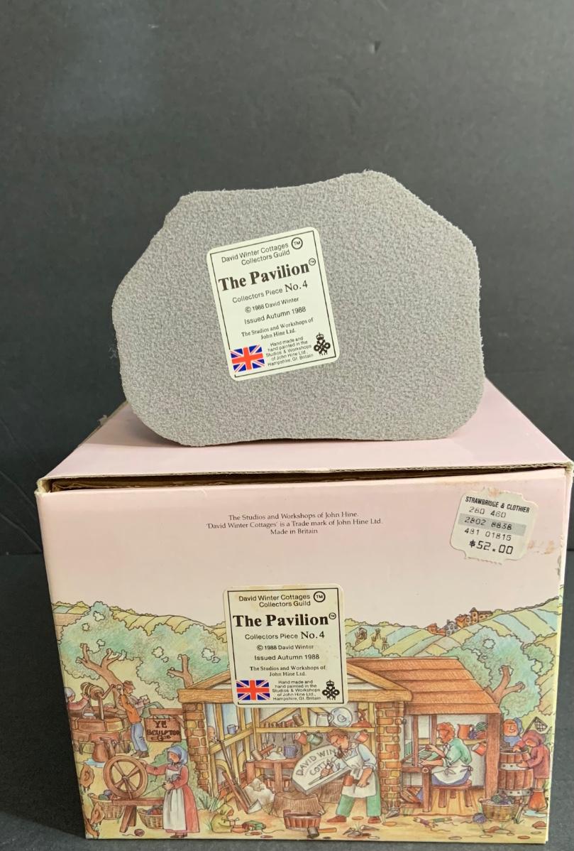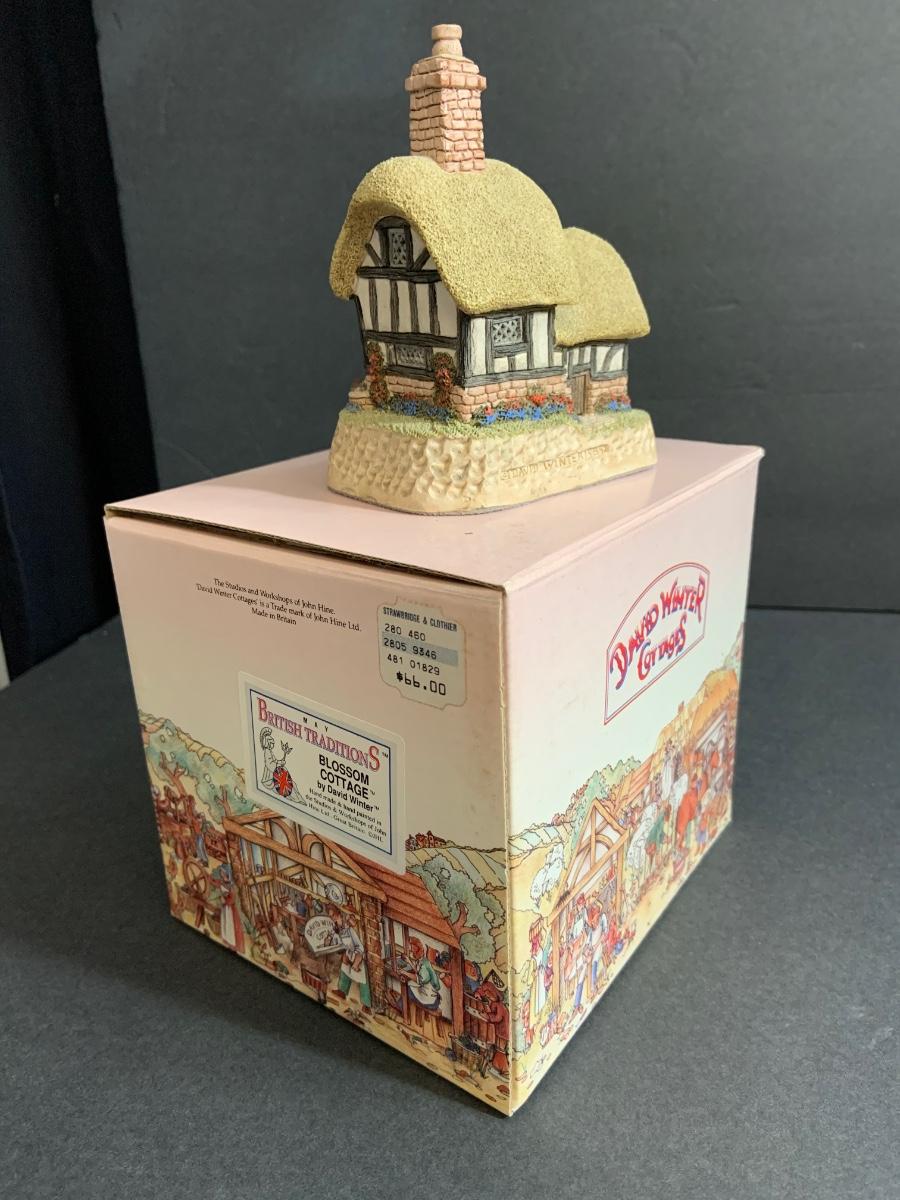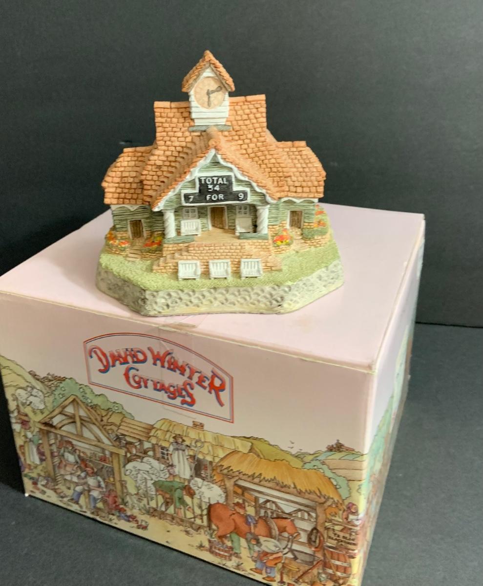 Lot :107: 3 David Winter Cottages- COLLECTORS GUILD PIECE NUMBER 4 The Pavilion, MAY BRITISH TRADITIONS Blossom Cottage & Midlands Collection Gunsmiths Cottage