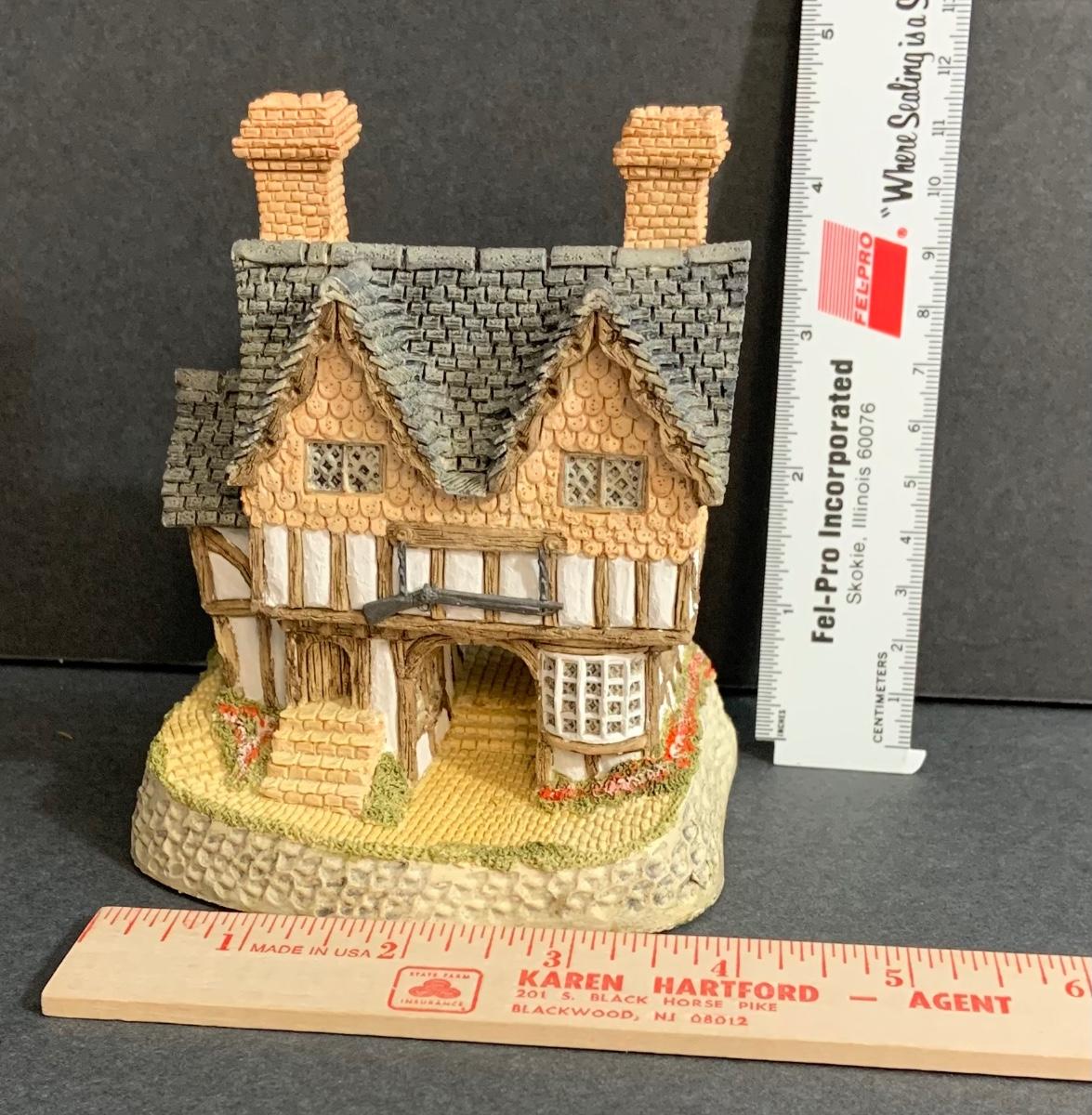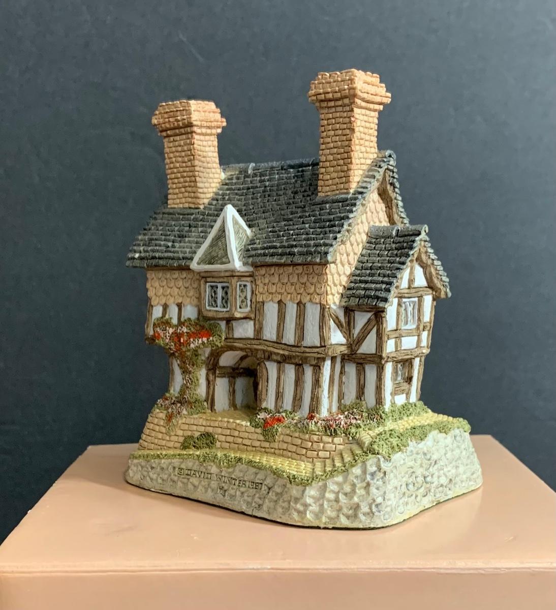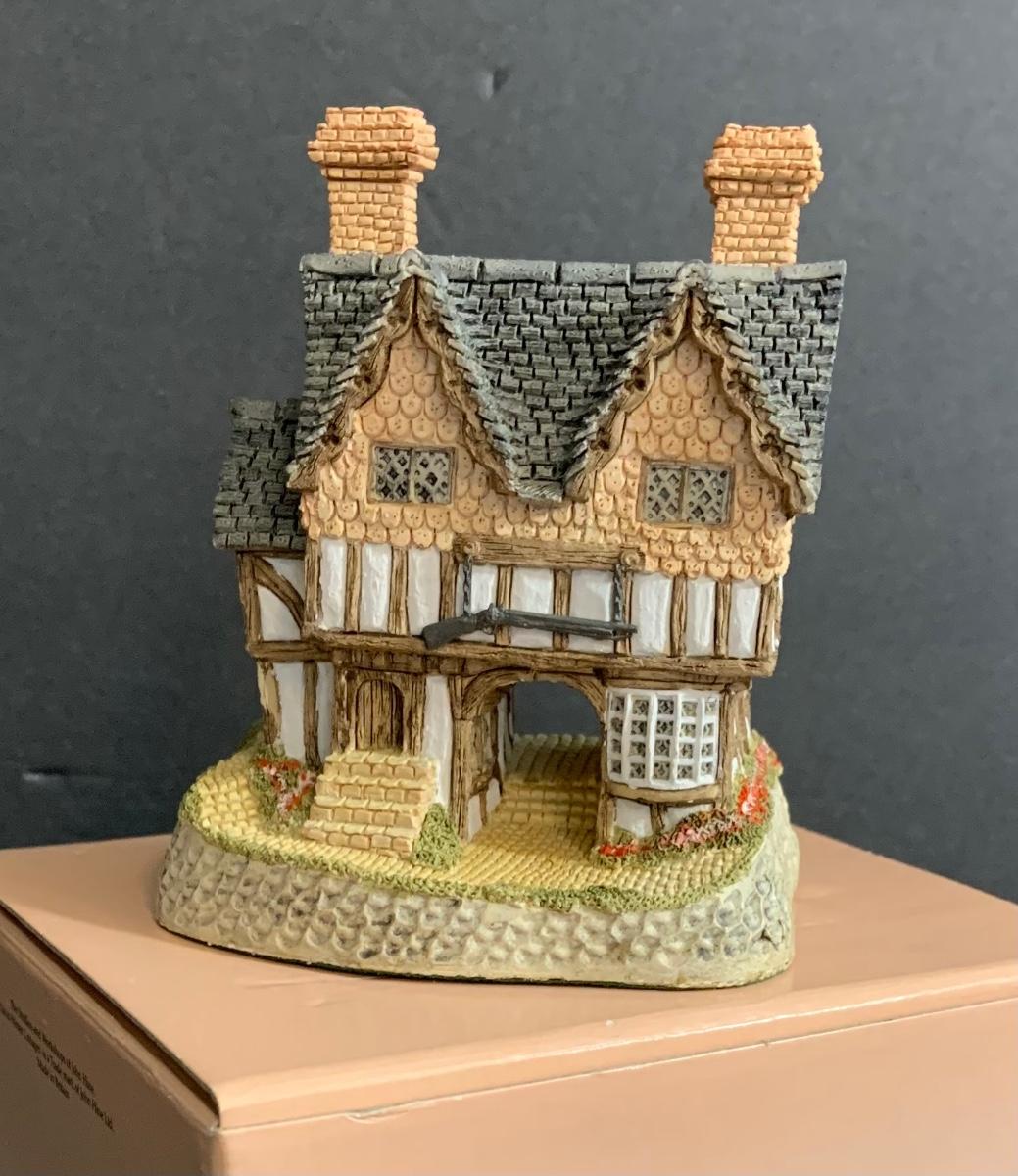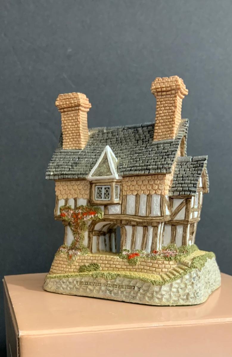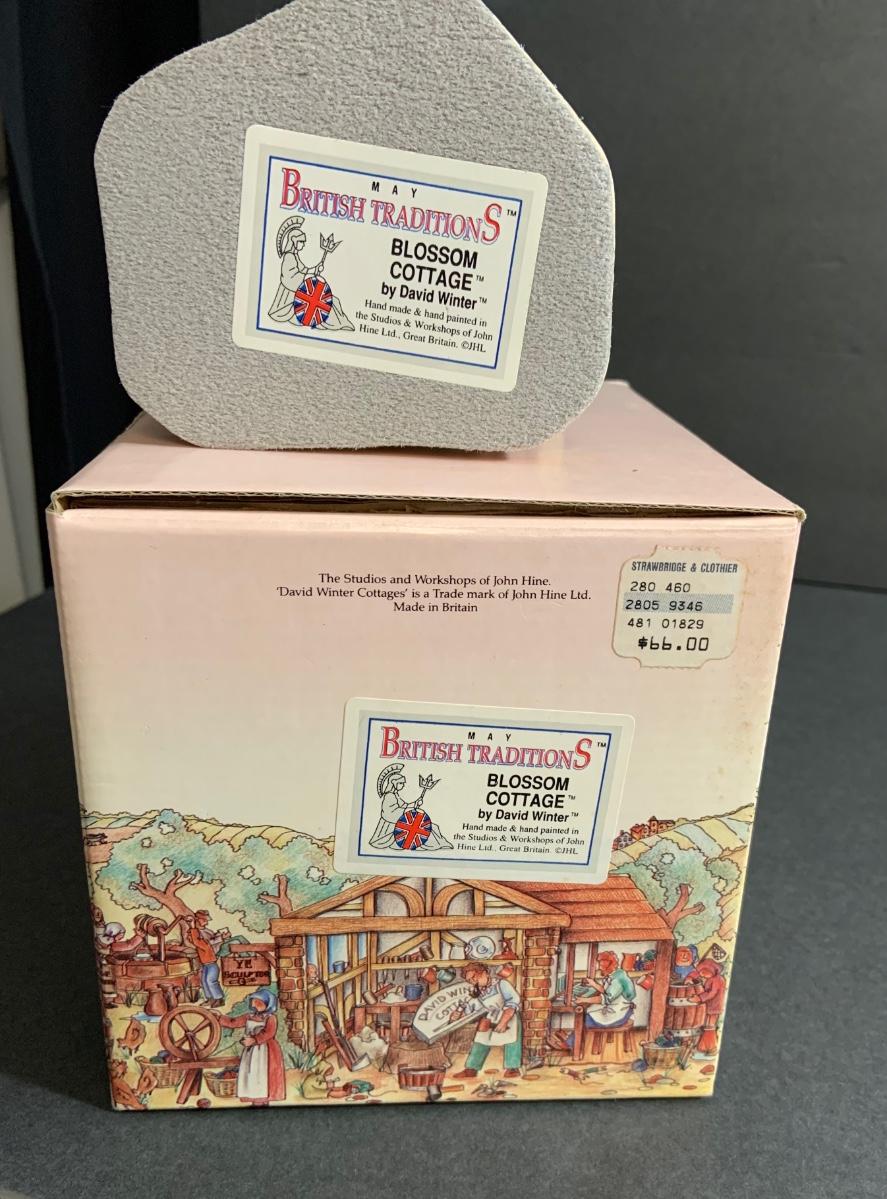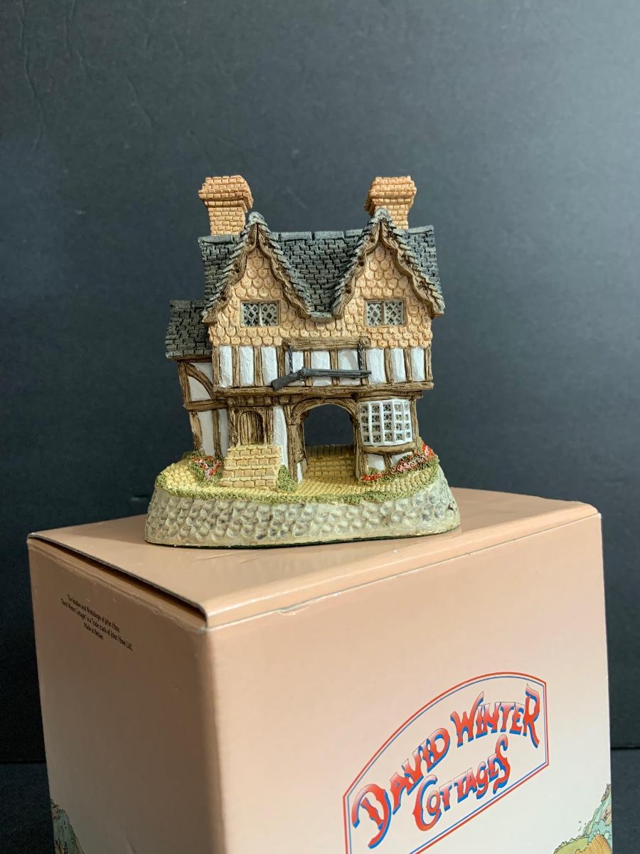 Lot :107: 3 David Winter Cottages- COLLECTORS GUILD PIECE NUMBER 4 The Pavilion, MAY BRITISH TRADITIONS Blossom Cottage & Midlands Collection Gunsmiths Cottage