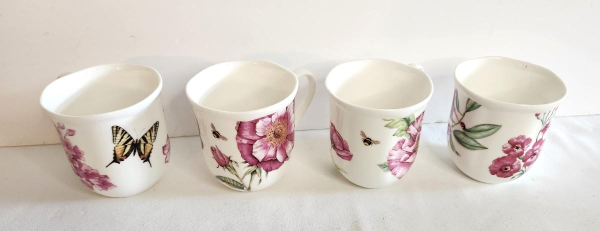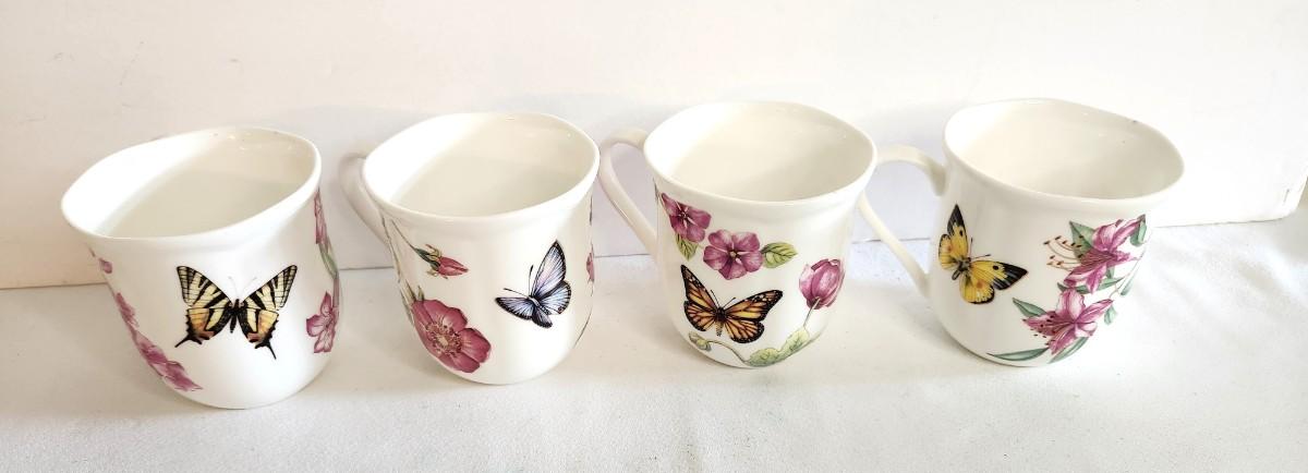 Lot of 4 Lenox Butterfly Garden Coffee Cups - all in good condition. 3.5" tall. Popular pattern.