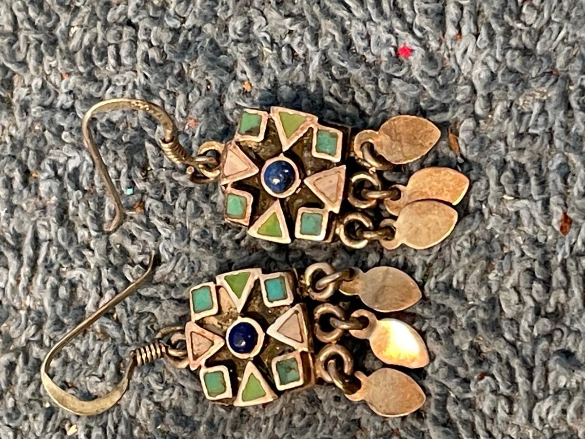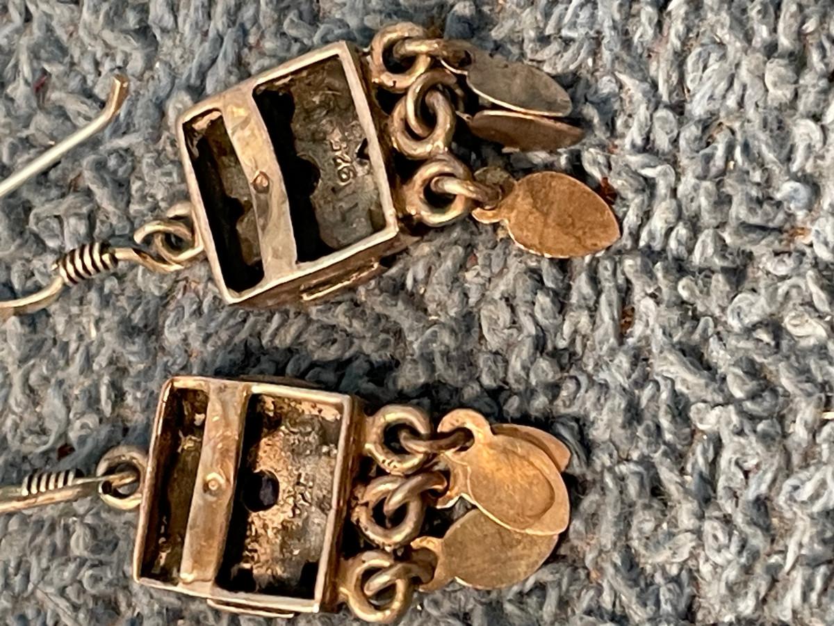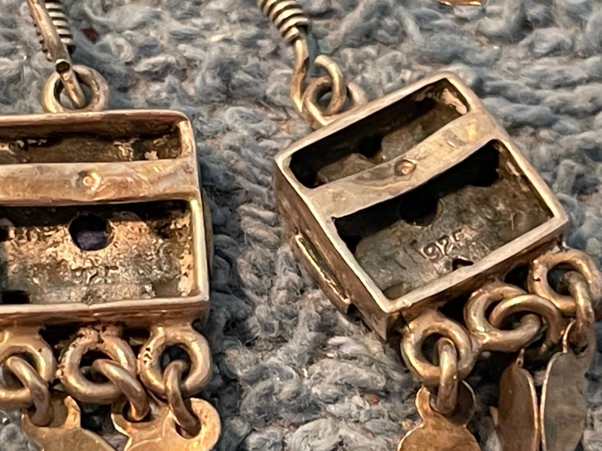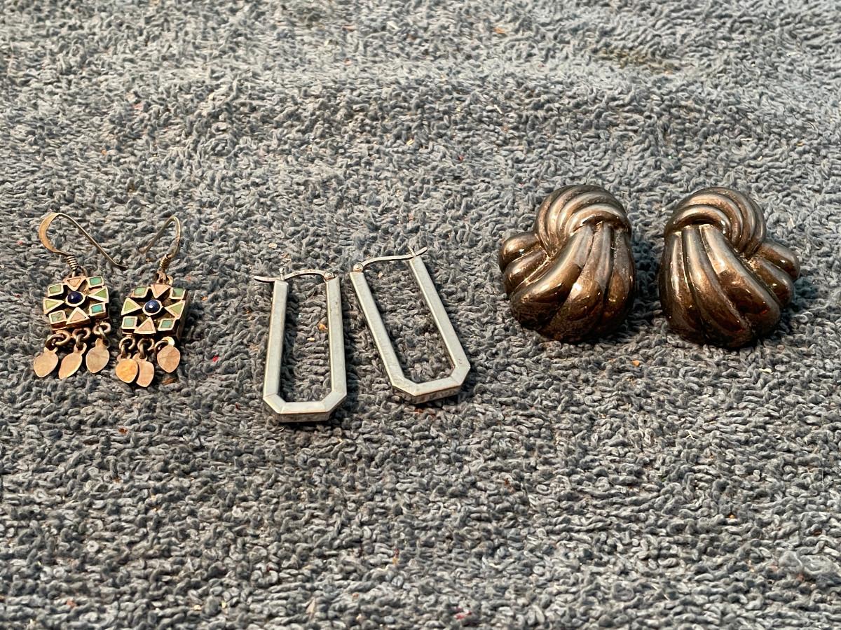 THESE ARE 3 PAIR OF LOVELY STERLING EARRINGS! ALL ARE MARKED.. SMALL DANGLE EARRINGS WITH STONES ARE 1 1/2'' TALL.. 16.58GR TW.. LIGHT WEAR..