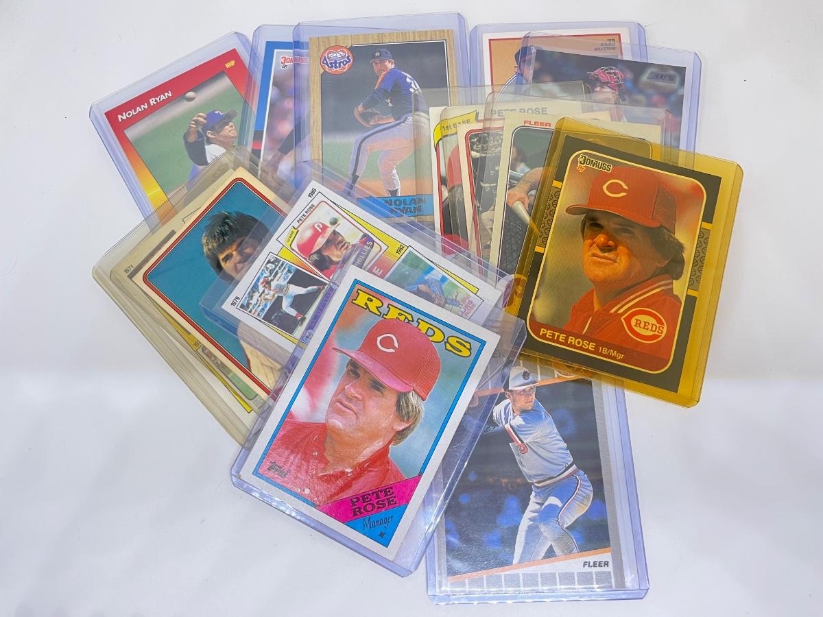 LOT 107: Mixed Lot of Baseball Cards - Pete Rose, Ripken, Nolan Ryan