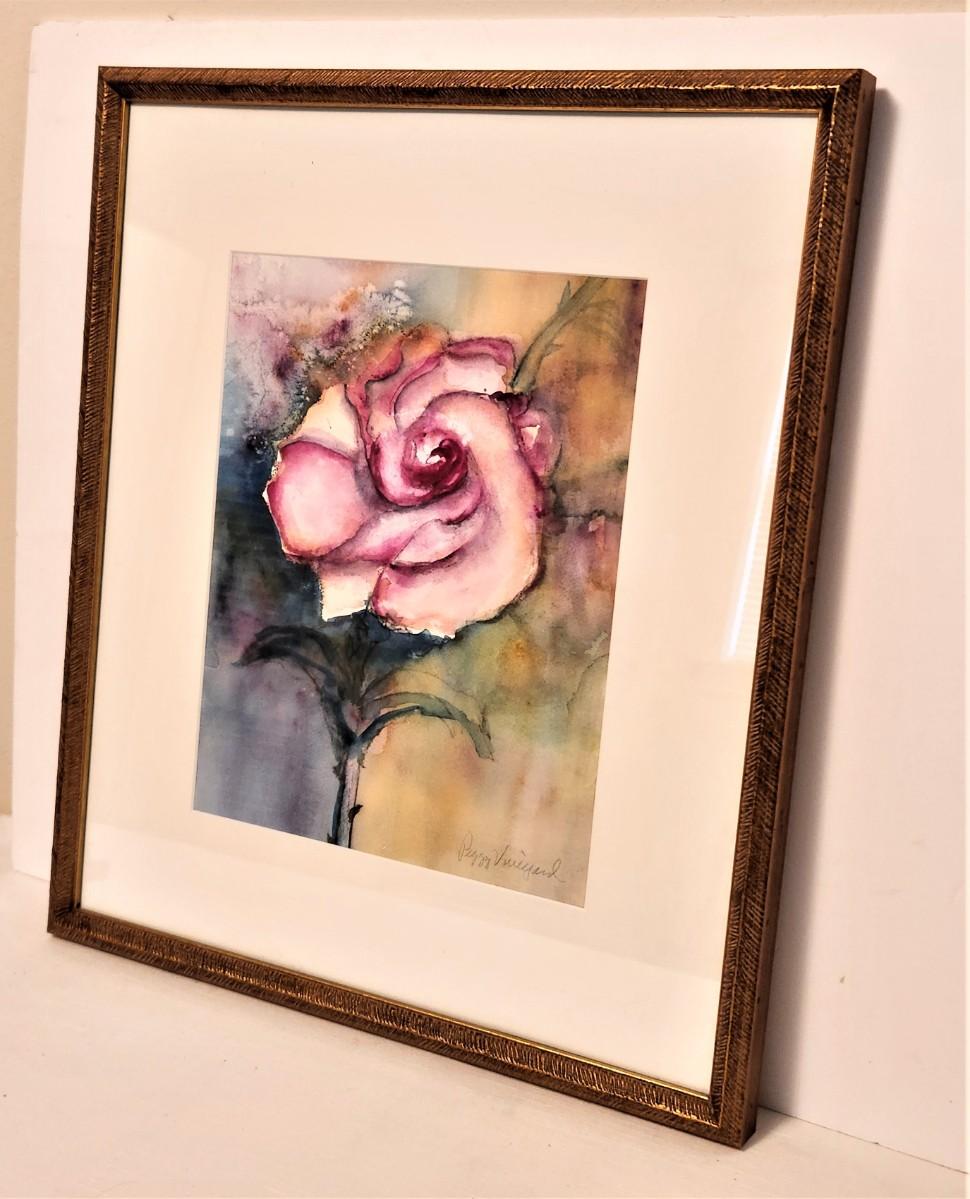 Lot #107 Original Watercolor by Listed Artist Peggy Vineyard "Single Rose"