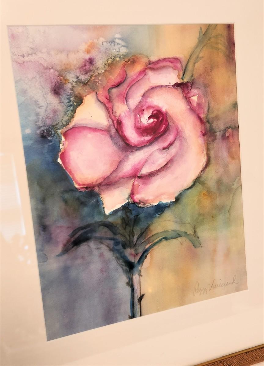 Lot #107  Original Watercolor by Listed Artist Peggy Vineyard "Single Rose"