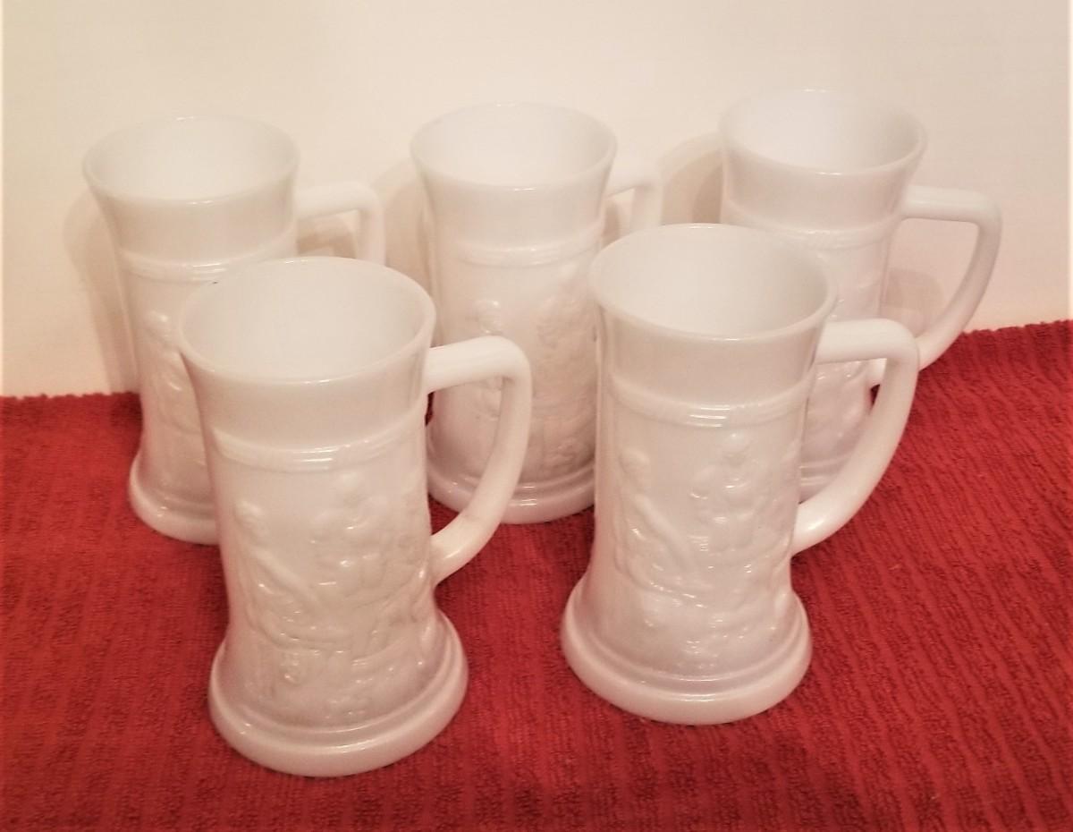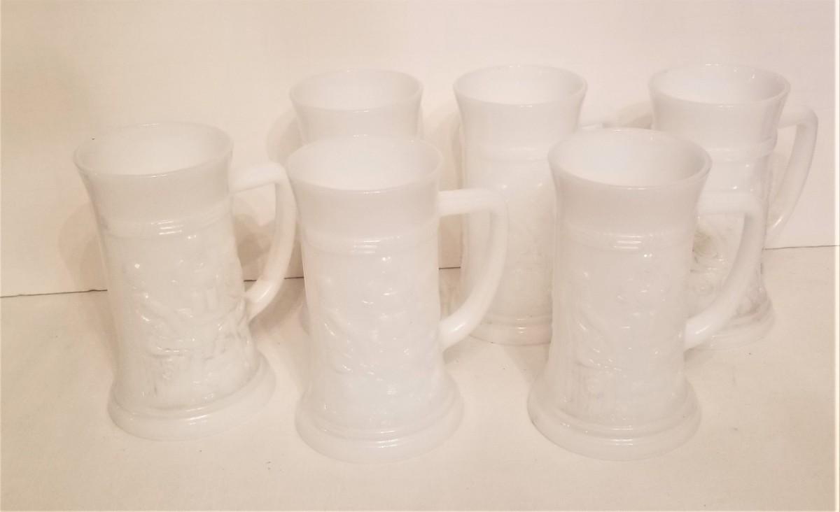 Lot #107 Set of 6 Vintage Milk Glass Tankards