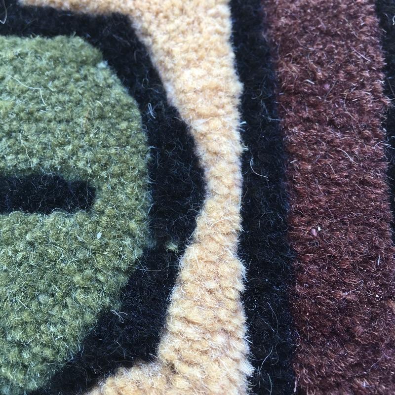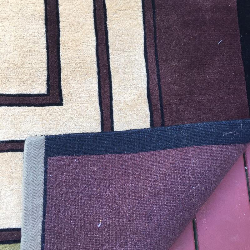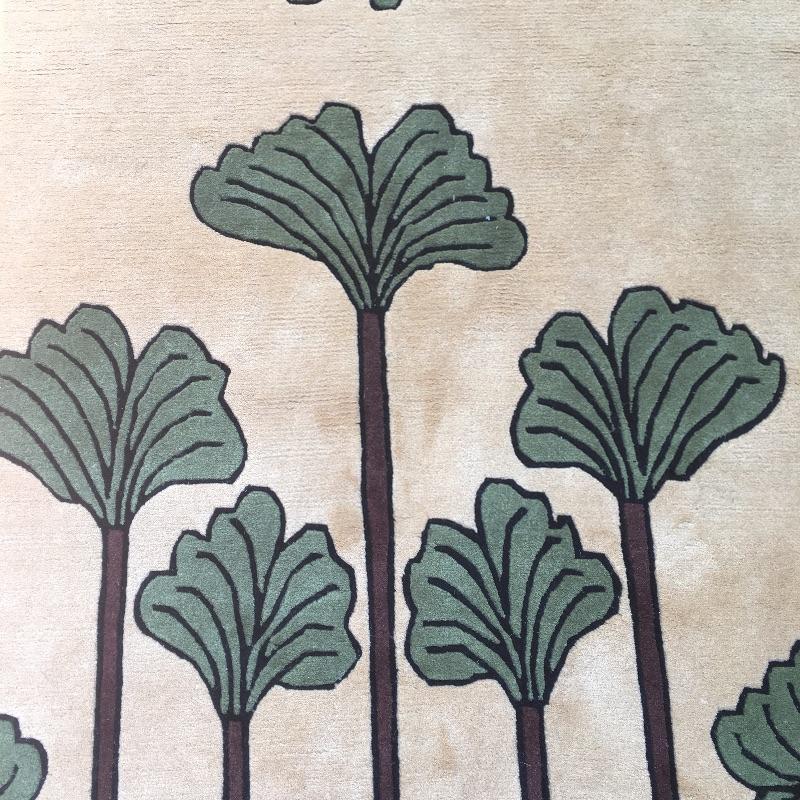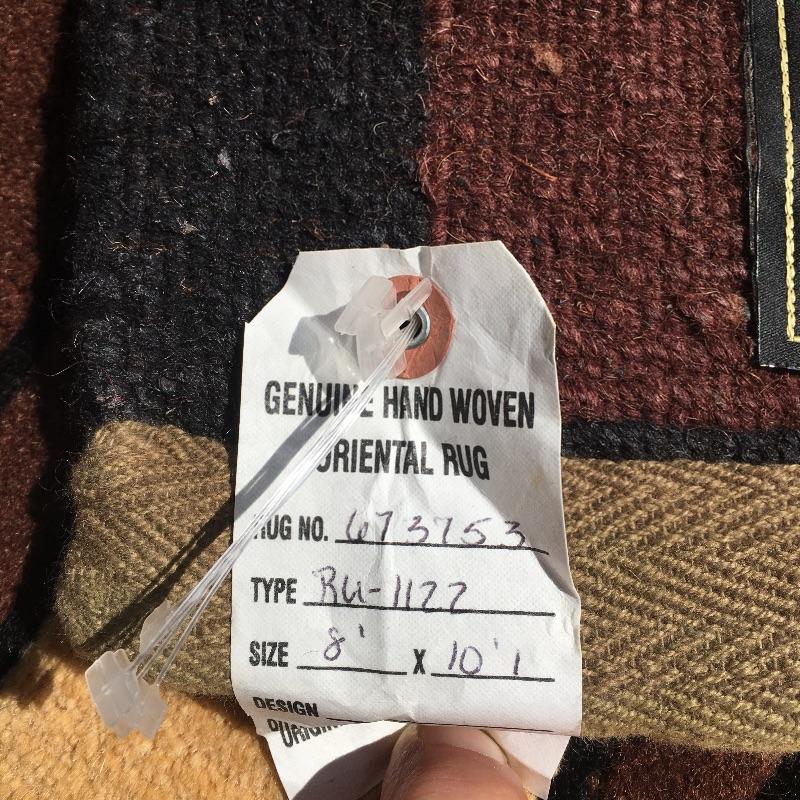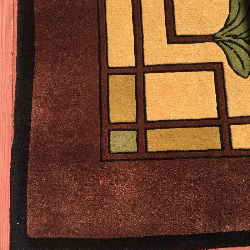 Stickley Ginko Tree rug is hand woven and in excellent condition. Pictures don’t do this rug justice as the sun shadows didn't help us. it is absolutely stunning, a work of art. You will regret it if you don’t buy this beauty. Rug measures 96” x 120”. Bring help item is substantial. Rug is in great shape with no stains or smells, but pictures are half in shade.