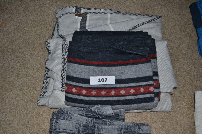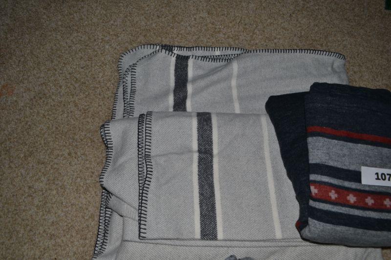LOT 107. TWO PENDLETON THROW BLANKETS AND ONE PORTUGAL MADE BLANKET