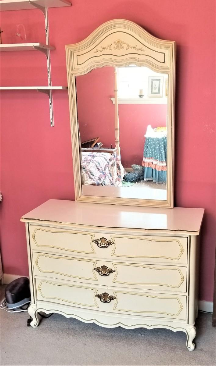 Lot #107  Vintage French Provincial Style Dresser with Mirror
