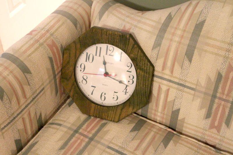 Lot 107: Vintage Humpback Loveseat and Wall Clock
