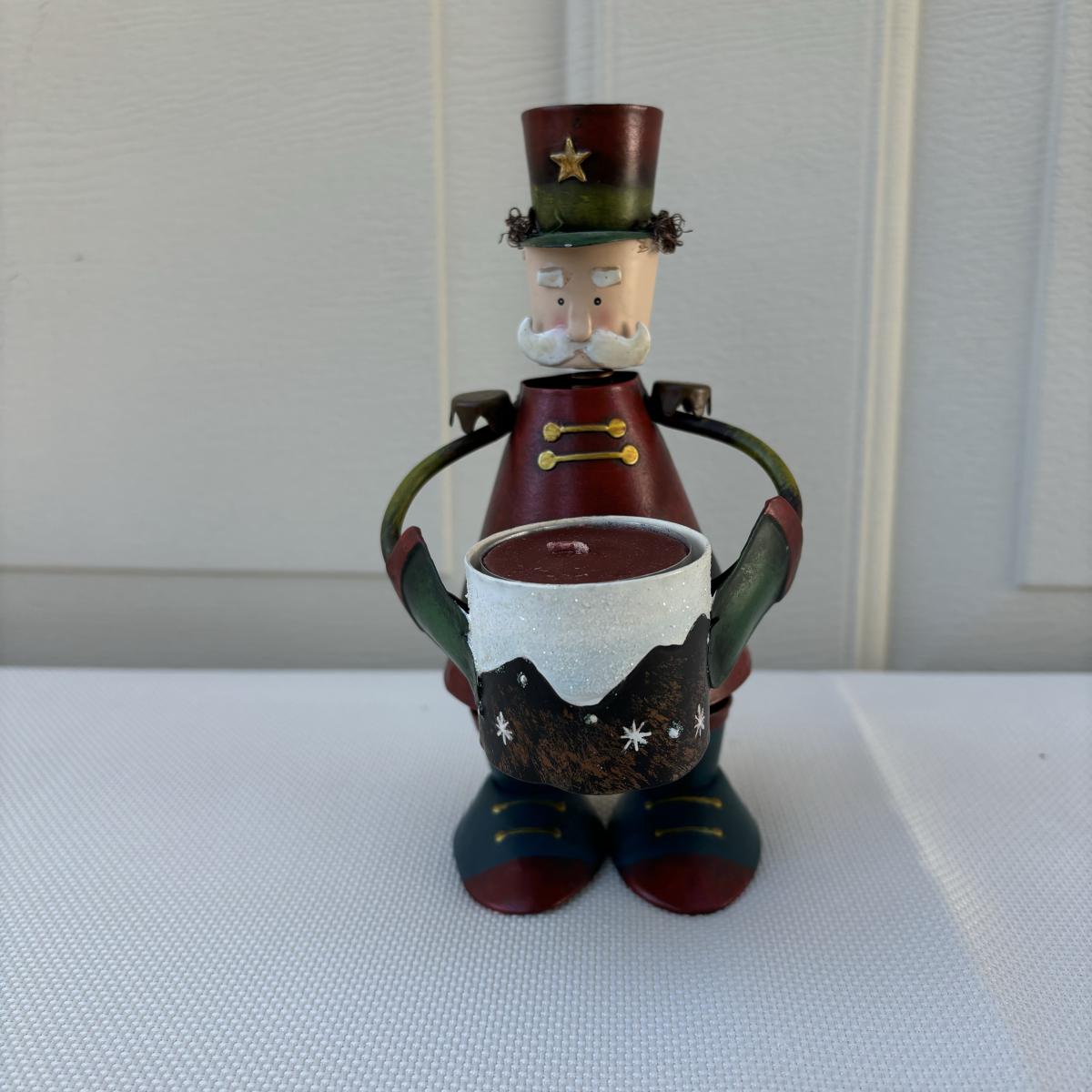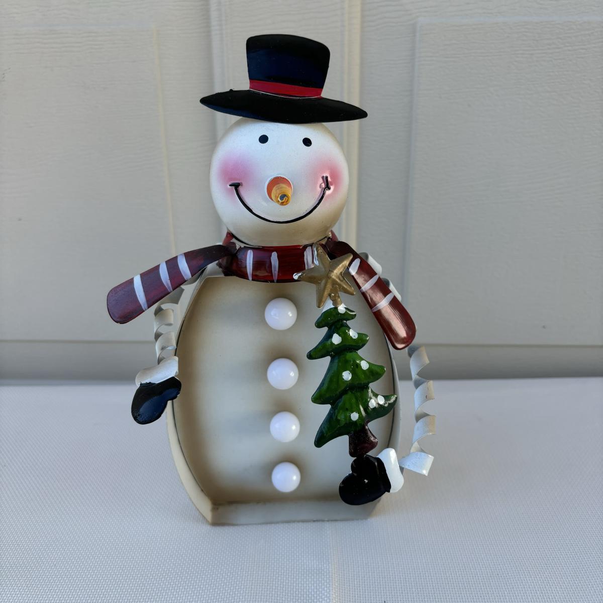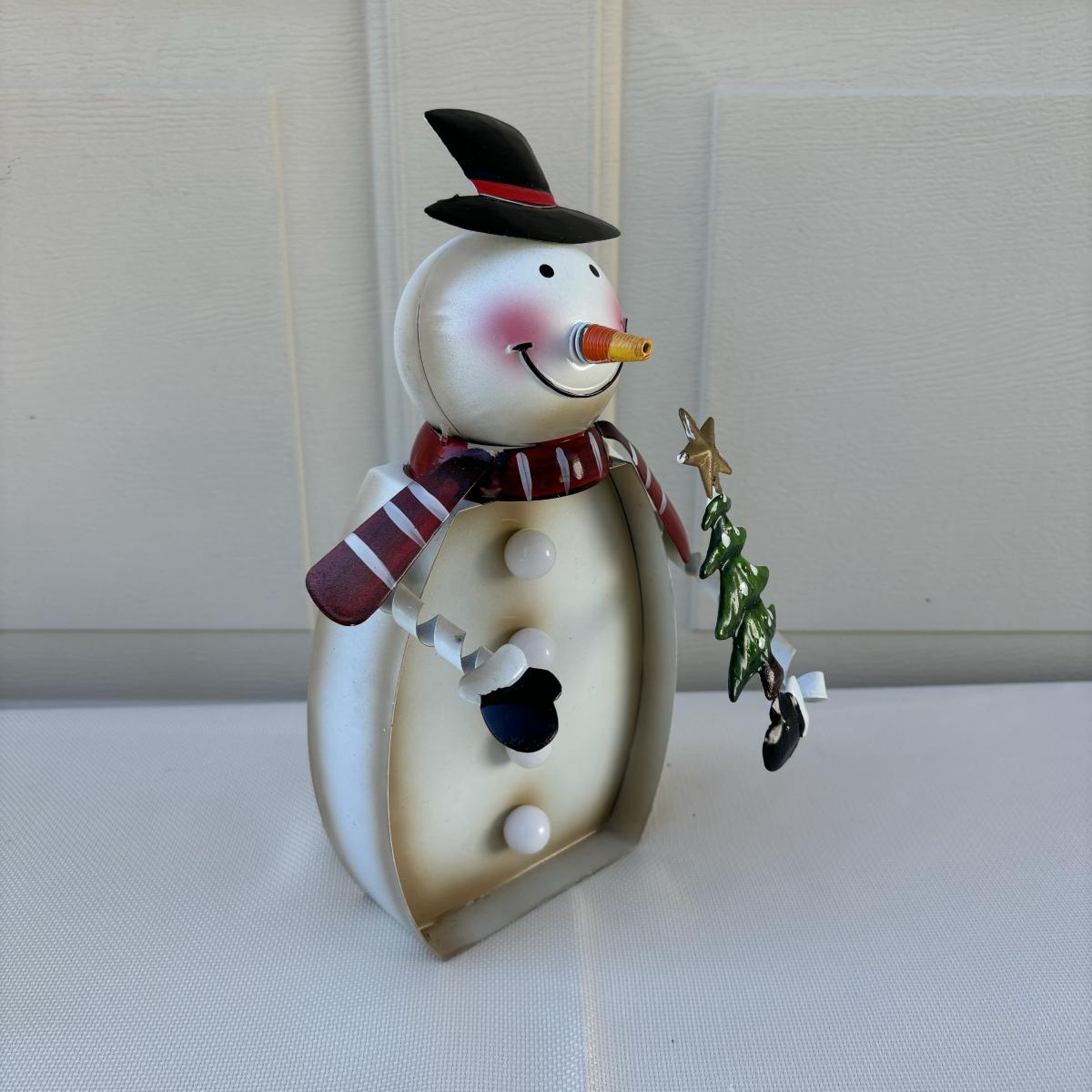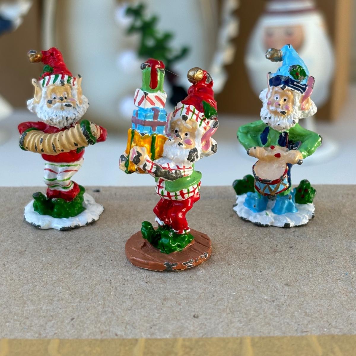 LOT 2: Holiday Decor: Russ Votive Candle Metal Candle Holders, Bobbly Santa & Elf, Light Up Metal Snowman along with 3 Vintage Enesco North Pole Village Pewter Christmas Figurines -1989 Zimnicki
