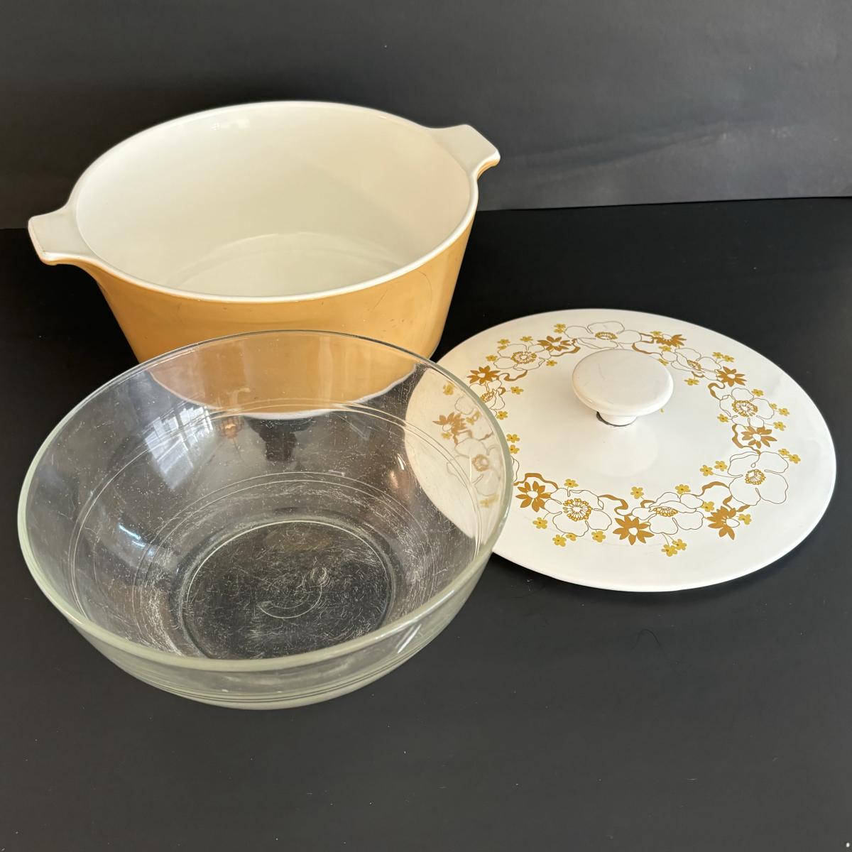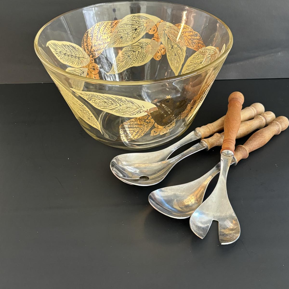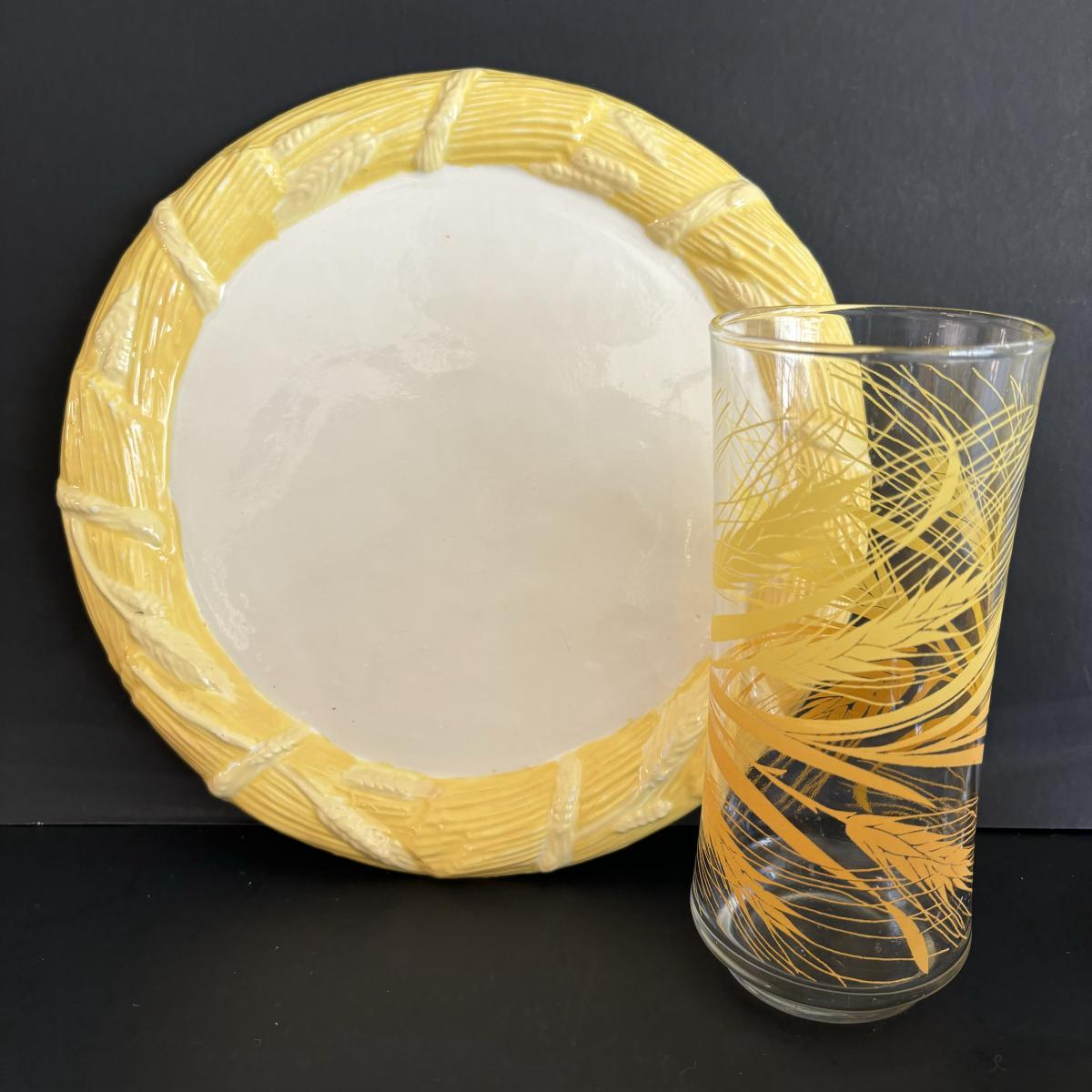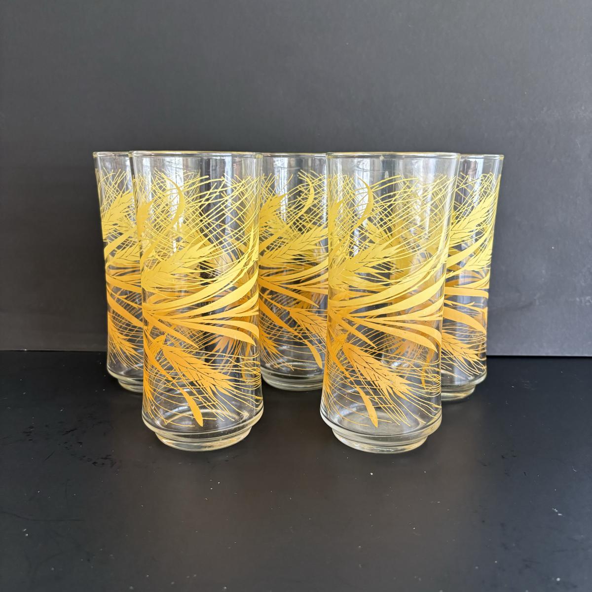 LOT 22: Vintage Libbey Wheat Glasses, MCM Hand painted Lacquer Ware Tray, Centura by Corning Covered Bowl & More