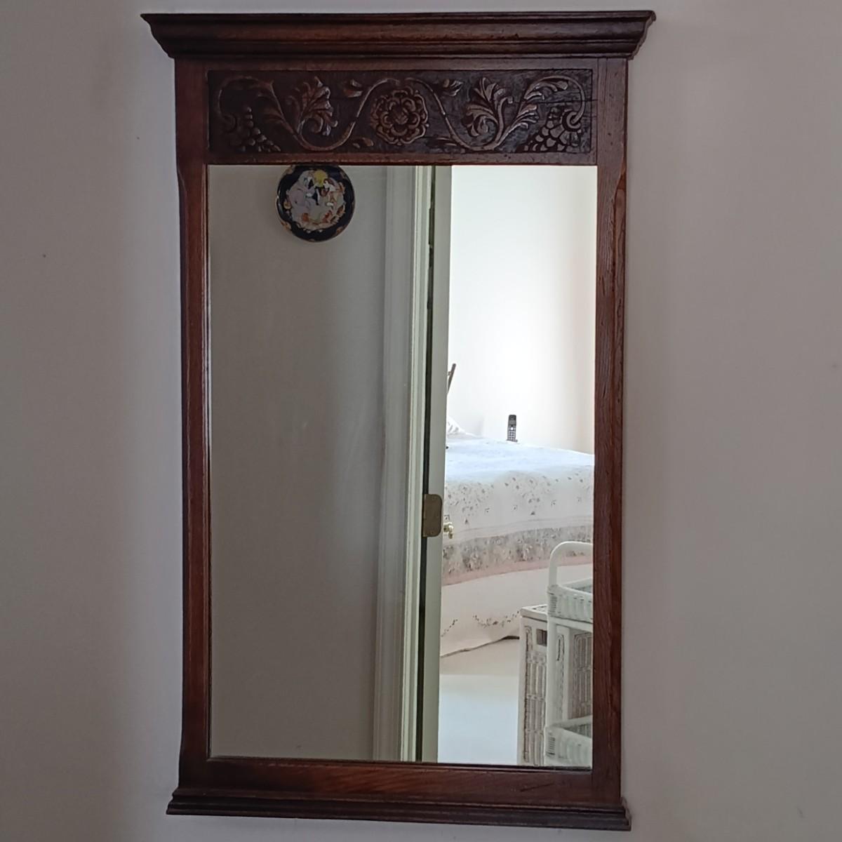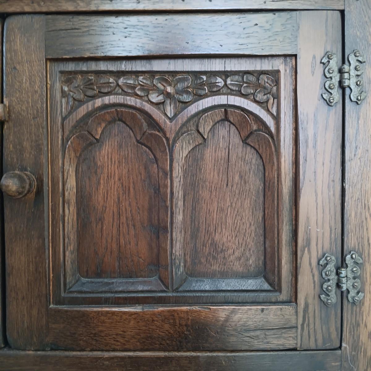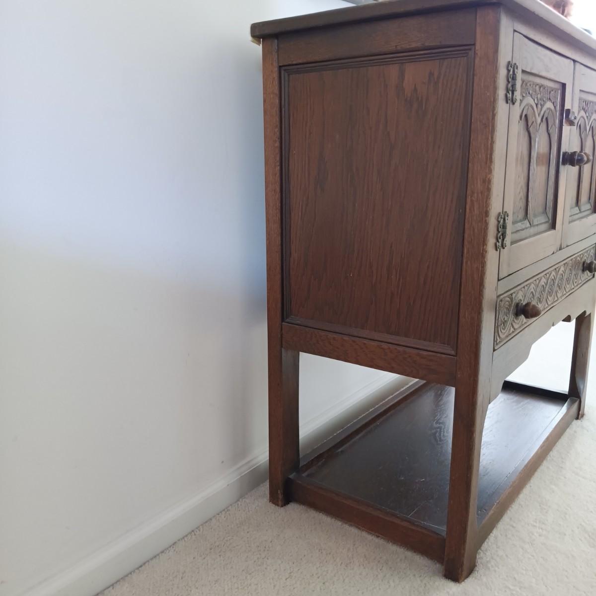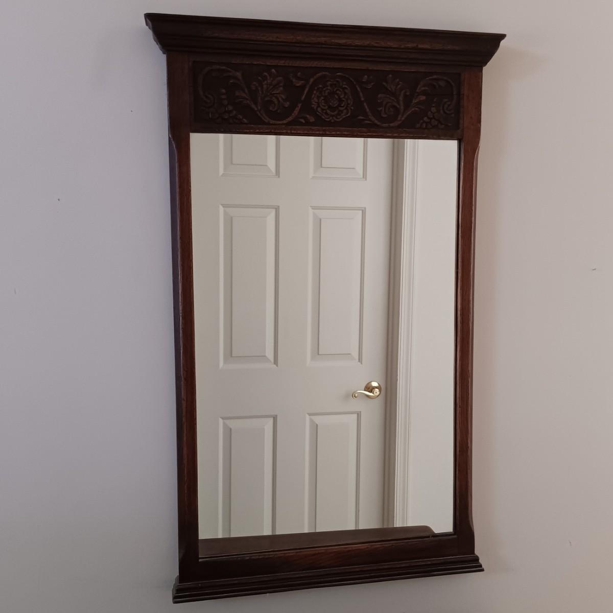LOT 30: ETHAN ALLEN Royal Charter Oak Jacobean Style Console Cabinet & Ethan Allen Mirror
