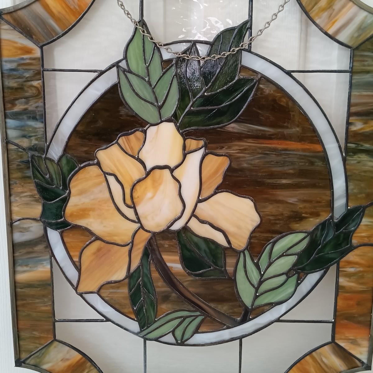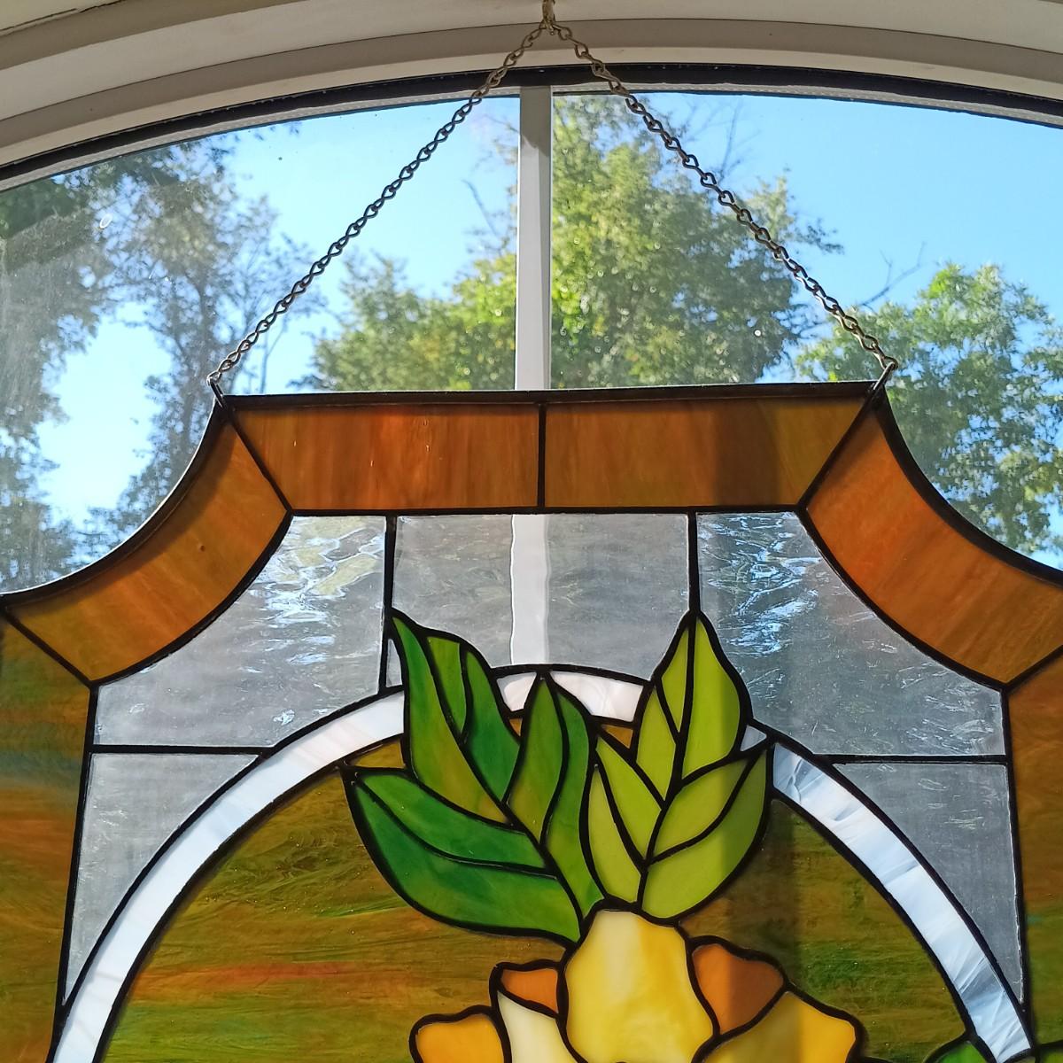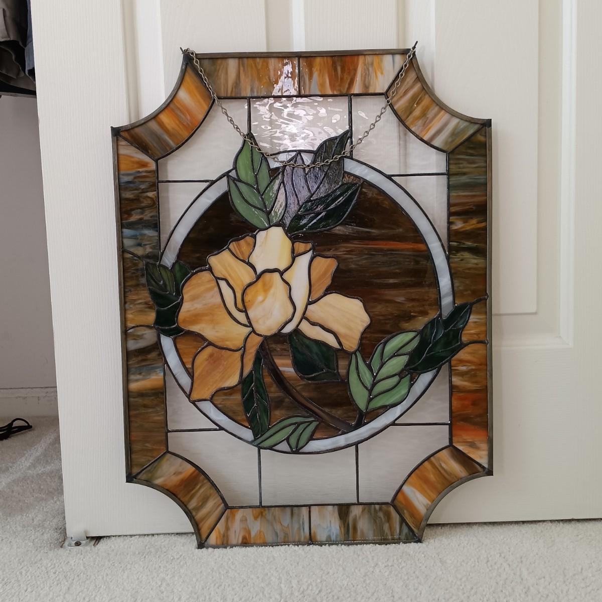 LOT 31: Floral Stained Glass Window Art 18" x 24"