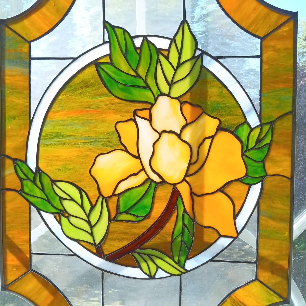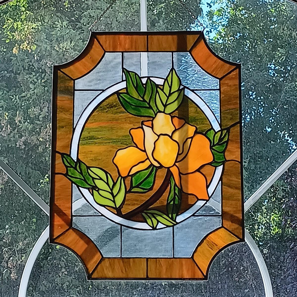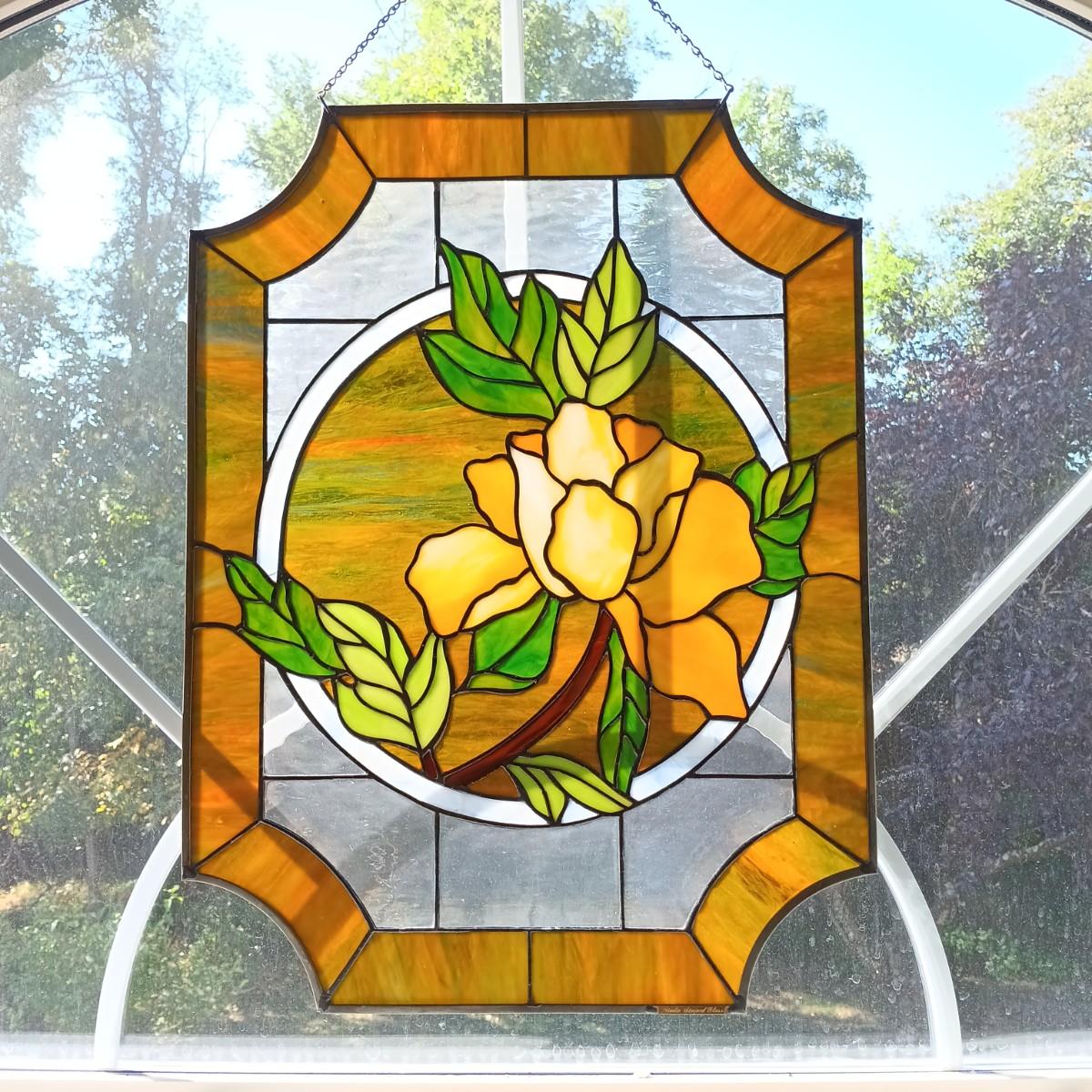LOT 31: Floral Stained Glass Window Art 18" x 24"