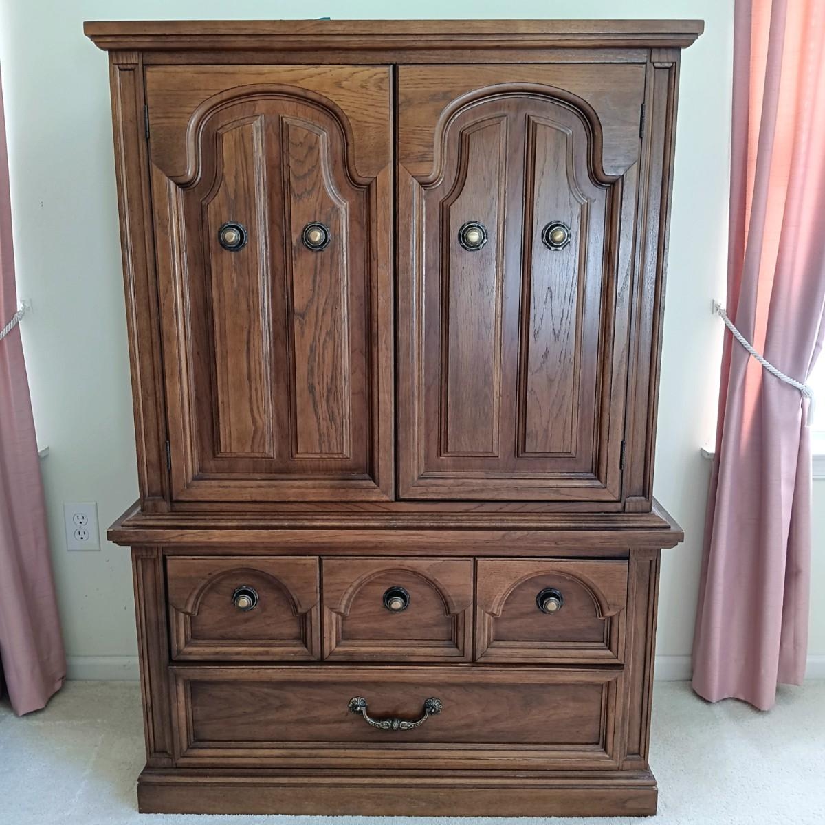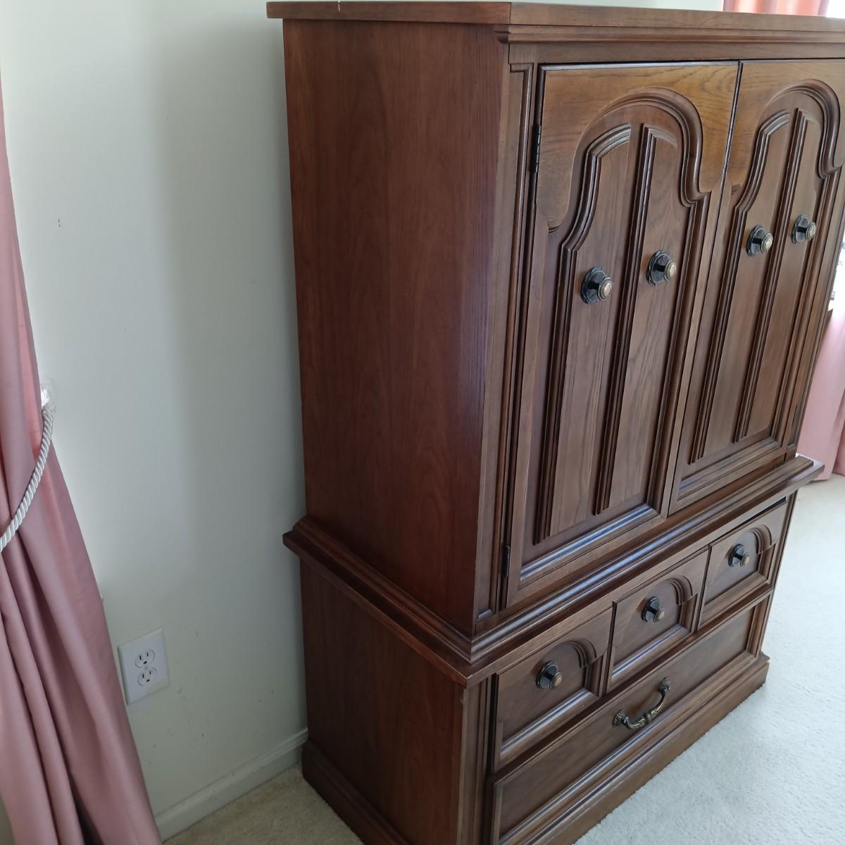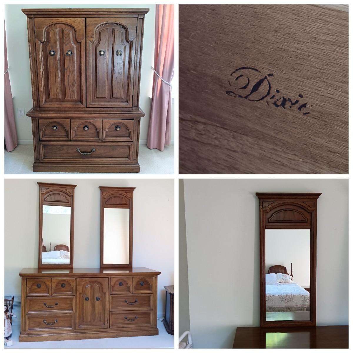 LOT 33: Dixie Oak Armoire and Dresser w/ Attached Mirrors
