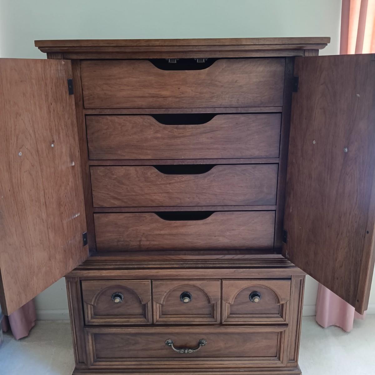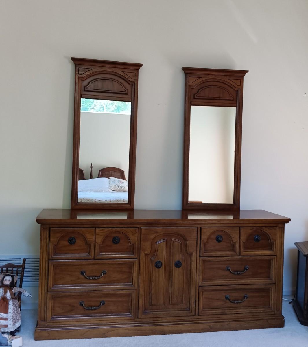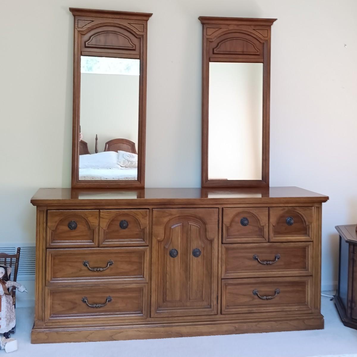 LOT 33: Dixie Oak Armoire and Dresser w/ Attached Mirrors