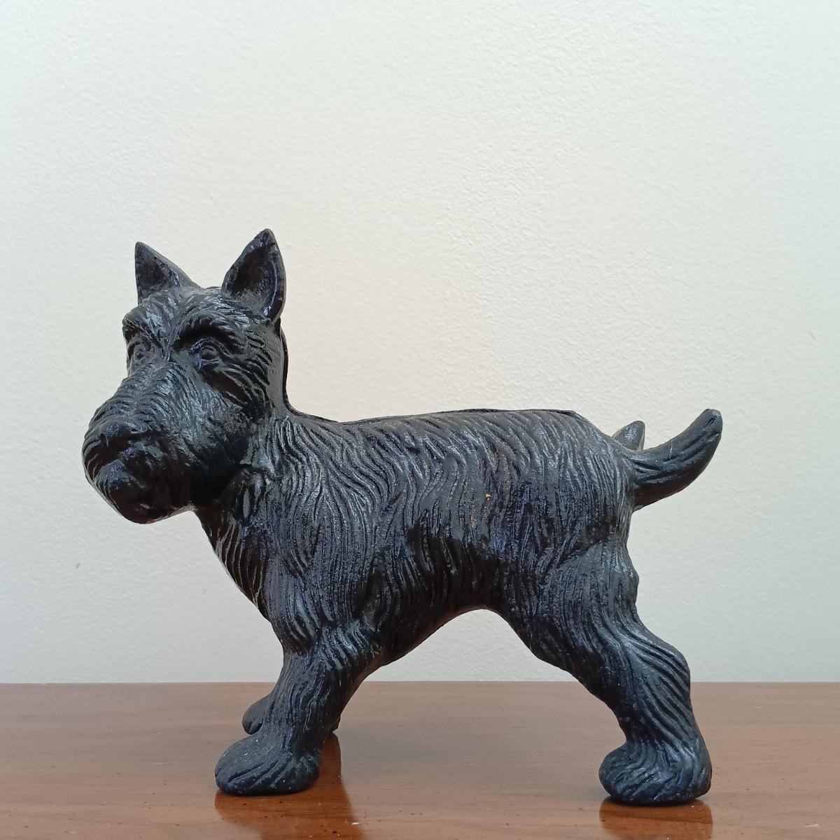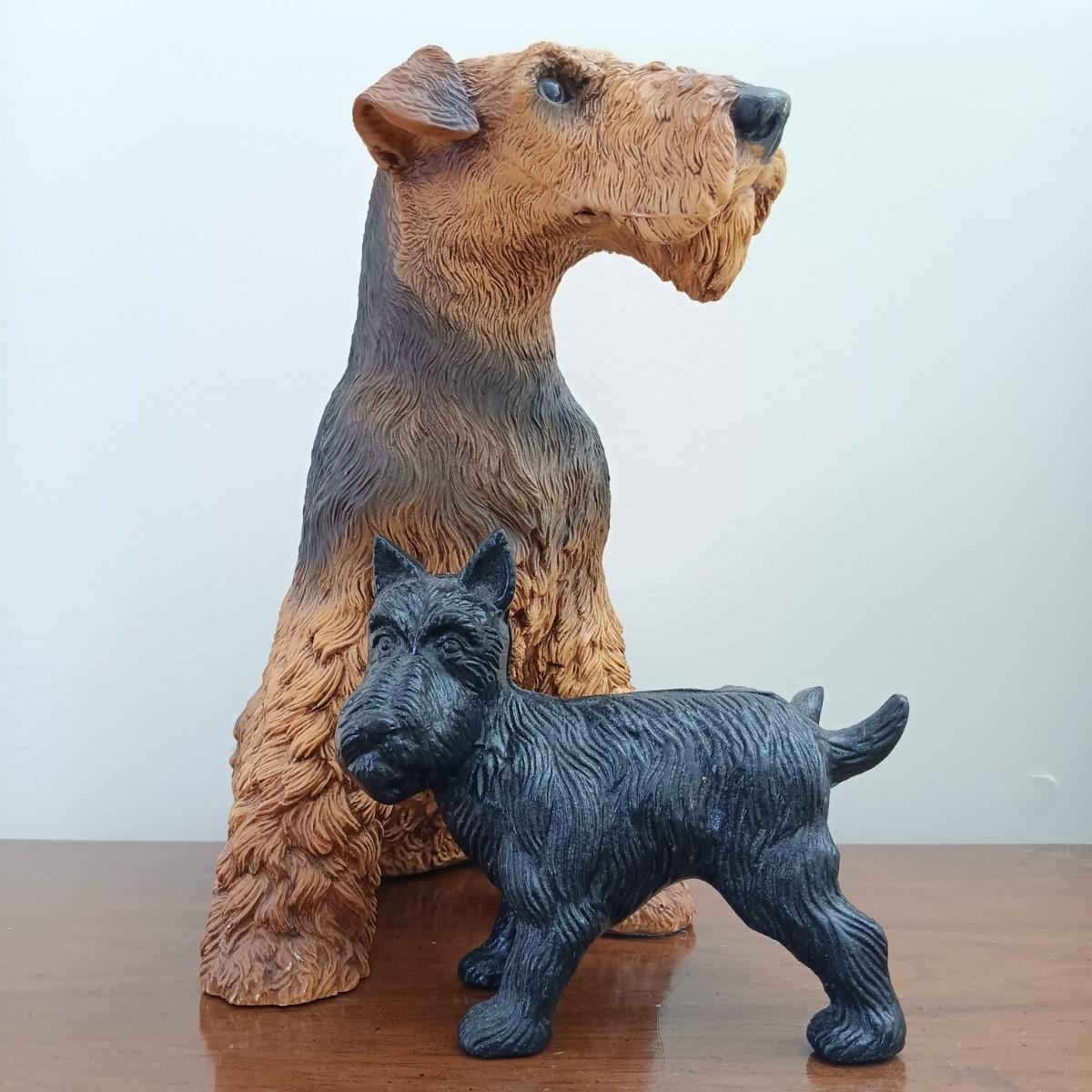LOT 37: Universal Statuary Corp. Terrier Statue with Cast Iron Terrier Lifting Leg