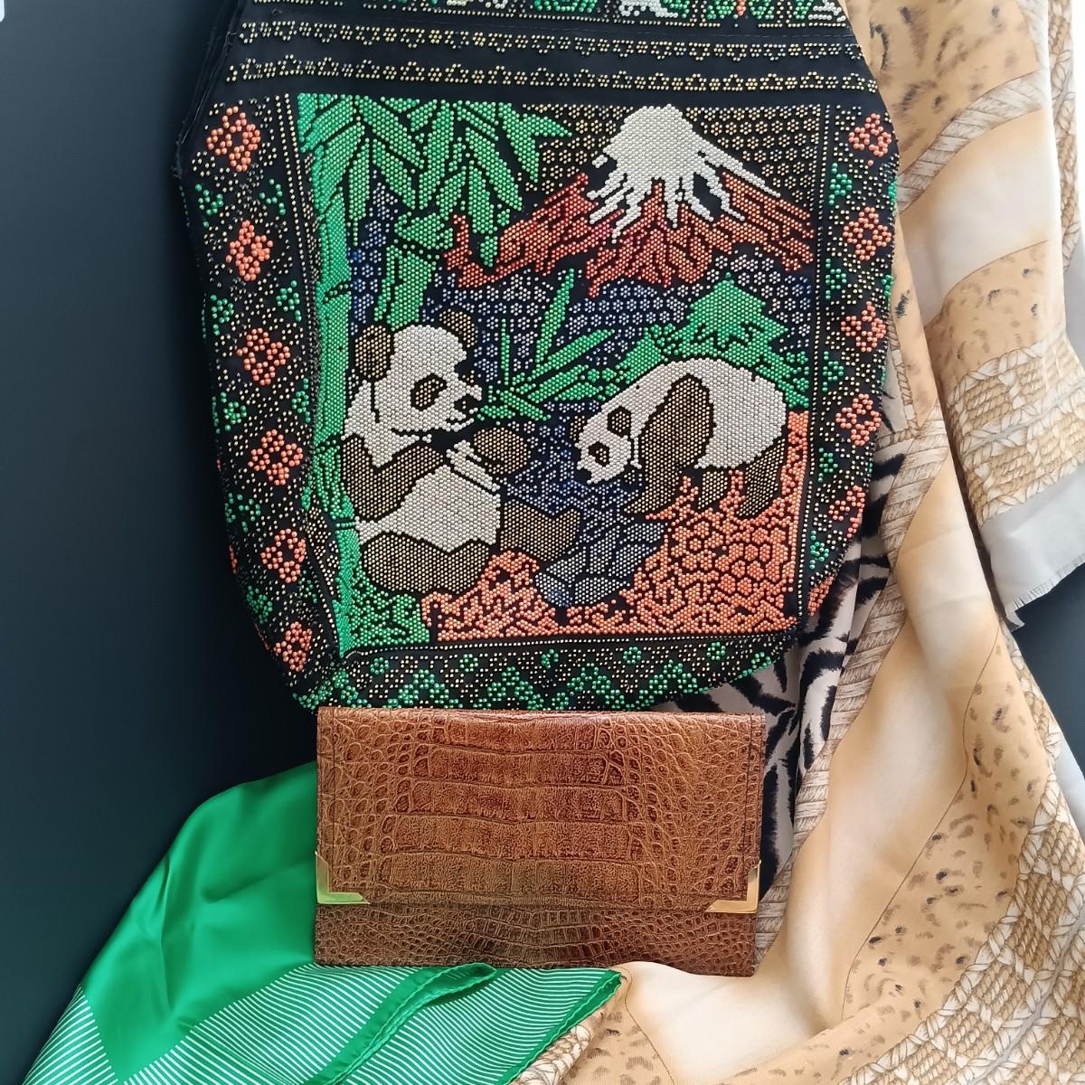 LOT: Vintage Beaded Panda Bag w/ Clutch and Scarves