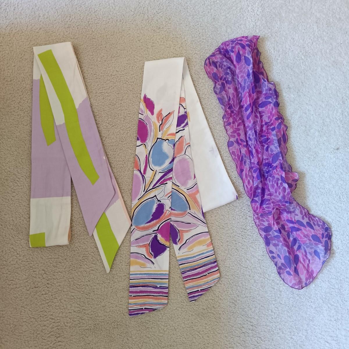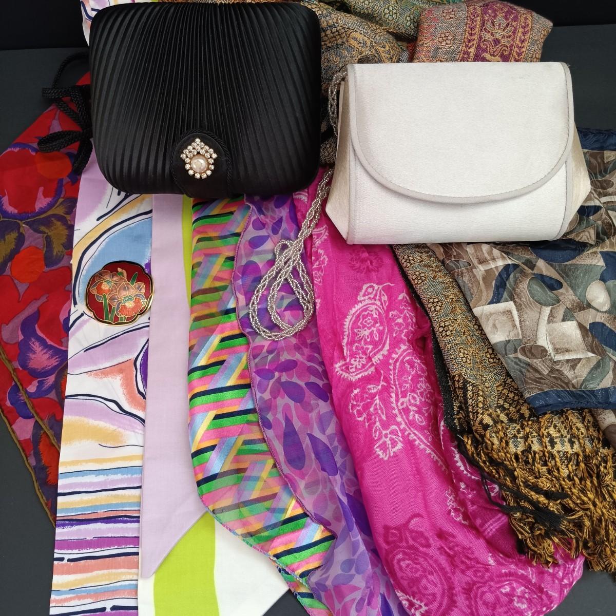LOT 43: Vintage Clamshell Purses with Scarves and Pin