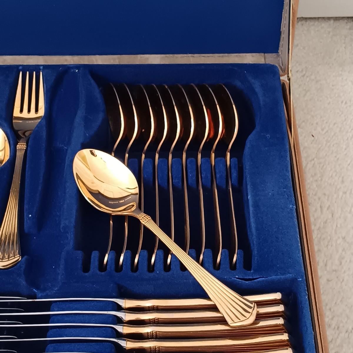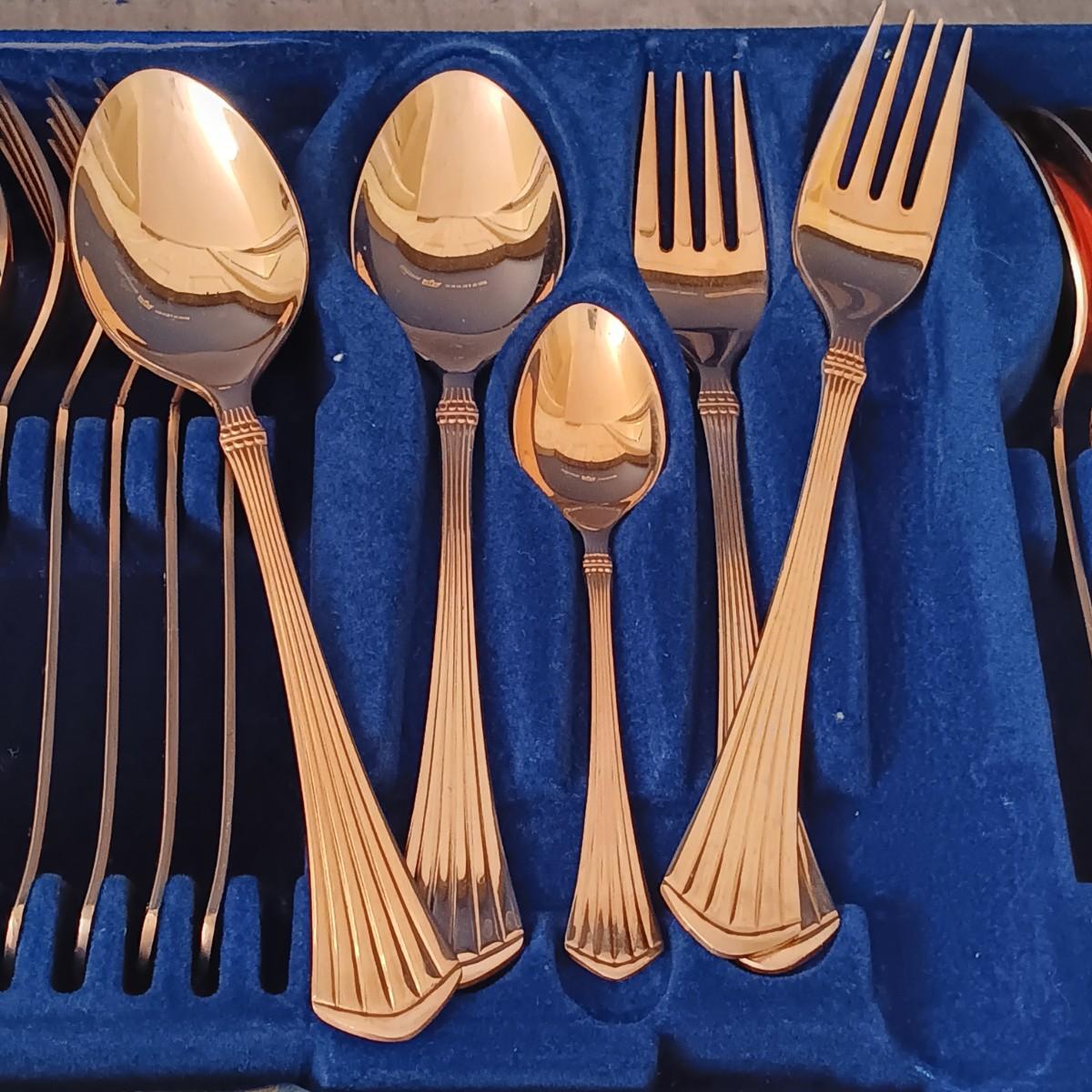 LOT 45: Solingen Germany 23/24K Gold Plated. Harivergoldet 18/10 Silverware Set