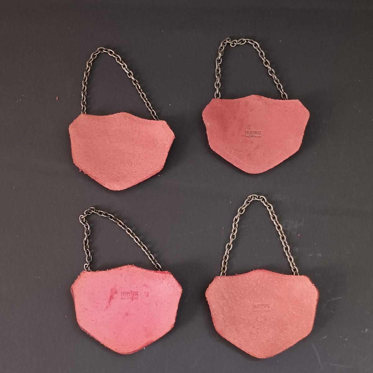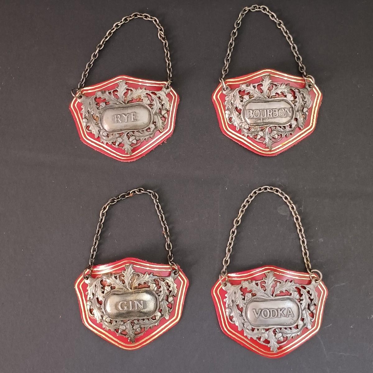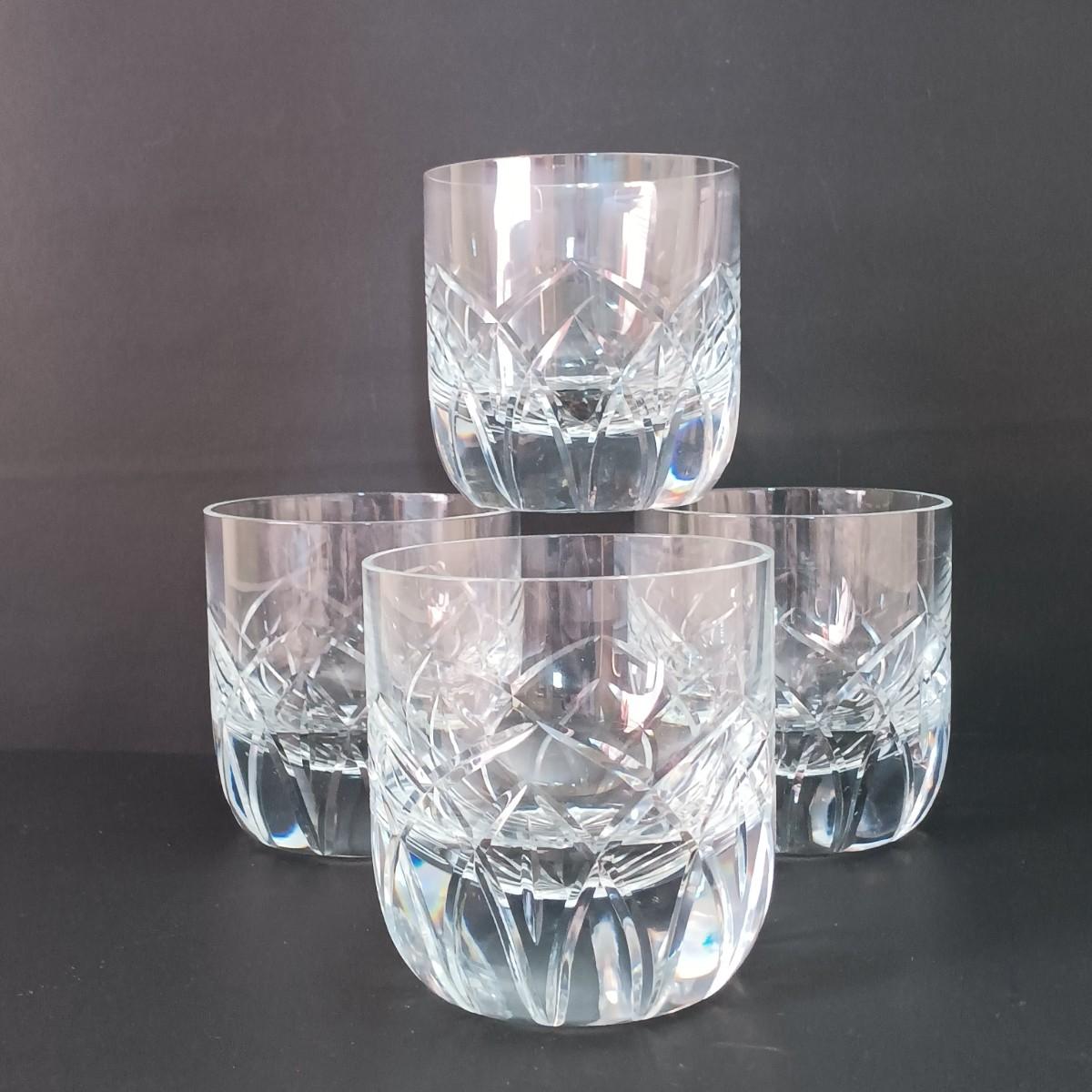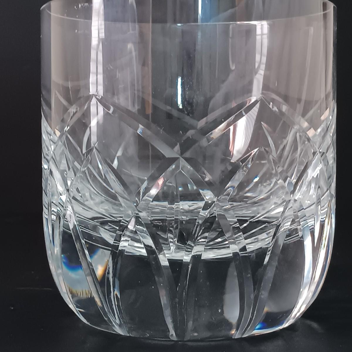 LOT 48: Hoffritz Decanter Tags Set of 4, Polkadot Champagne Flutes and Block Crystal Glasses