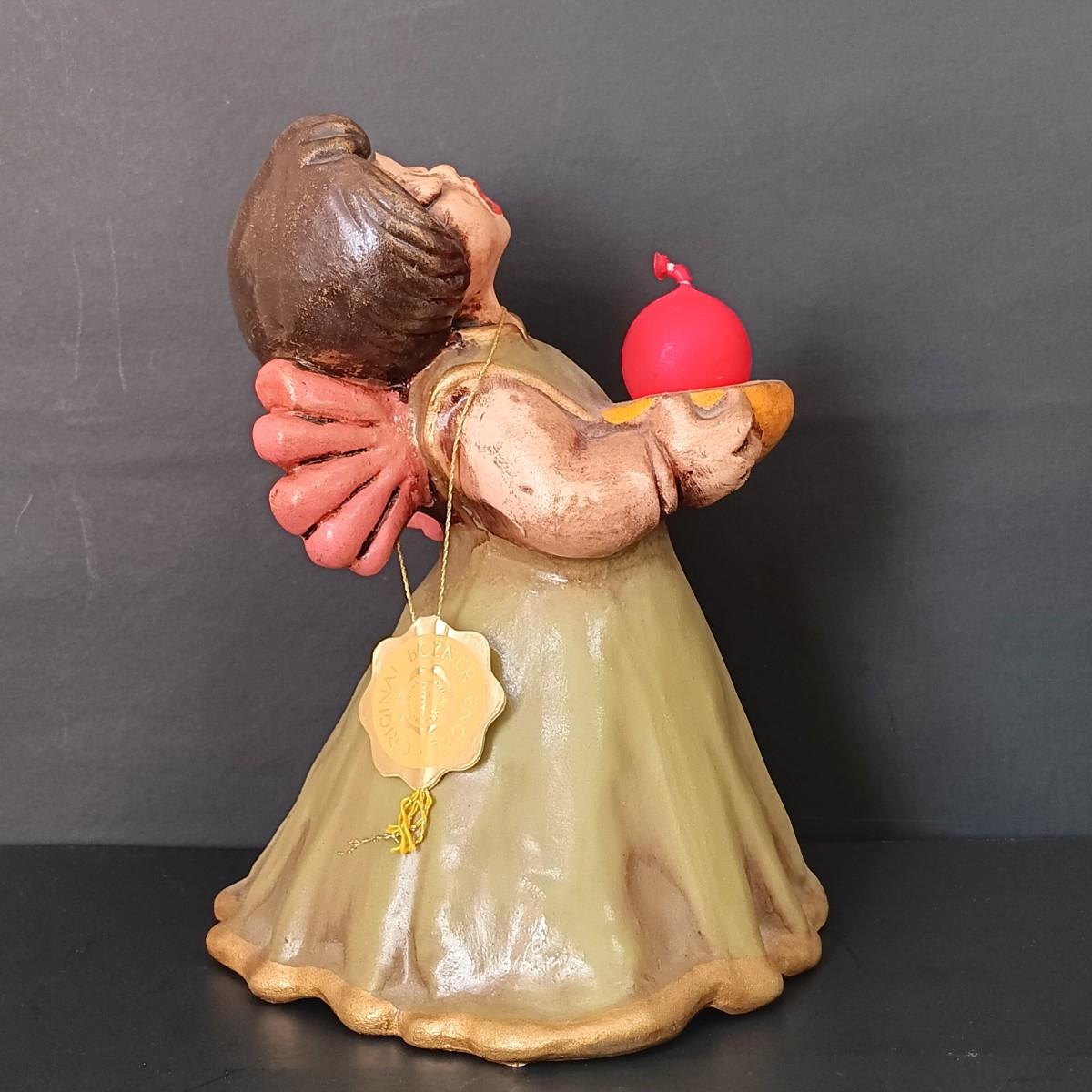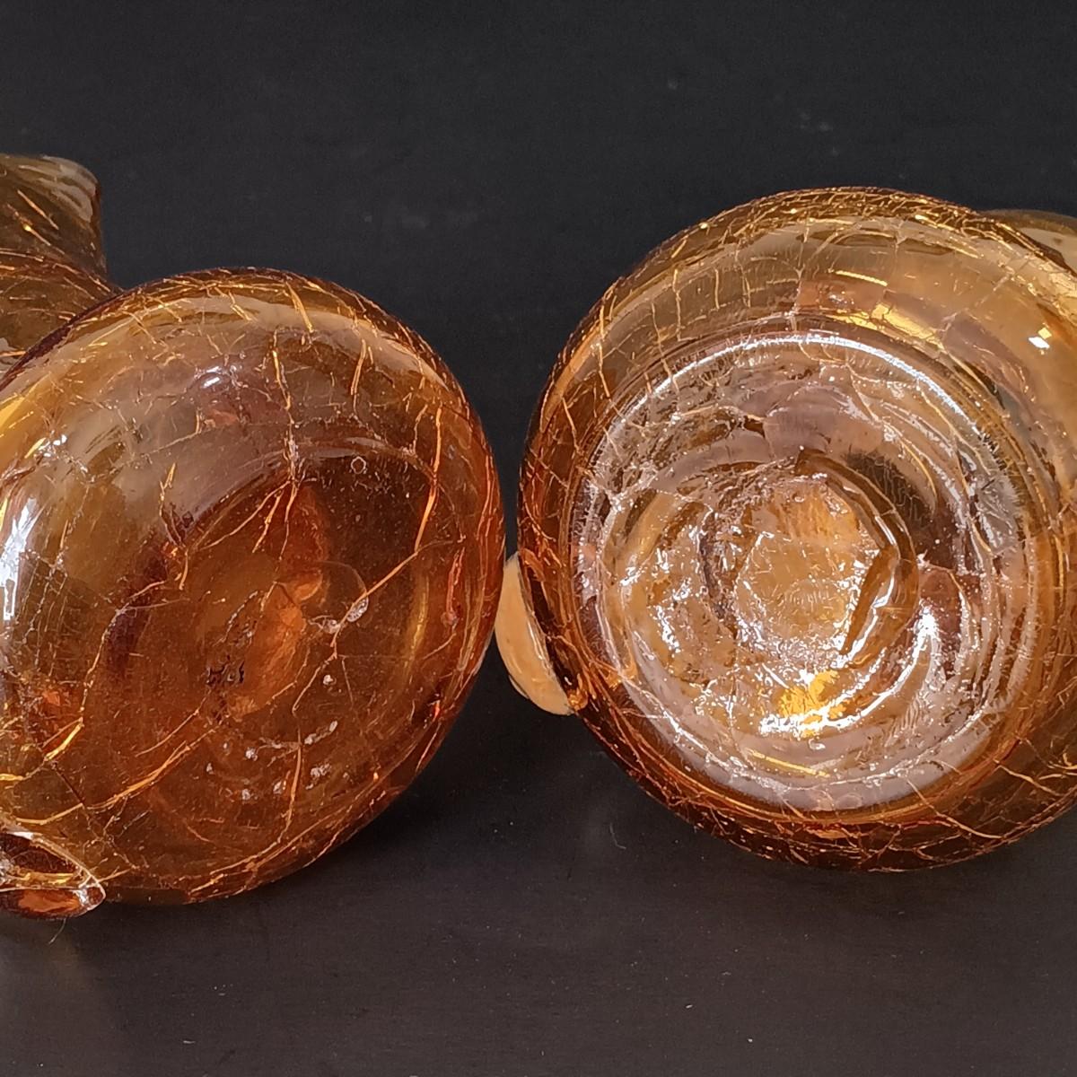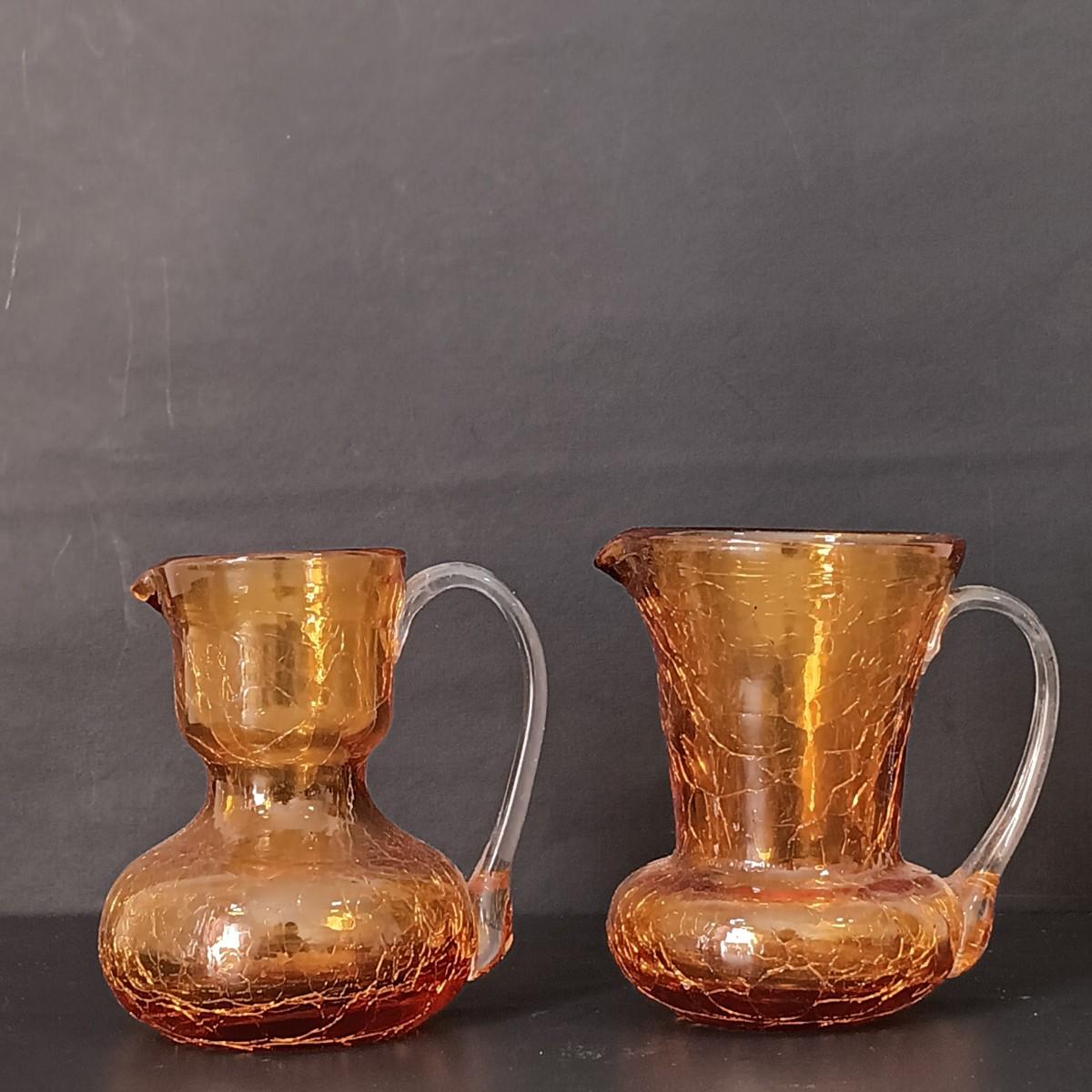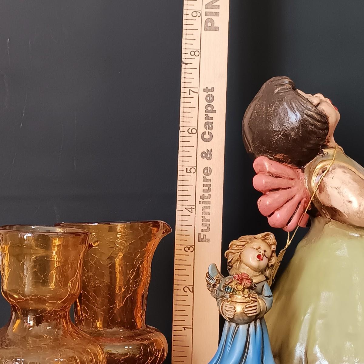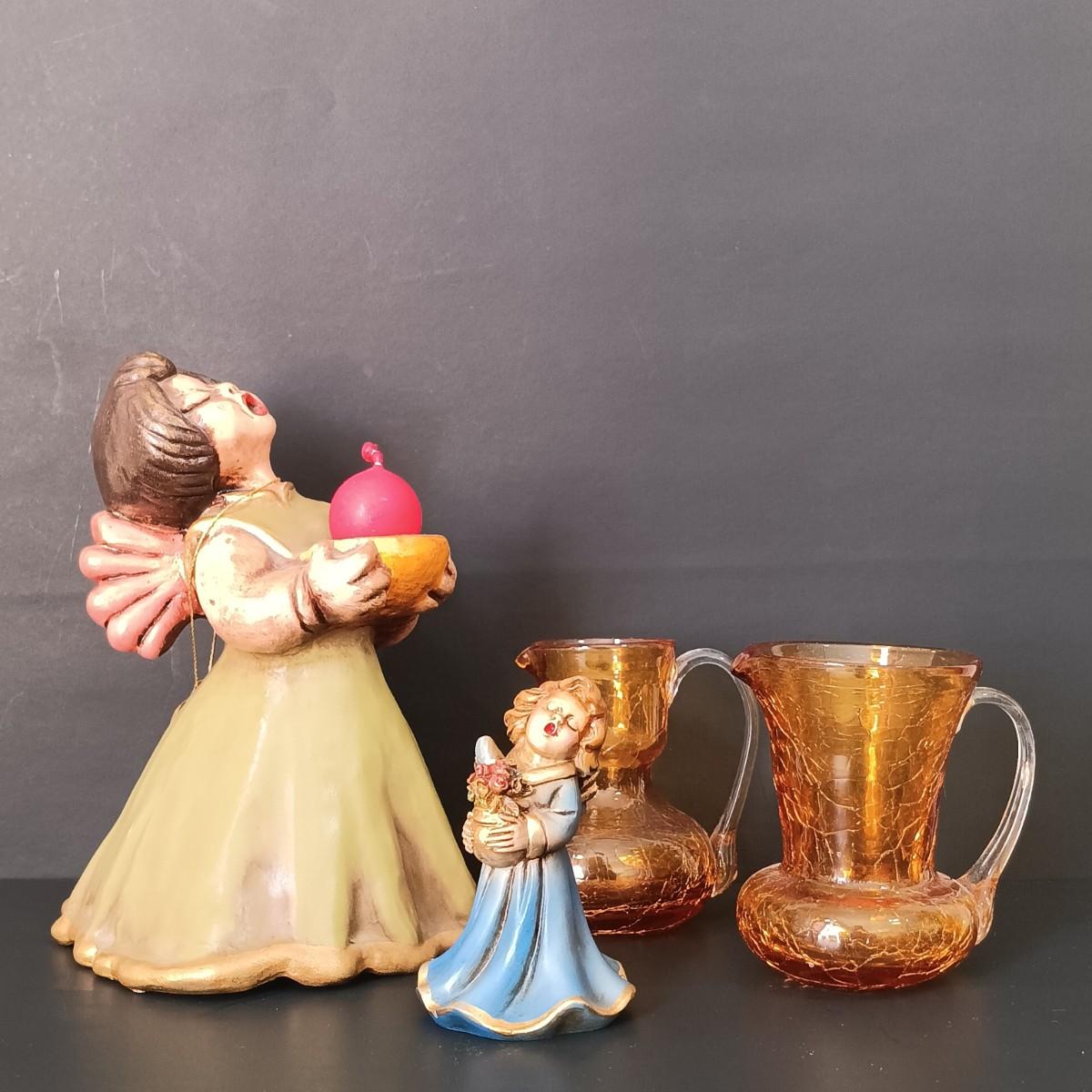 LOT 52: Bozner Engel Angel Candle Holder w/ Small E.F. Italian Angel & 2 Mini Amber Crackle Glass Pitchers