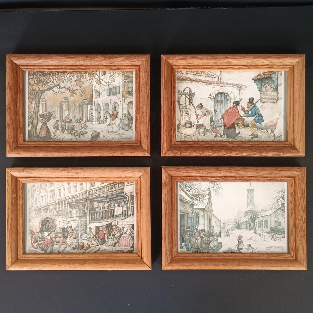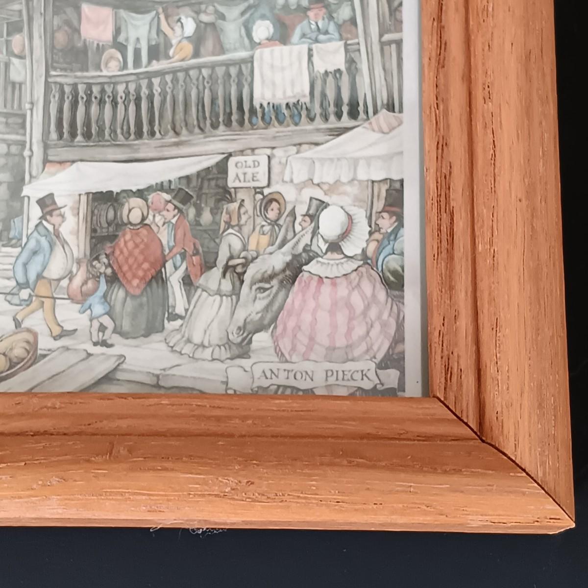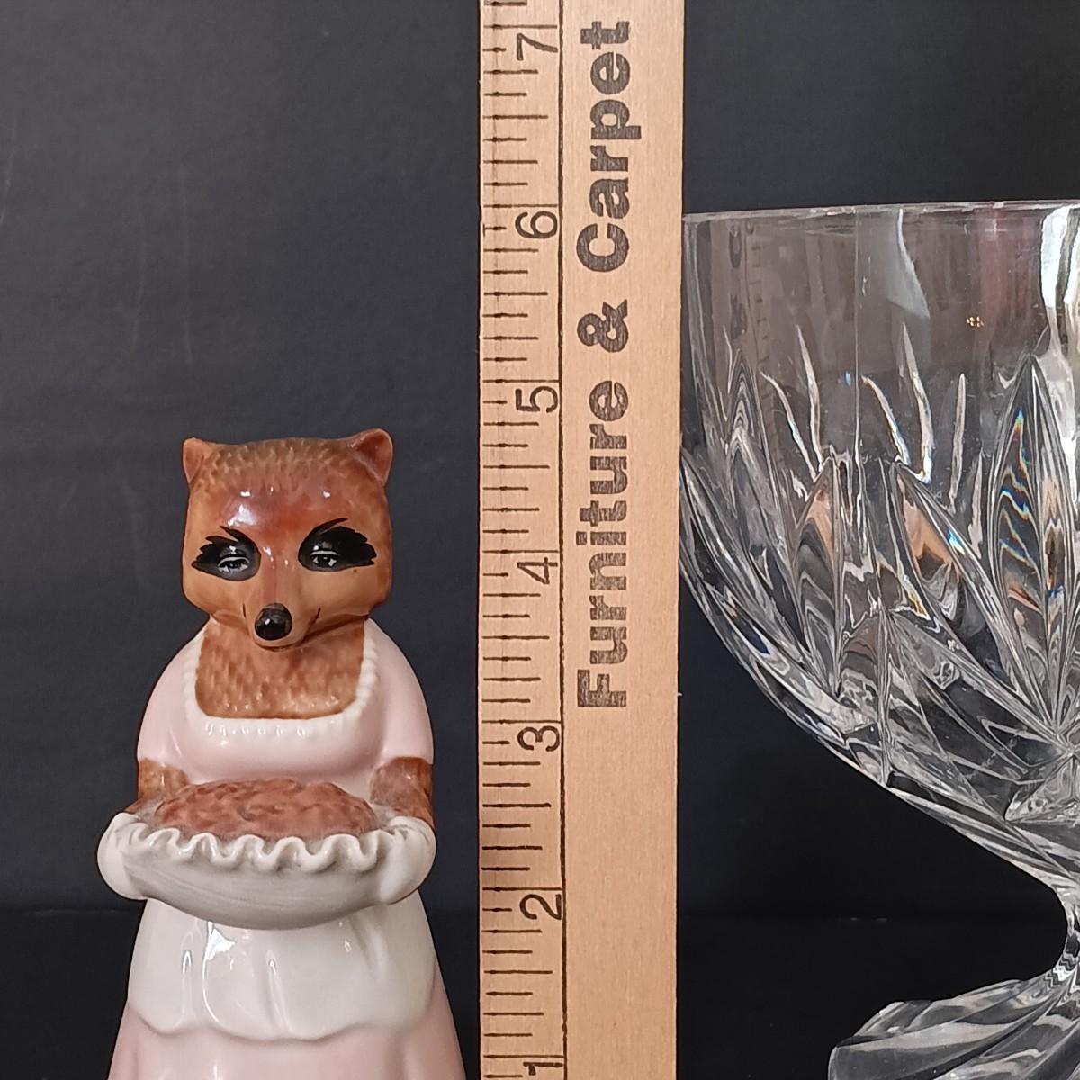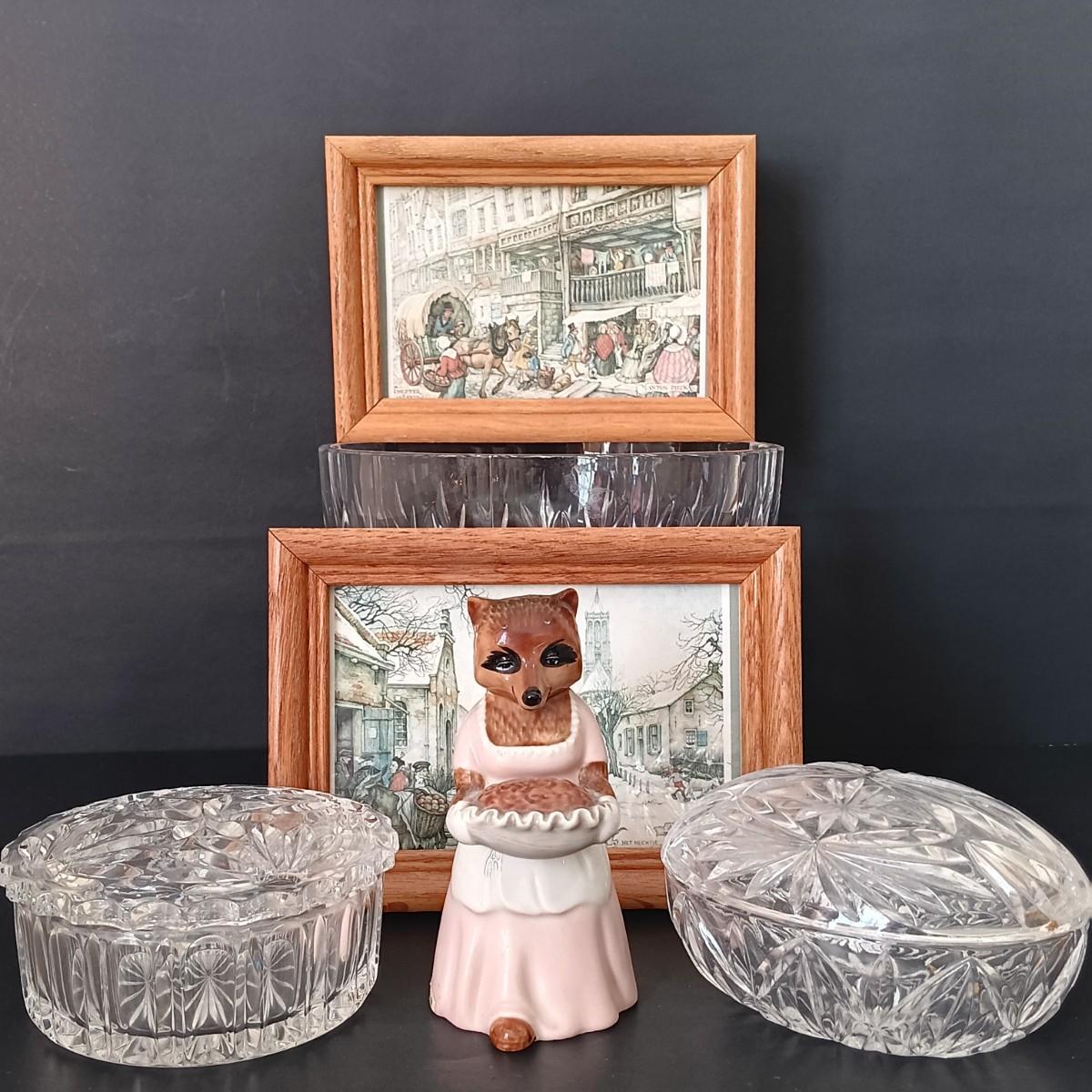 LOT 64: Vintage Hummelwerk Ringtale Raccoon w/ Crystal Dishware & Anton Pieck Postcard Size framed Prints