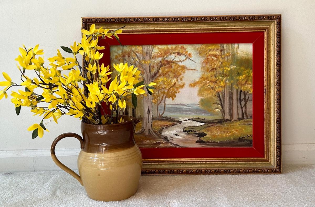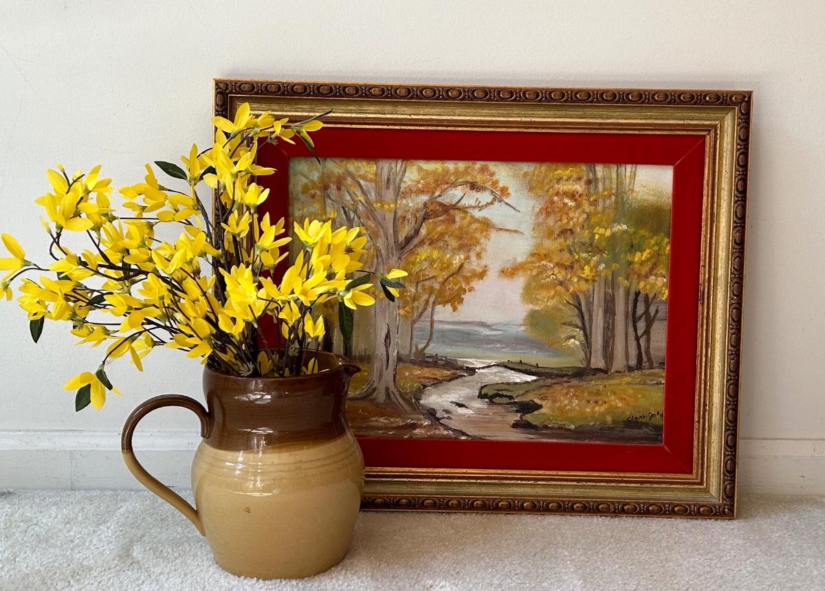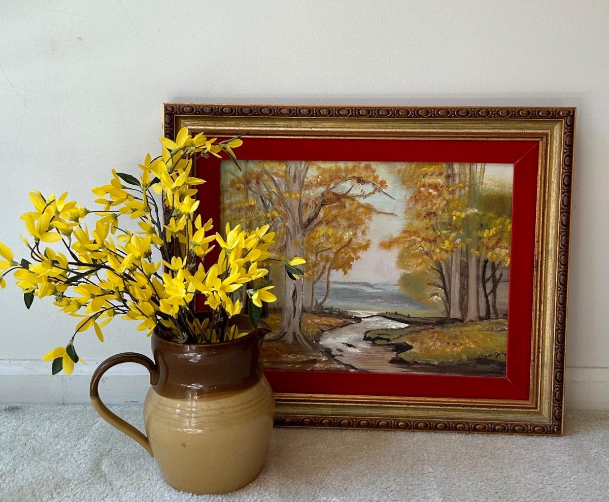 LOT 71: Signed & Framed Painting and Pottery Pitcher