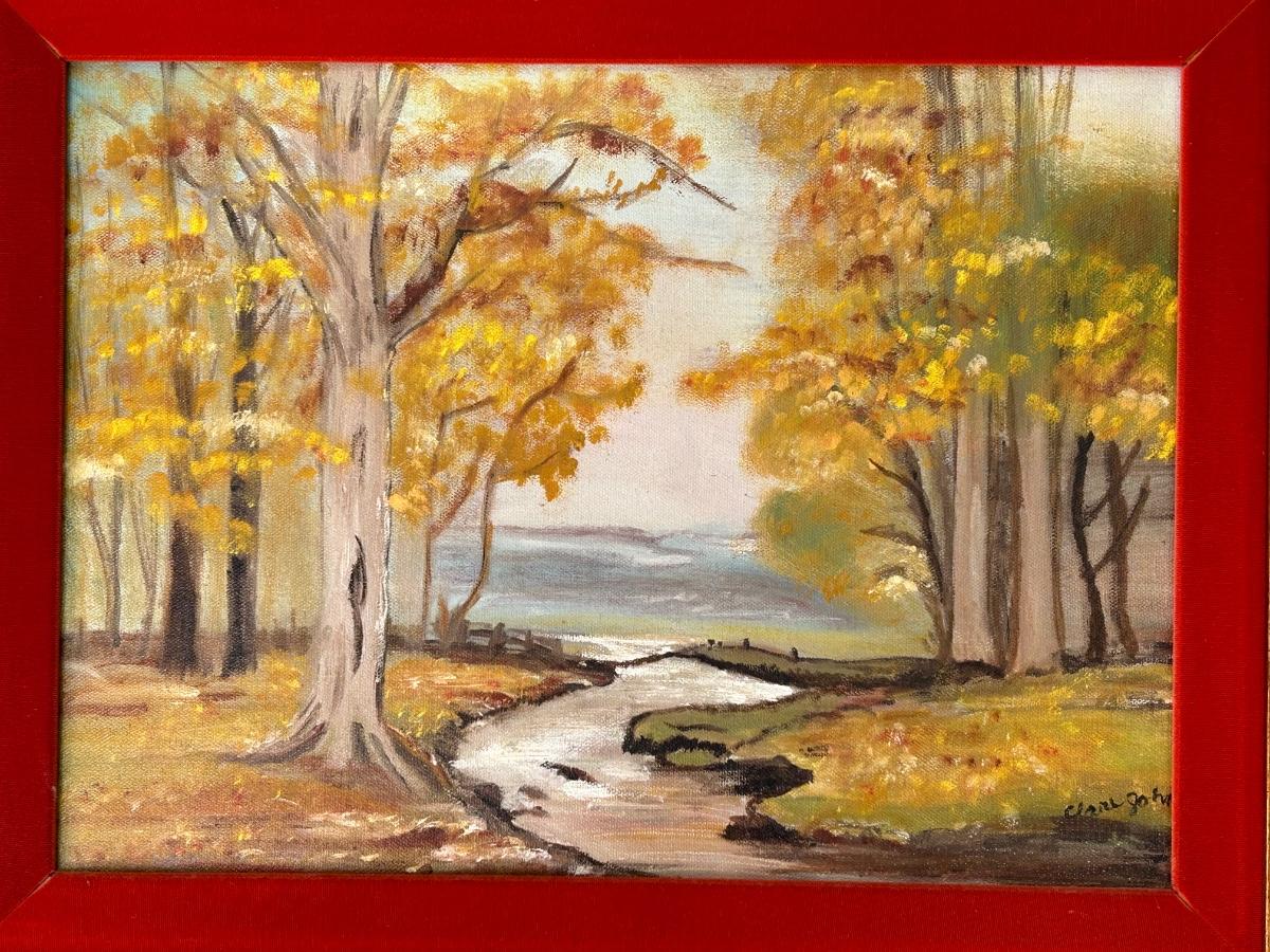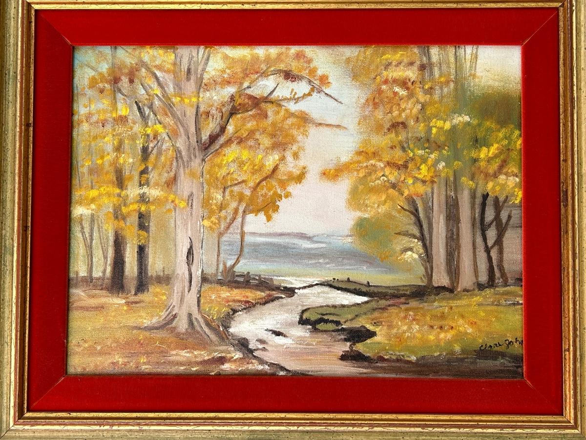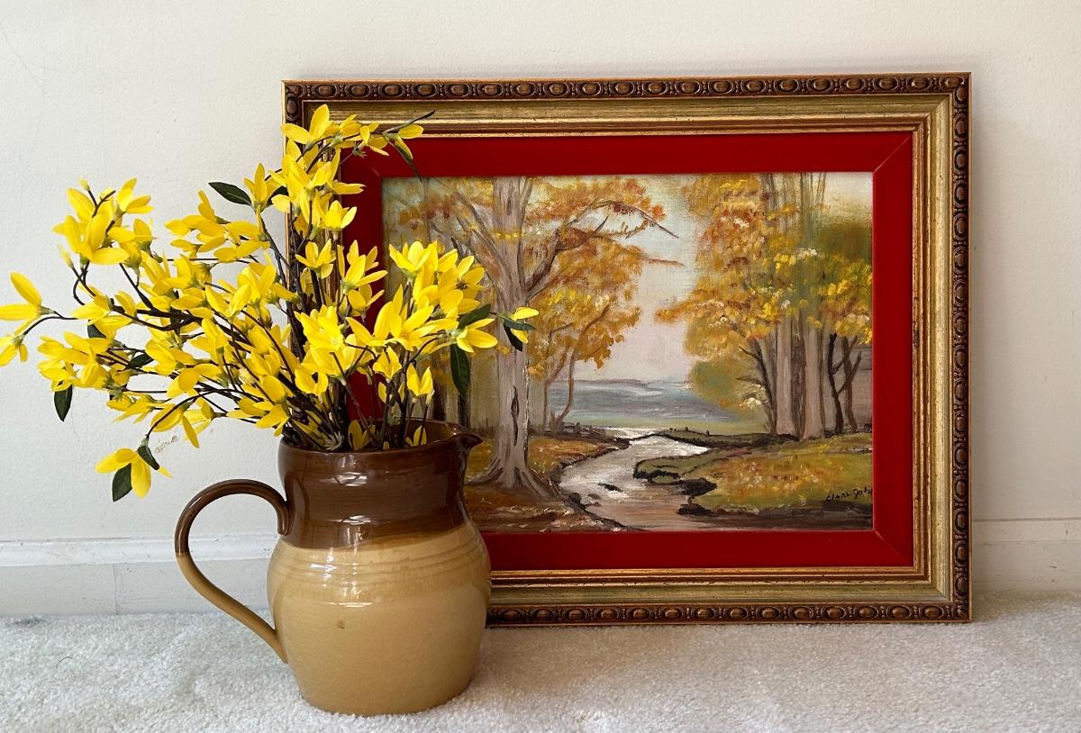 LOT 71: Signed & Framed Painting and Pottery Pitcher