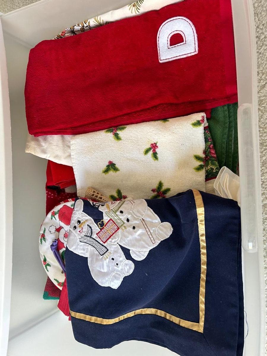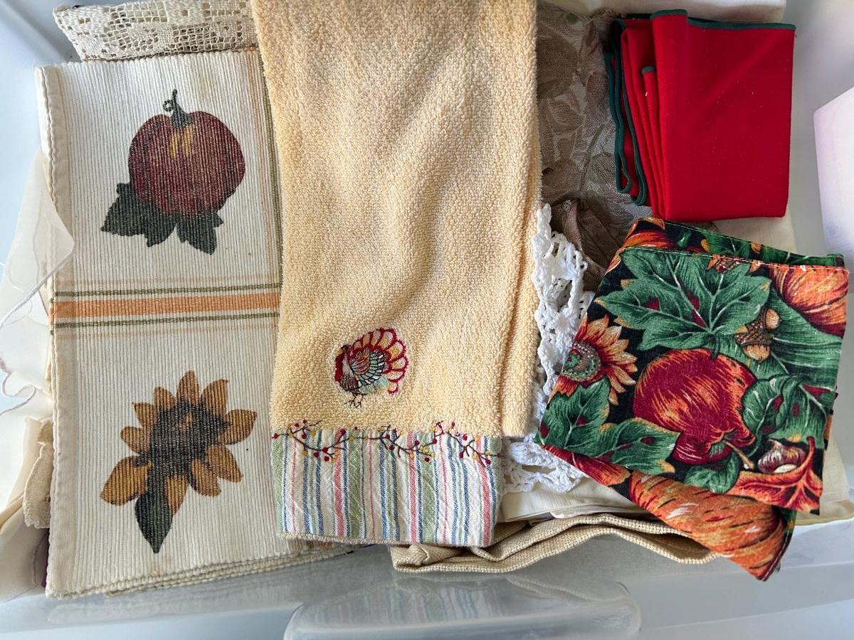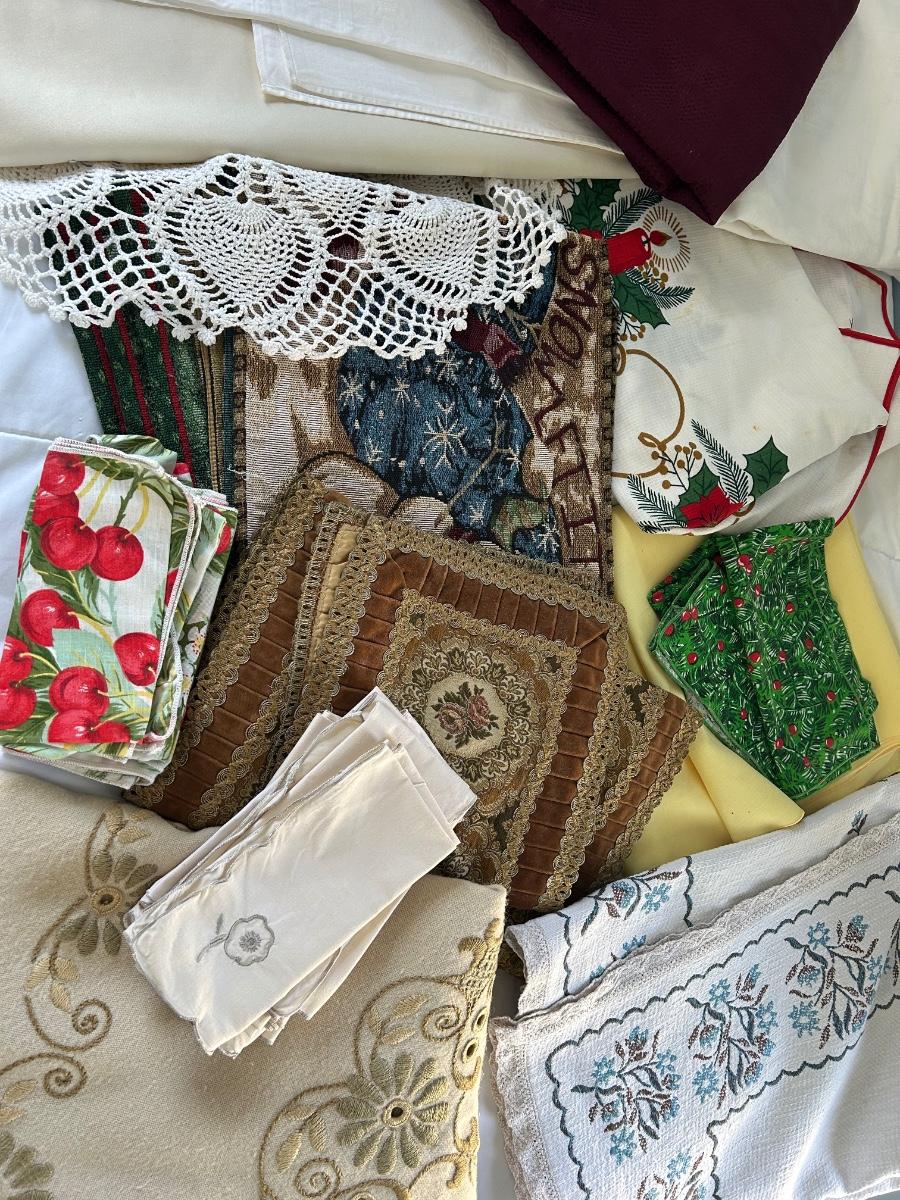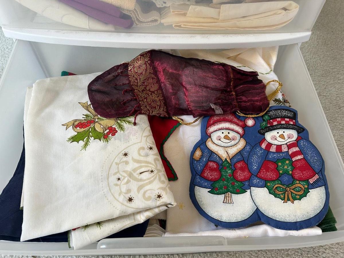 LOT 81: Large Linen Collection and Plastic Closet Dresser For Storage - Tablecloths, Napkins, Doilies, Placemats and more