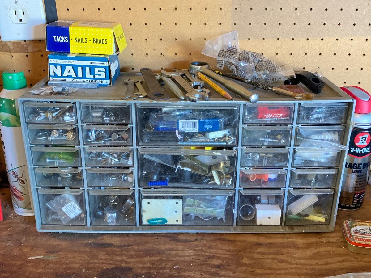 LOT 85G: Large Collection of Tools, Toolbox, Hardware, Funnels and More