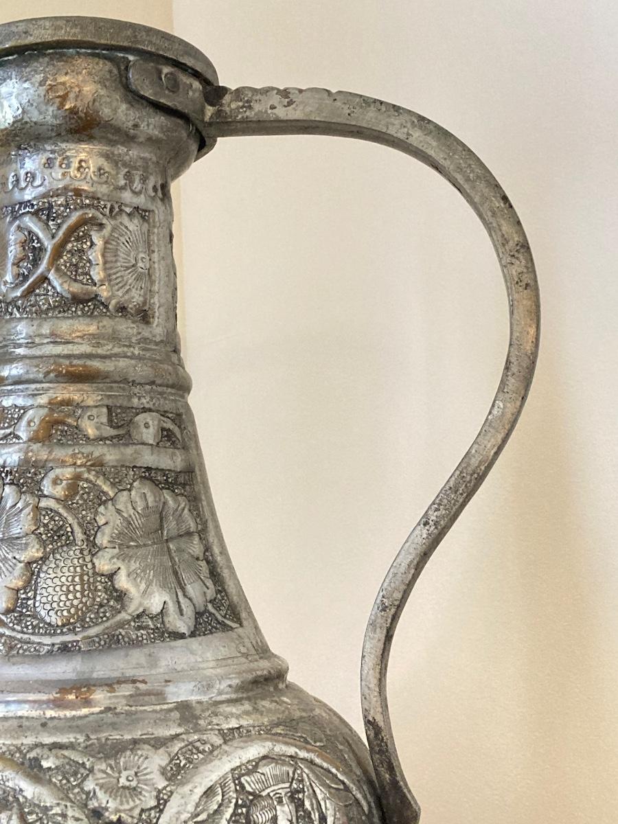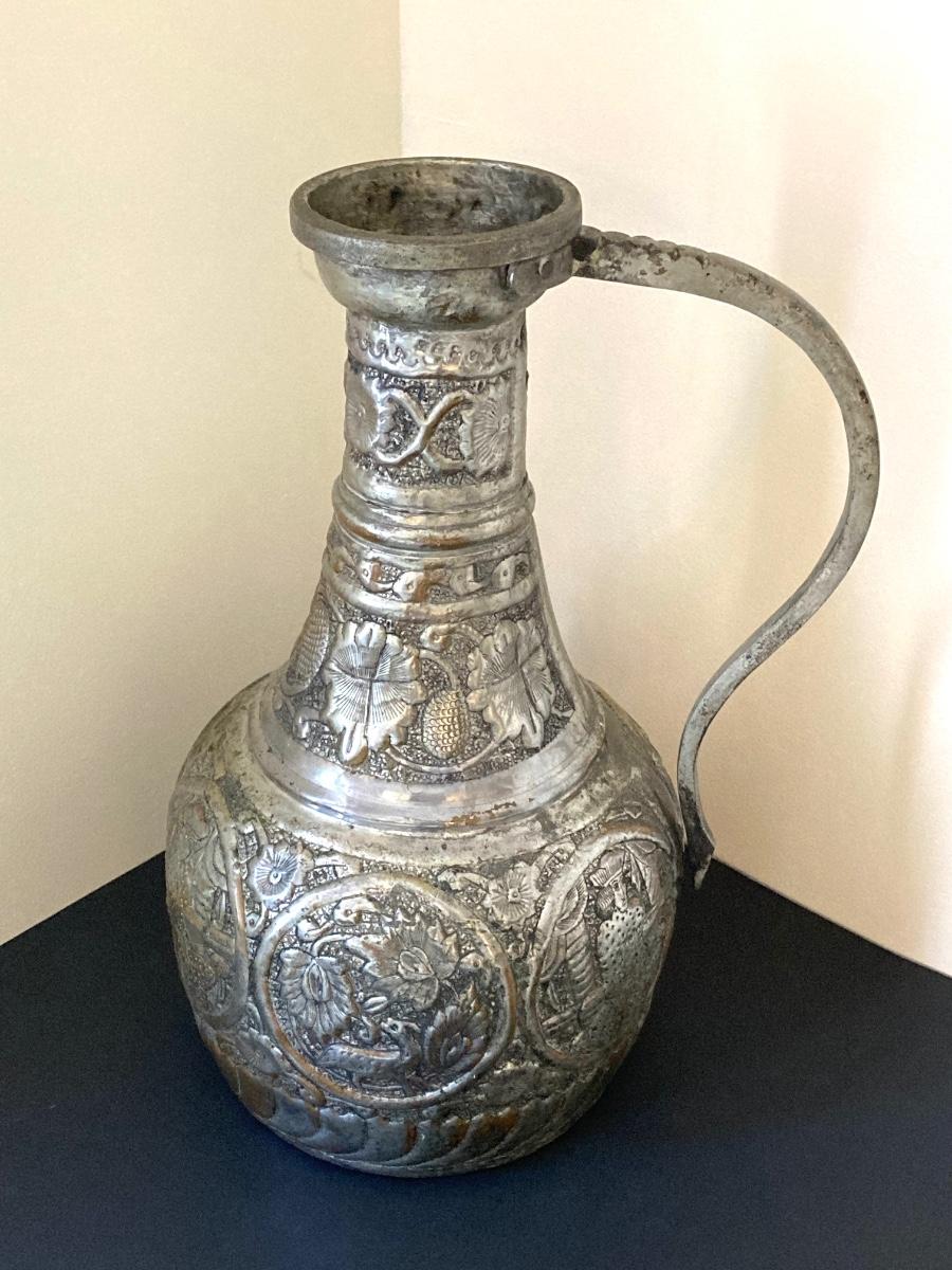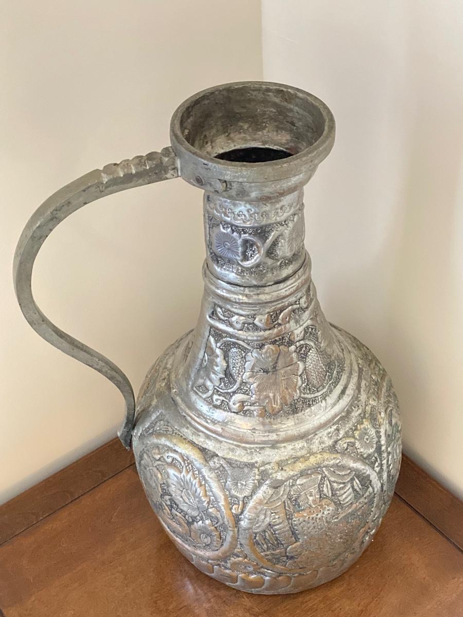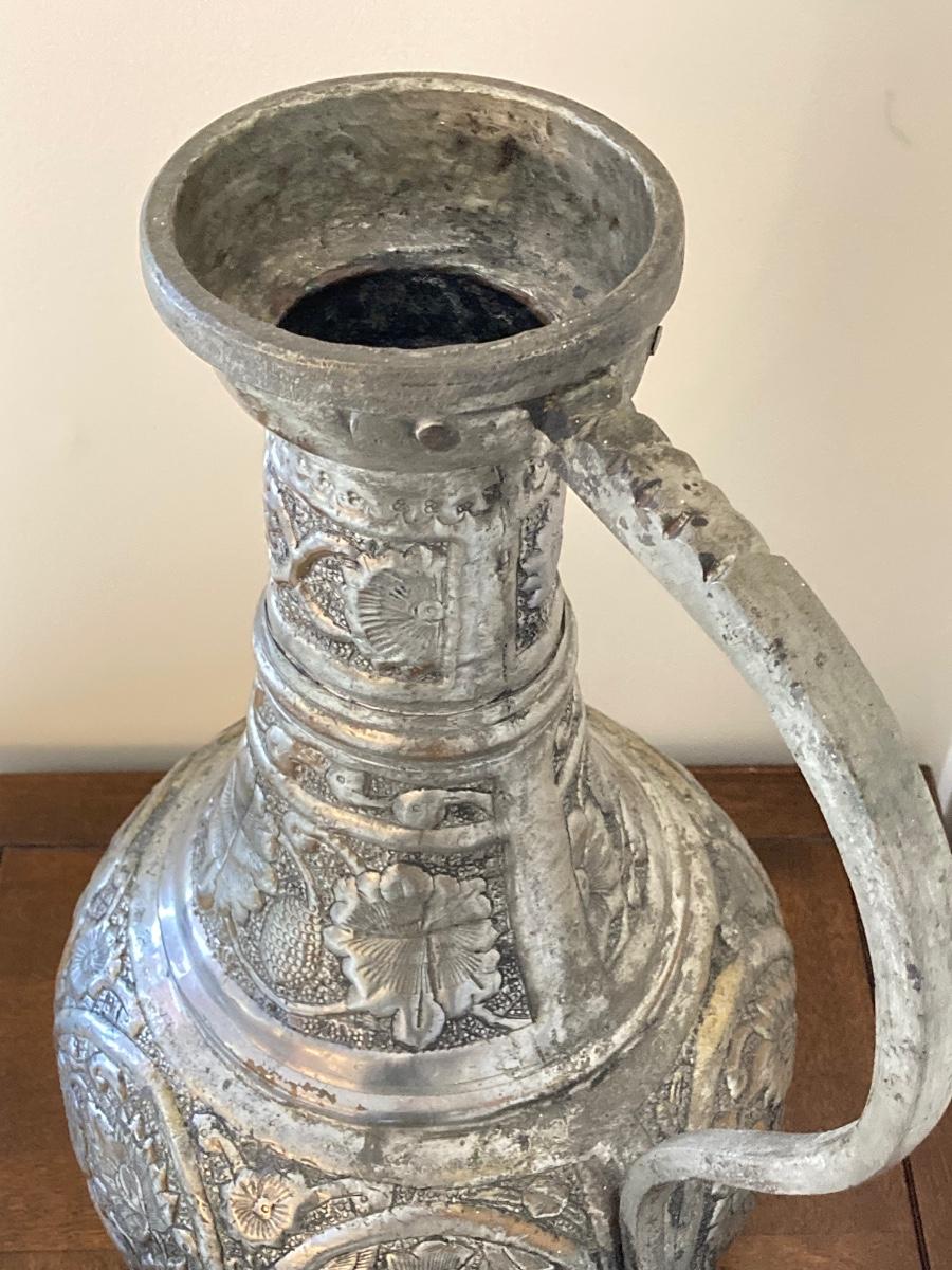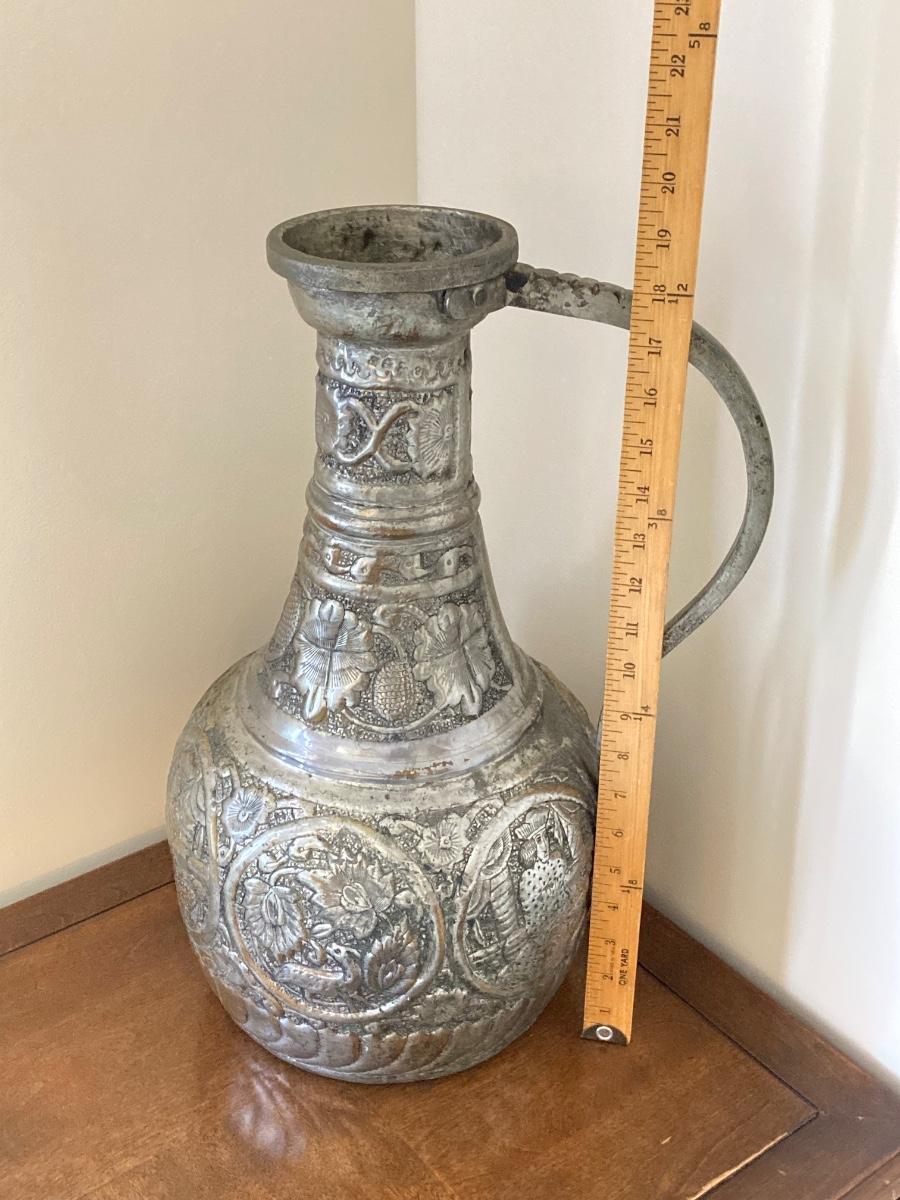 LOT 105: Large Vintage / Antique Middle Eastern Embossed Metal Pitcher