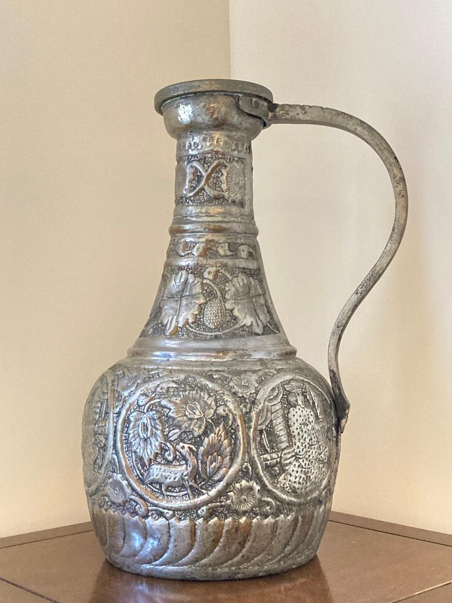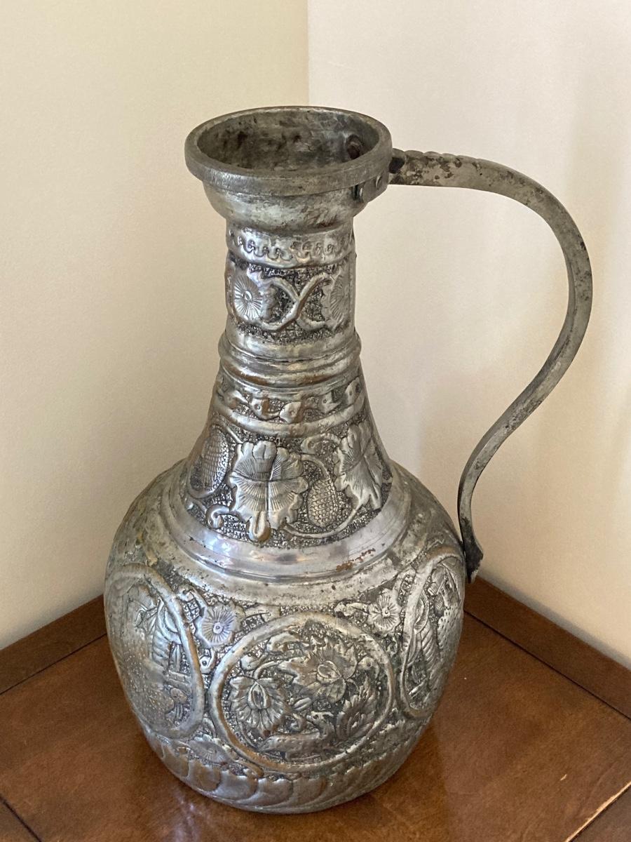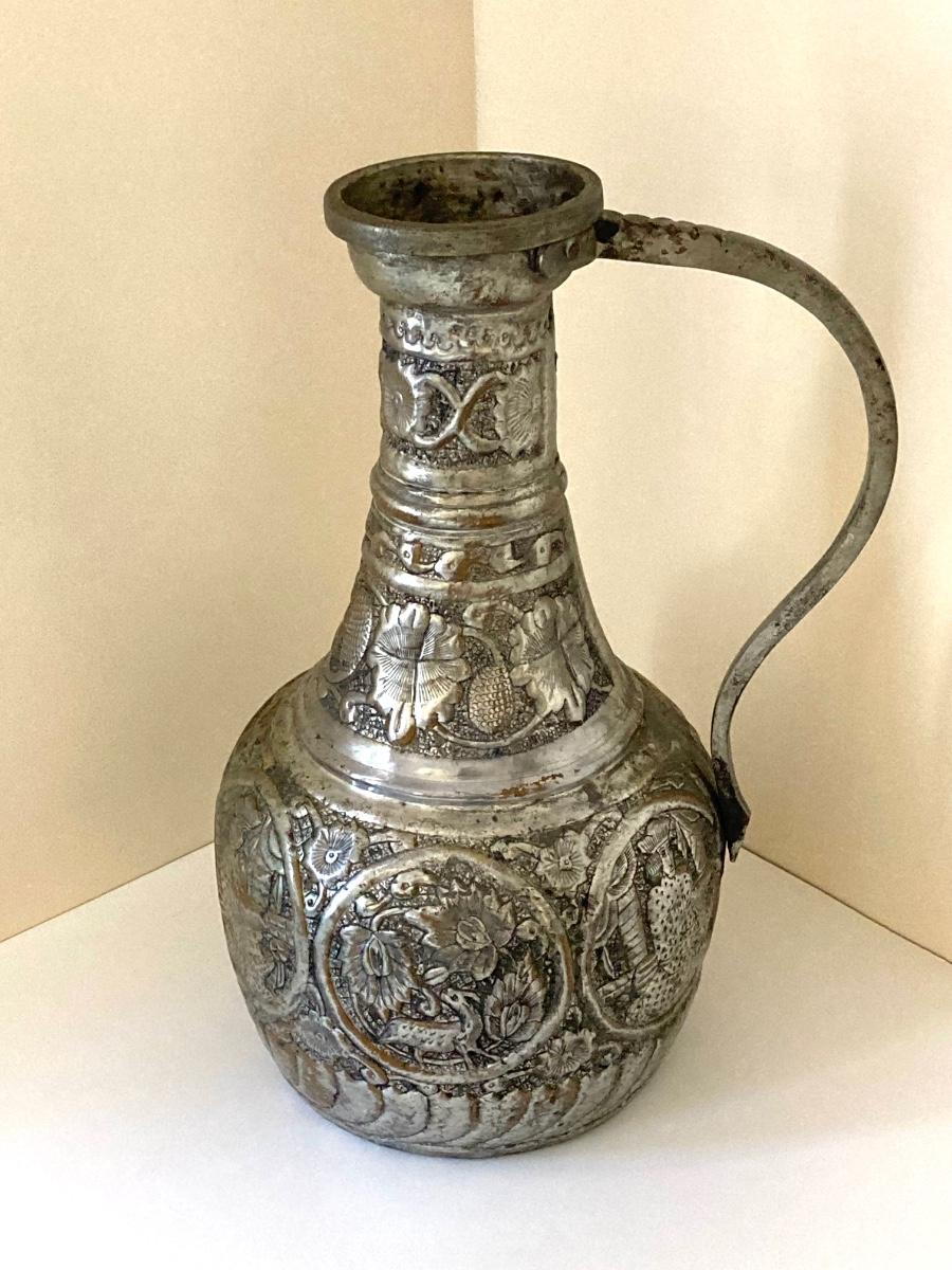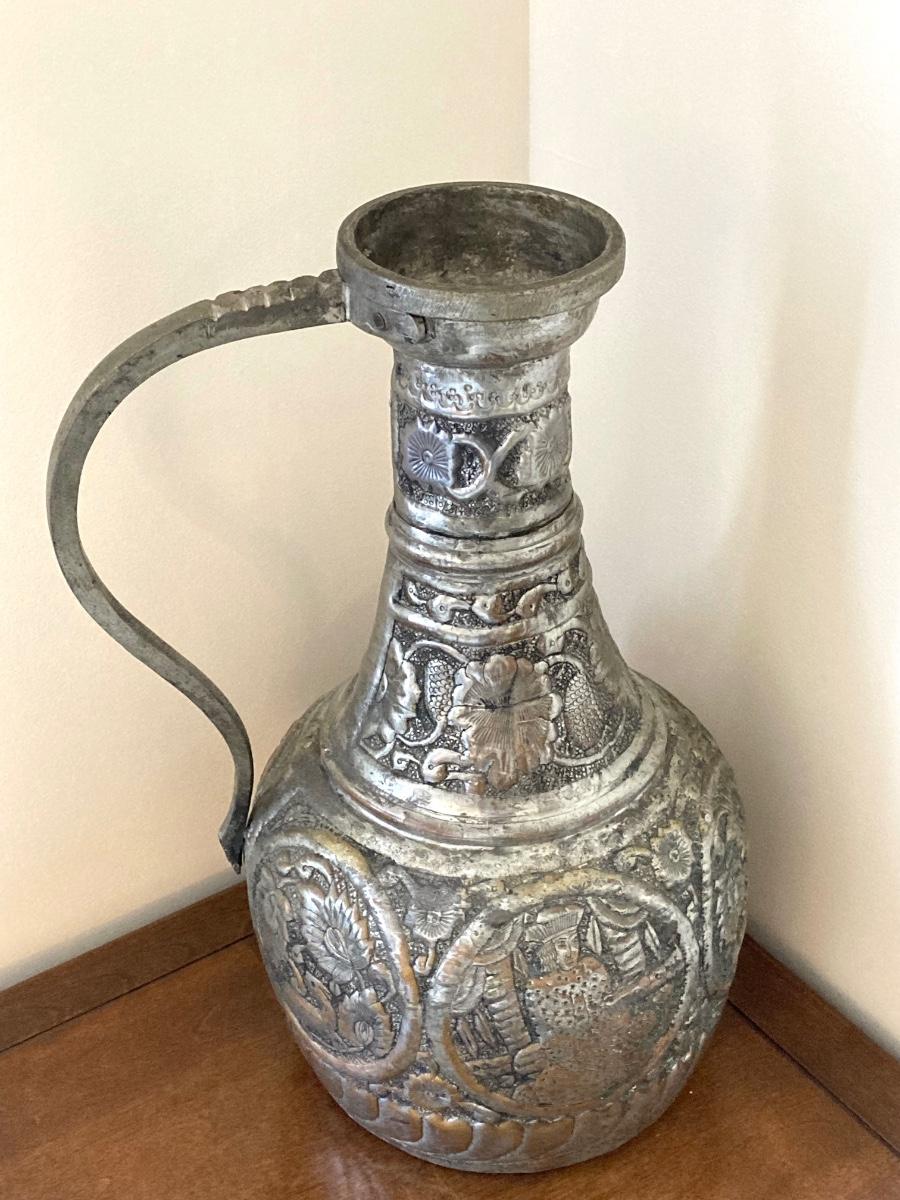 LOT 105: Large Vintage / Antique Middle Eastern Embossed Metal Pitcher
