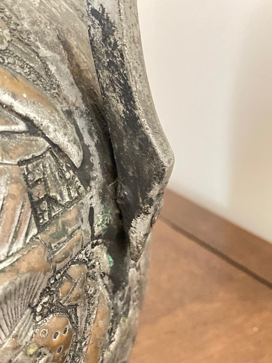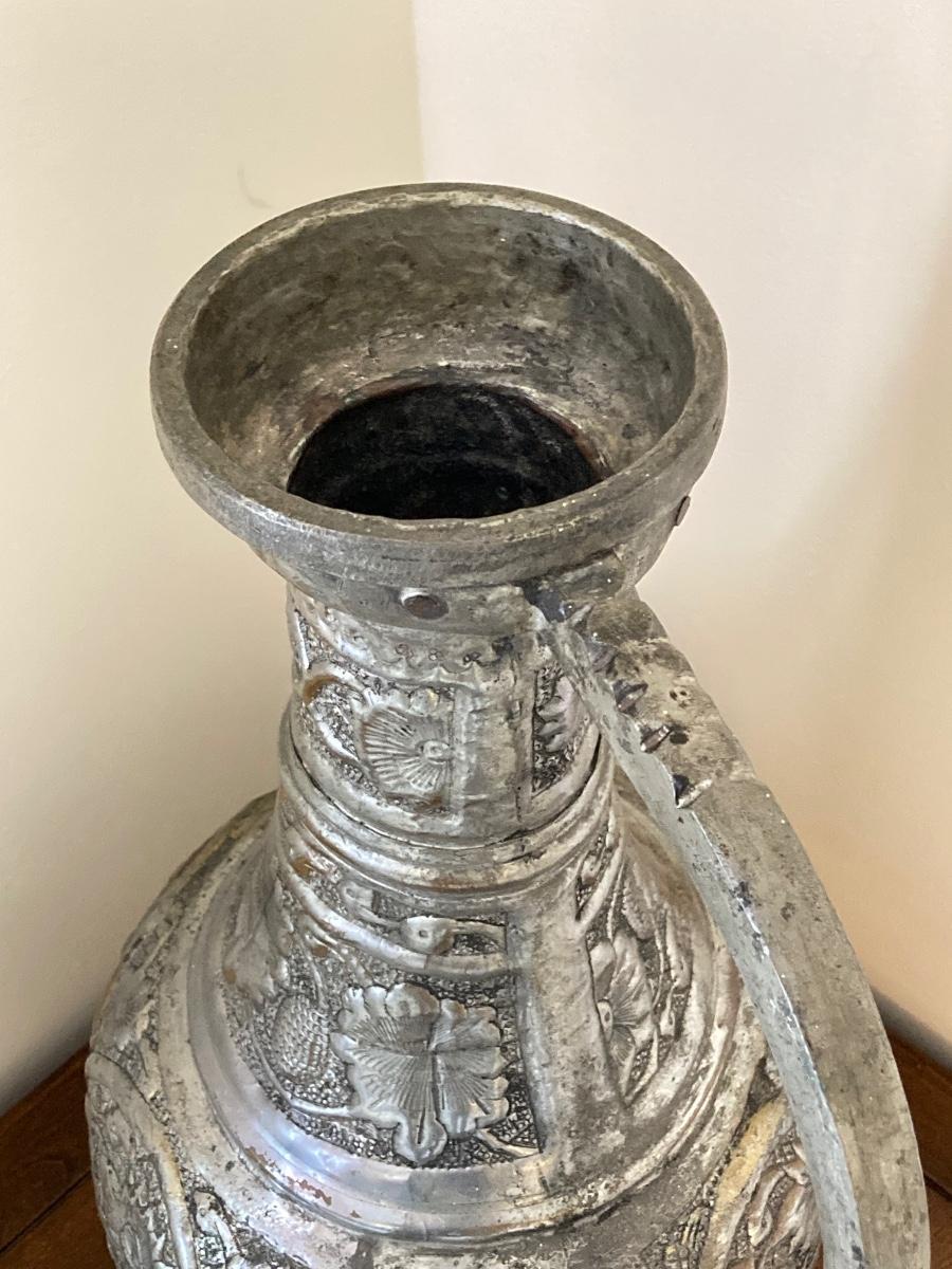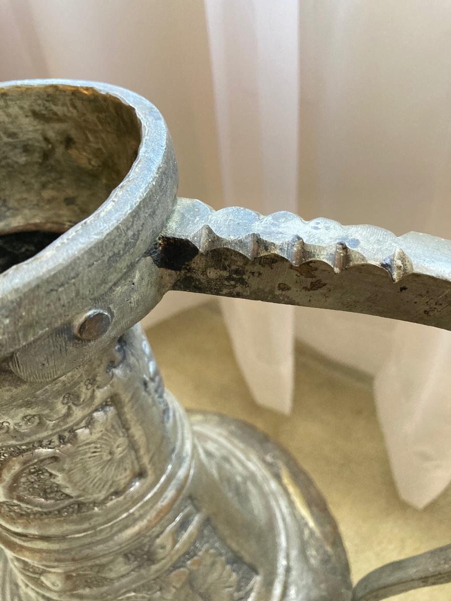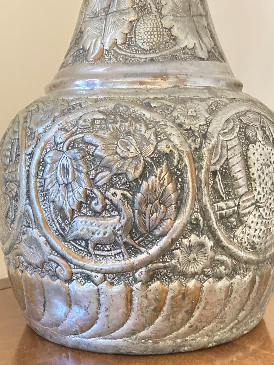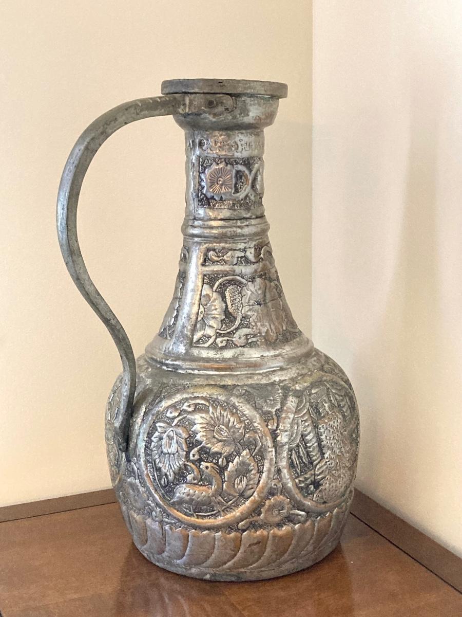 LOT 105: Large Vintage / Antique Middle Eastern Embossed Metal Pitcher