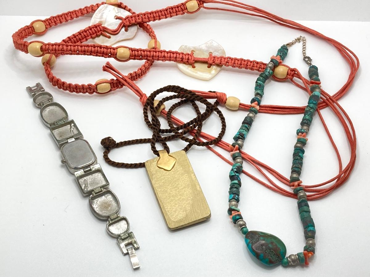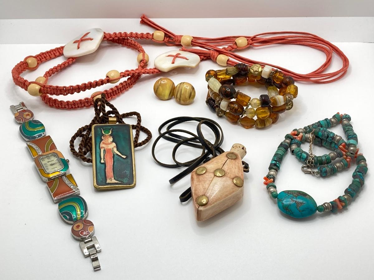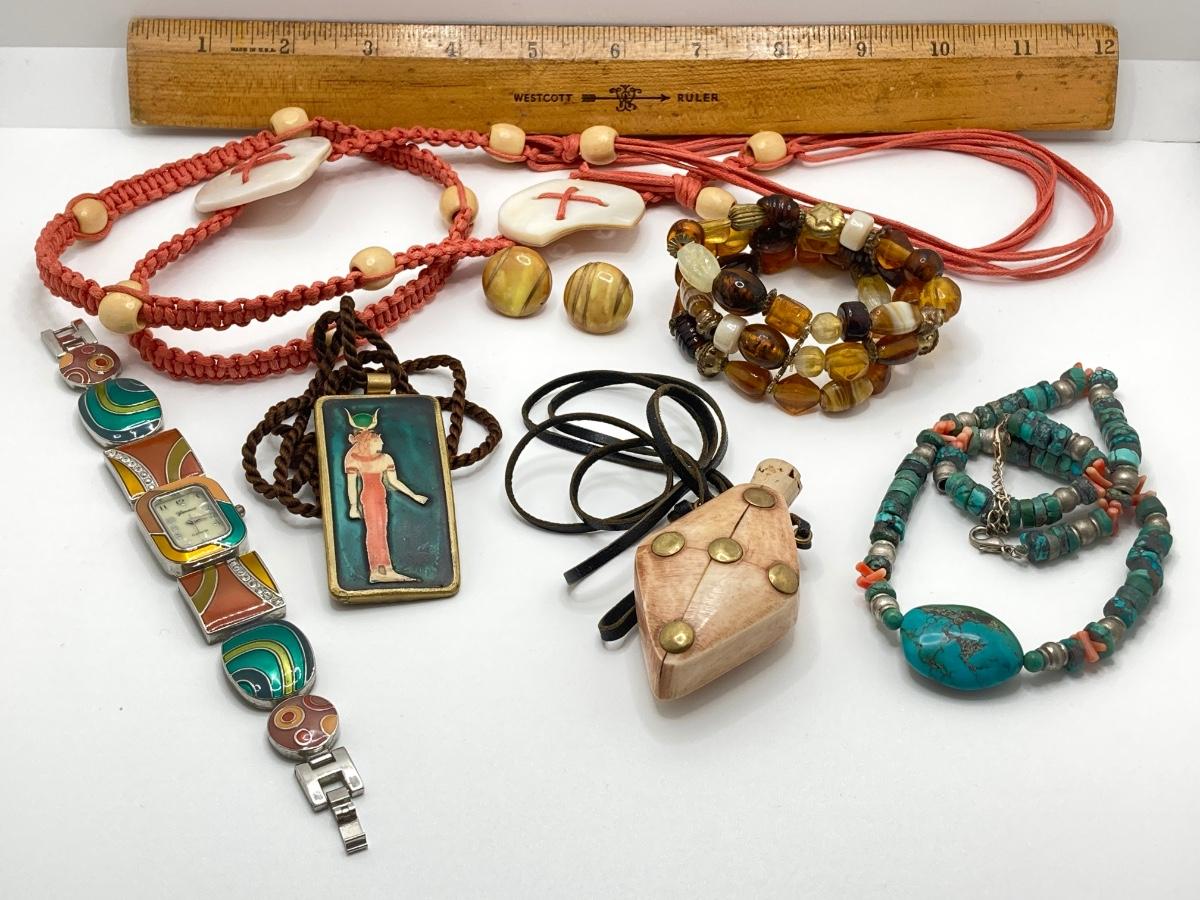 LOT 112J: Collection of Fashion Accessories - Geneva Watch, LBMDJ Bracelet, Snuff Bottle Pendant Necklace and More