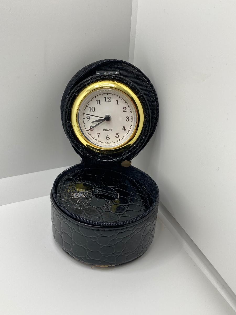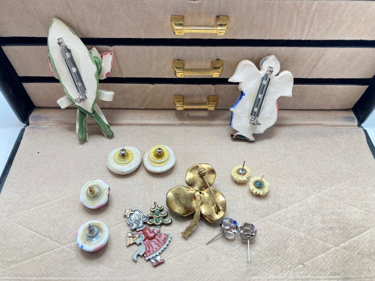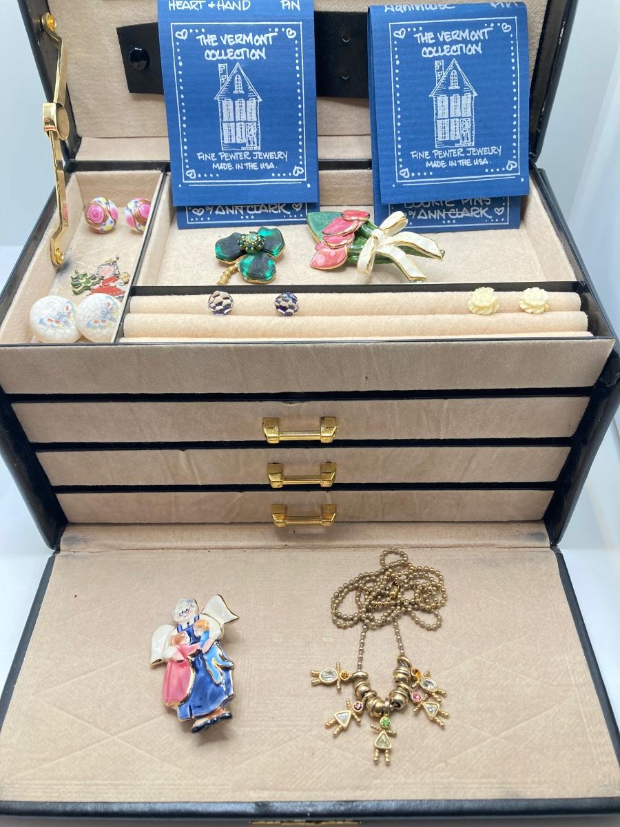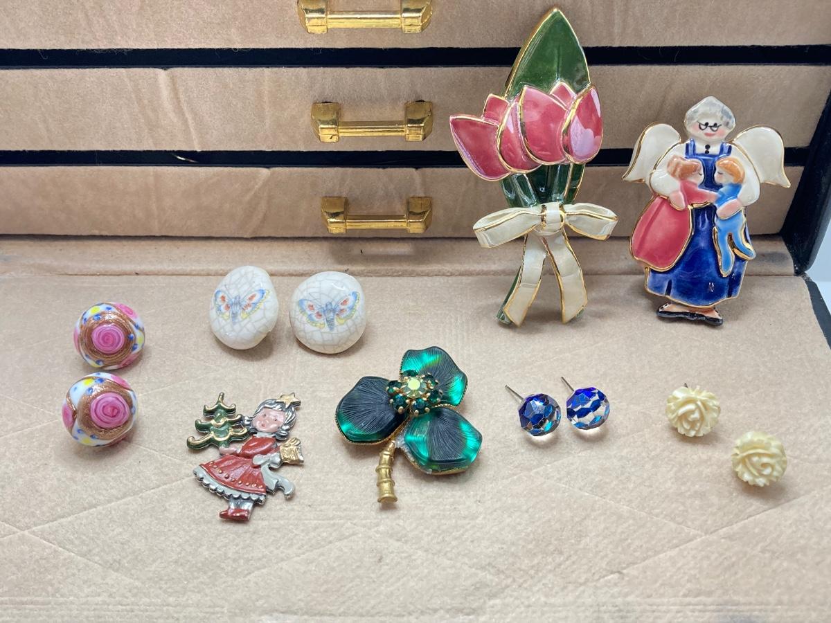 LOT 126J: Jewelry Box with Collection of Jewelry (Avon / BSK and More), Bulova Alarm Clock and Travel Clock