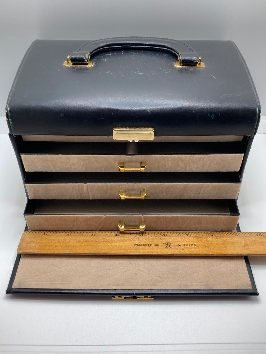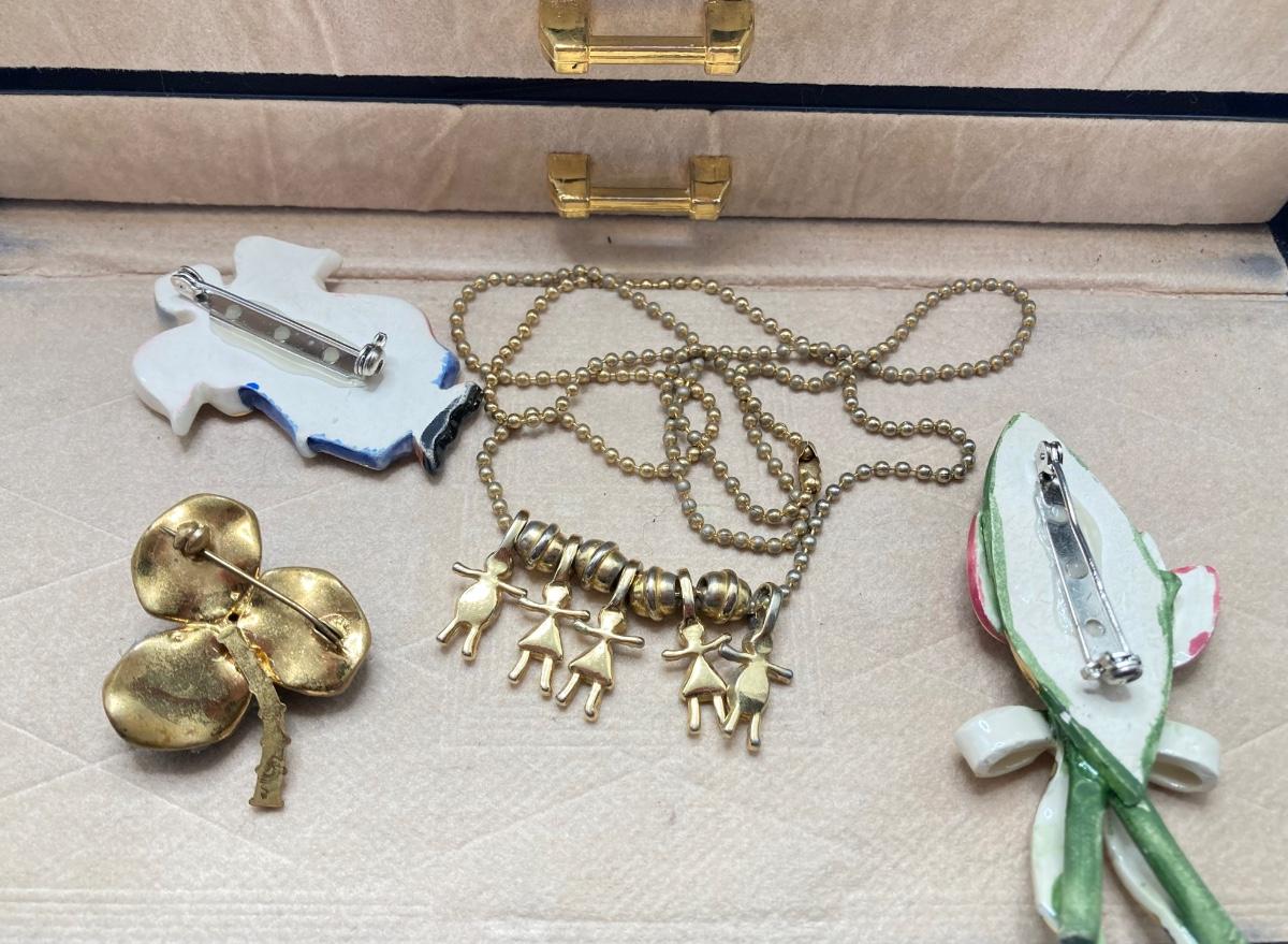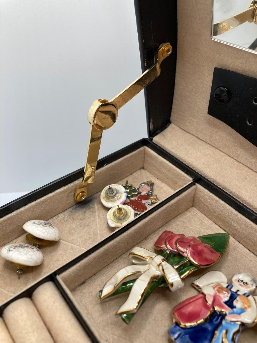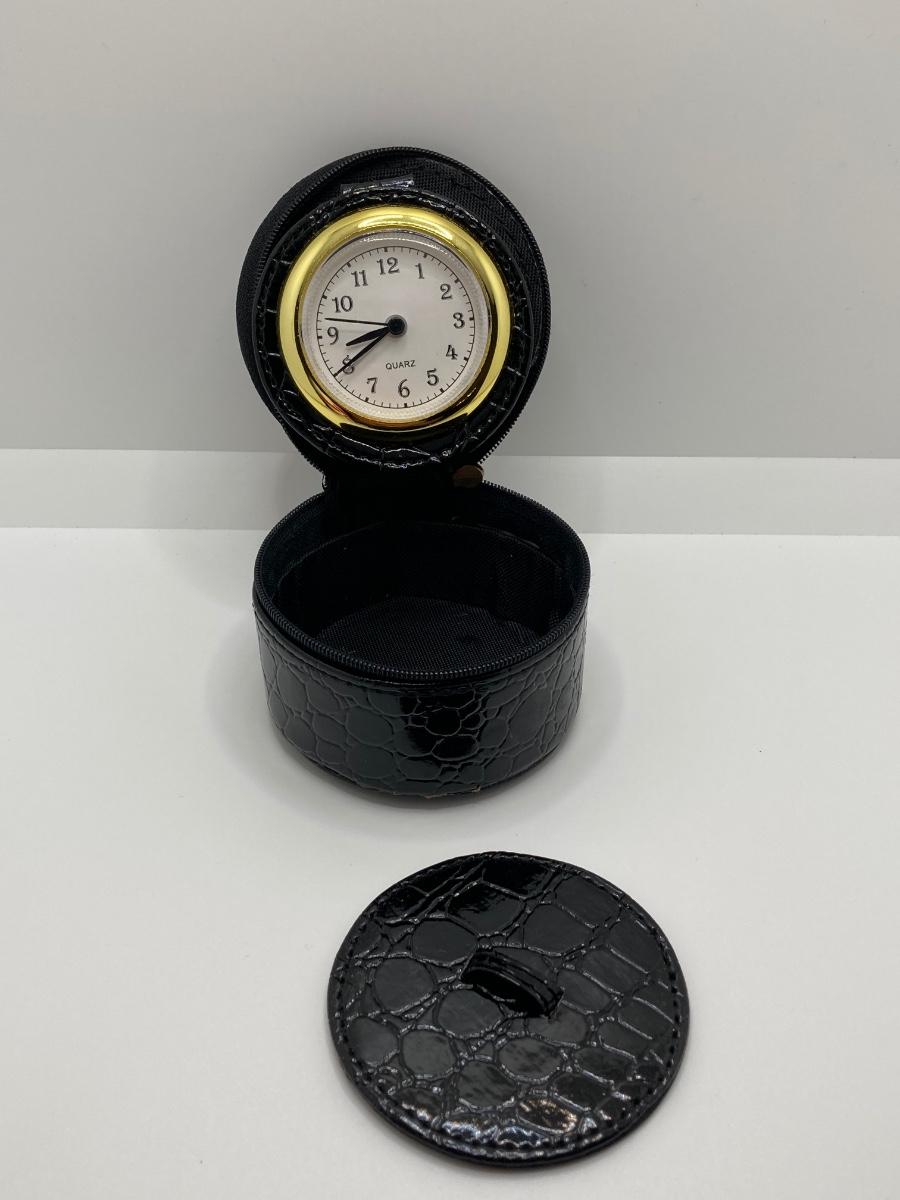 LOT 126J: Jewelry Box with Collection of Jewelry (Avon / BSK and More), Bulova Alarm Clock and Travel Clock