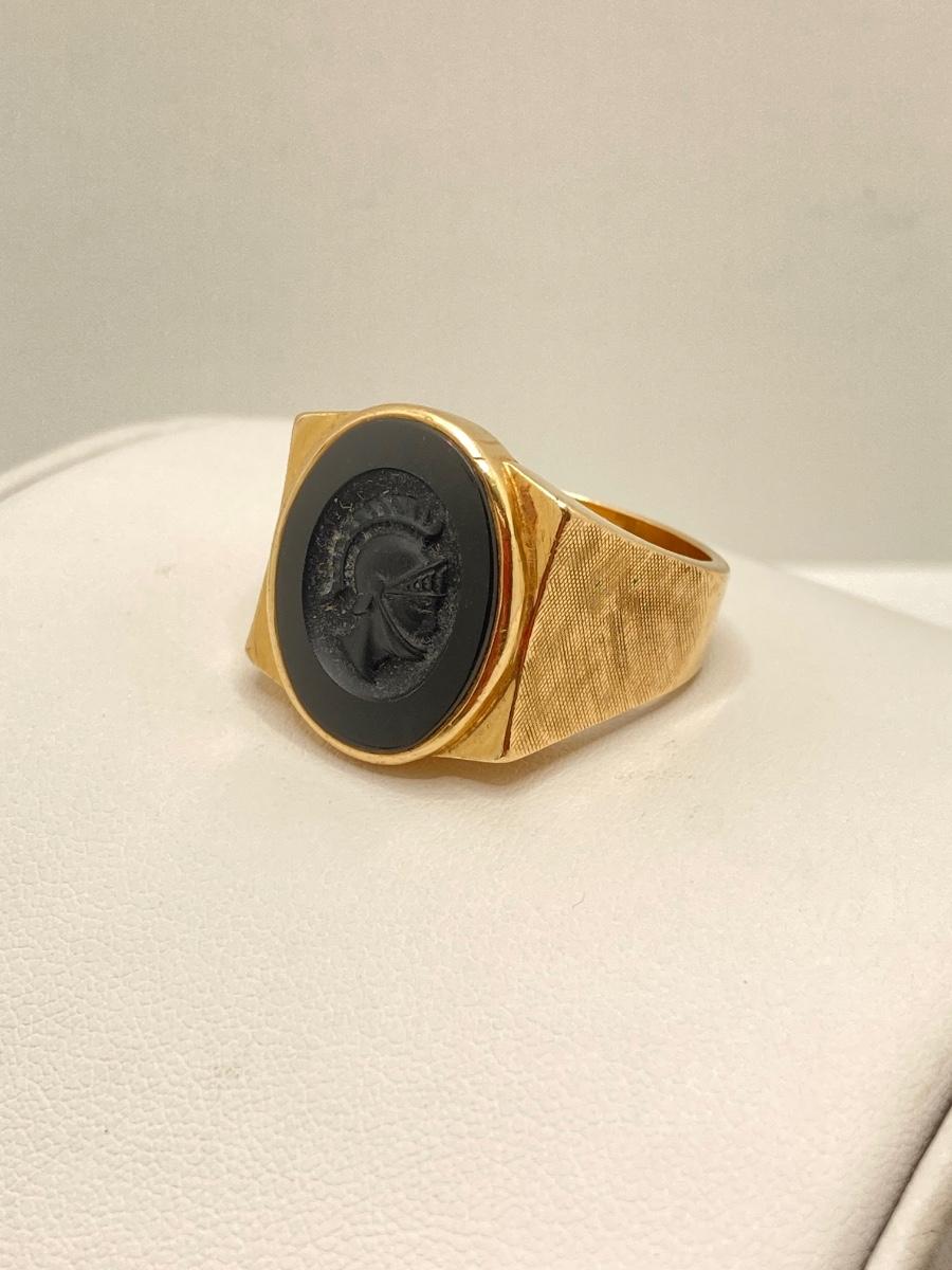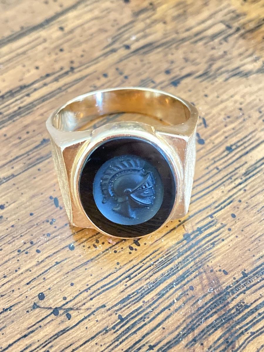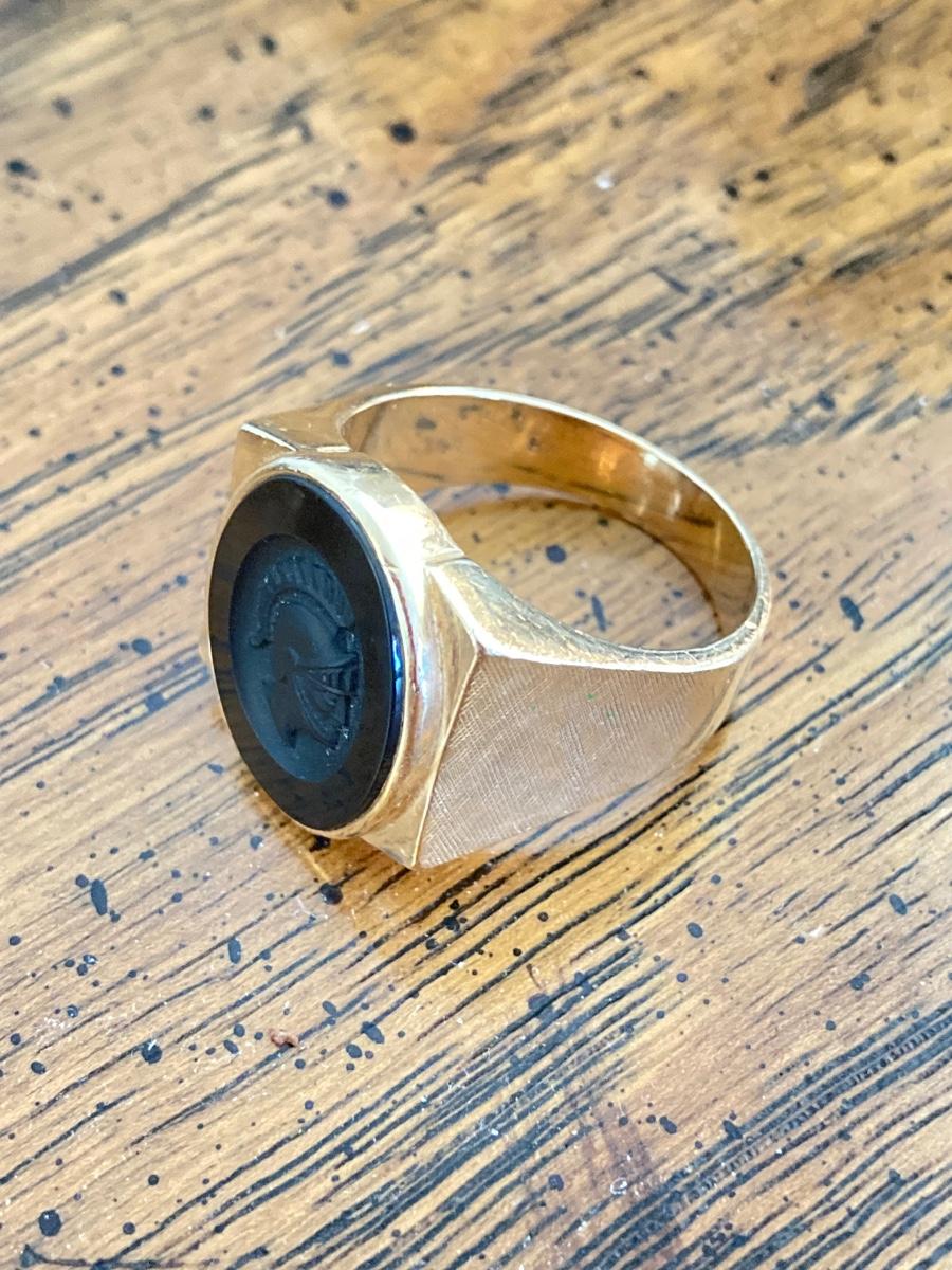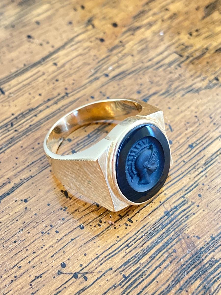 LOT 130J: Vintage Intaglio Signet Carved Stone Ring Unmarked - 10KT, 11.58 TW g, Sz12