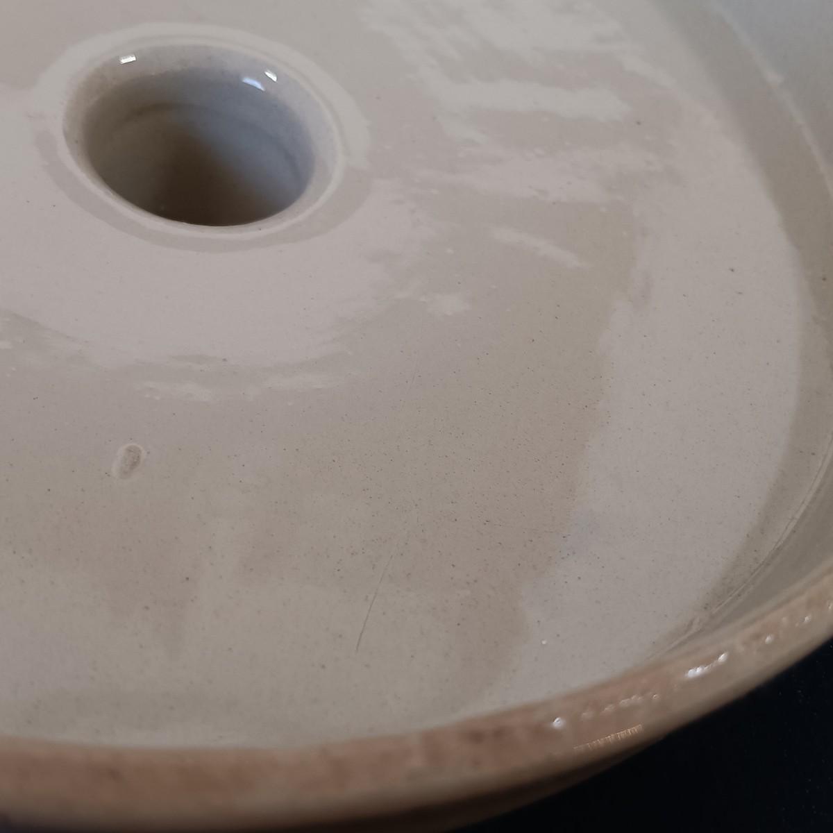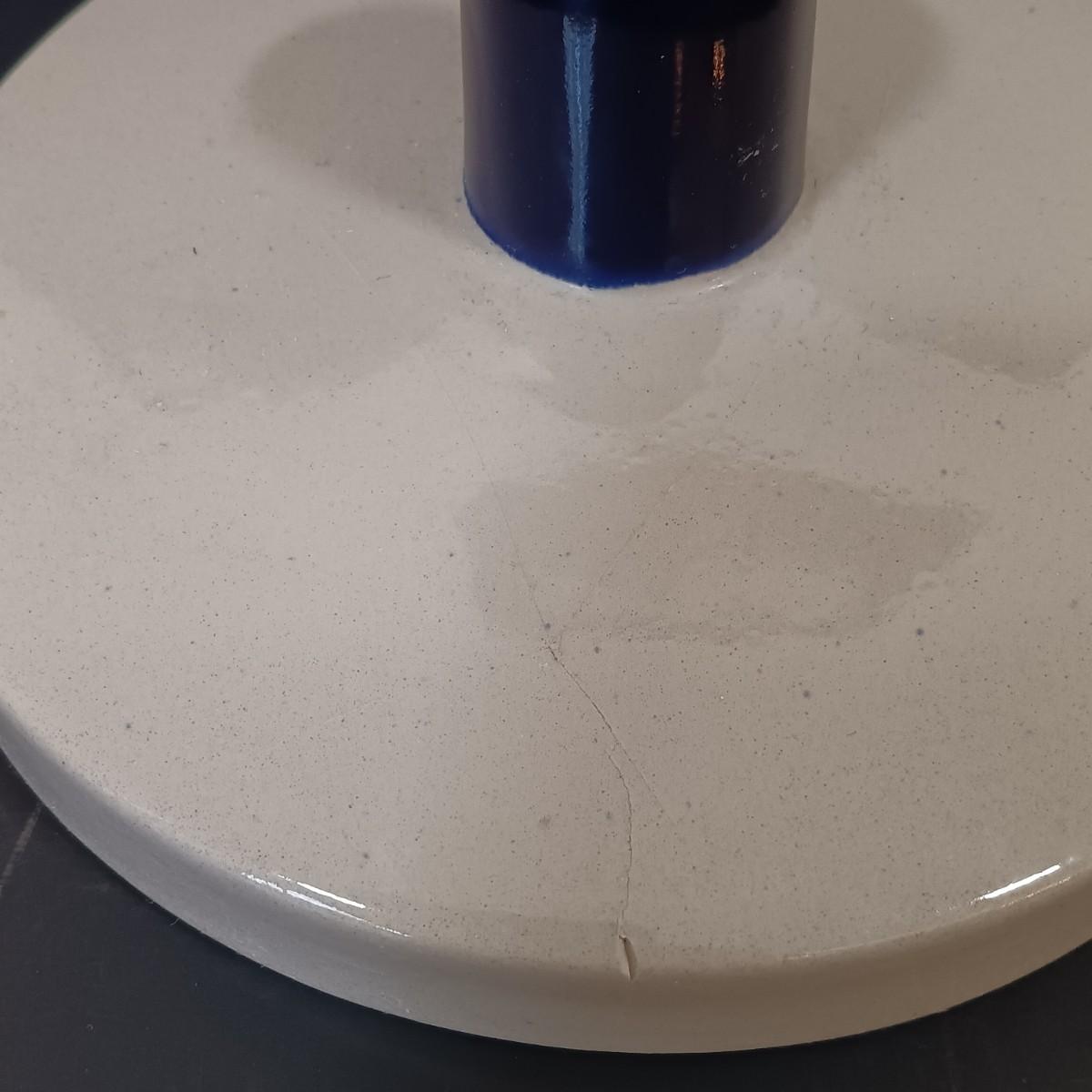 The lid is included but has a large crack that extends from one side to the other.