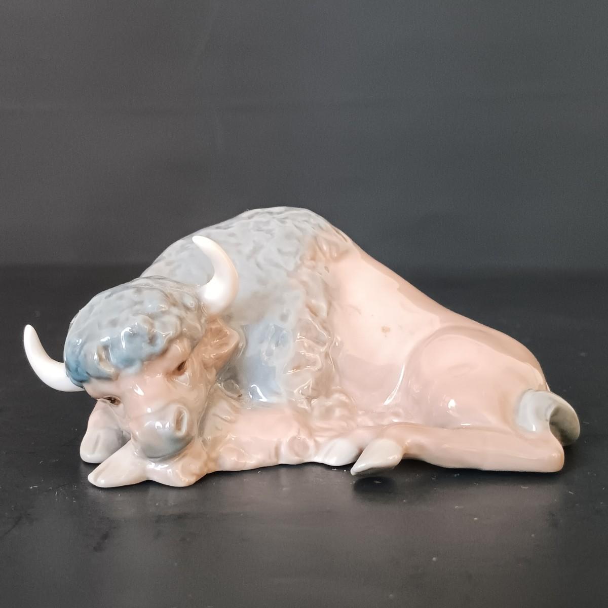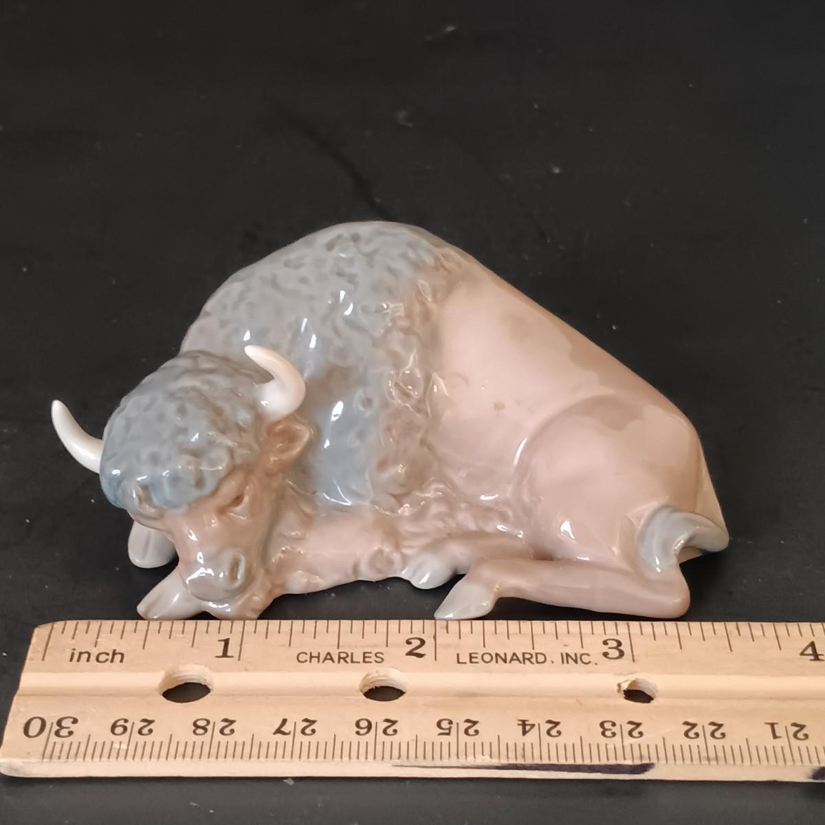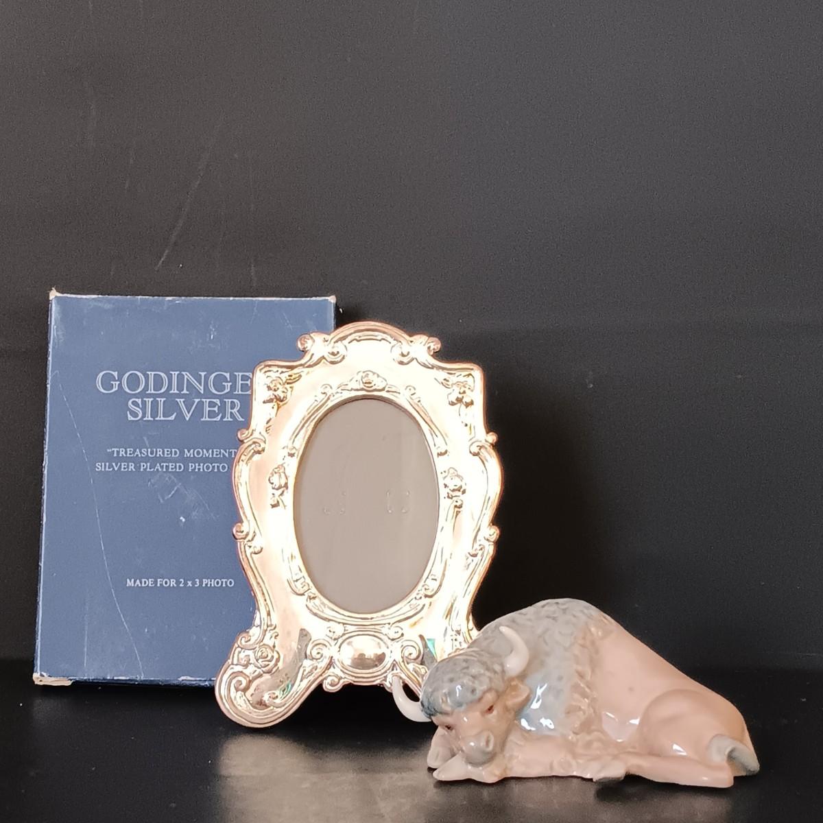 LOT 158: Lladro Resting Mini Bison Fiqurine with Silver Plated Photo Frame