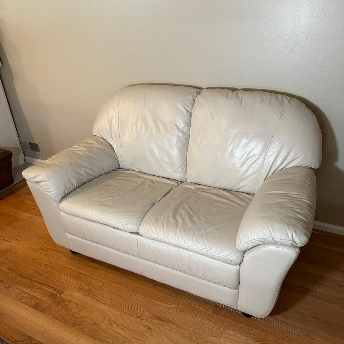 LOT 15K: Leather Loveseat & Chair w/ Ottoman