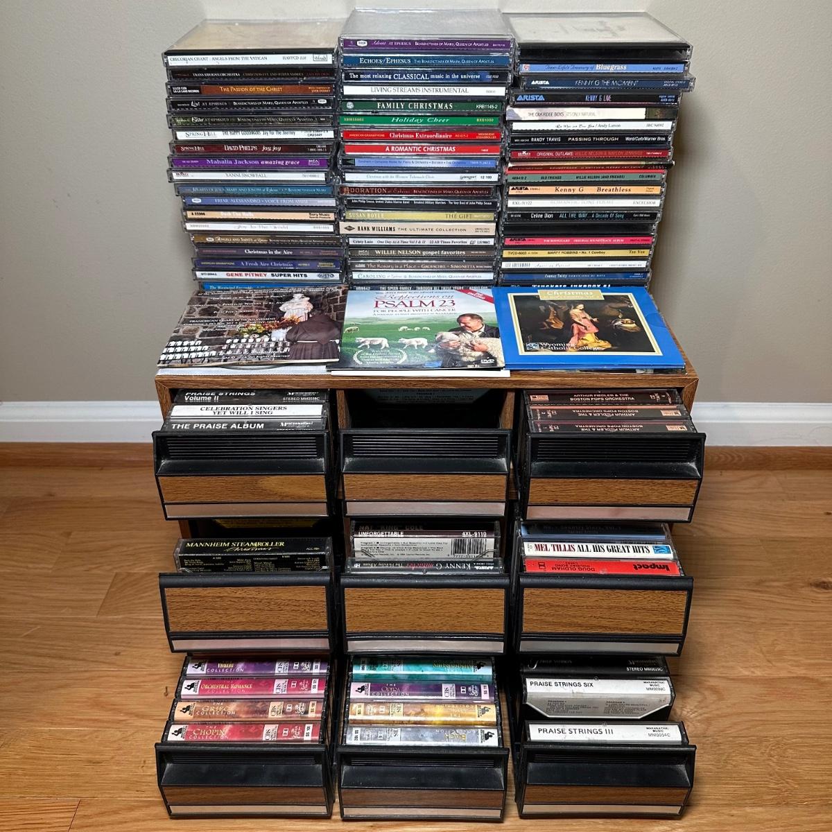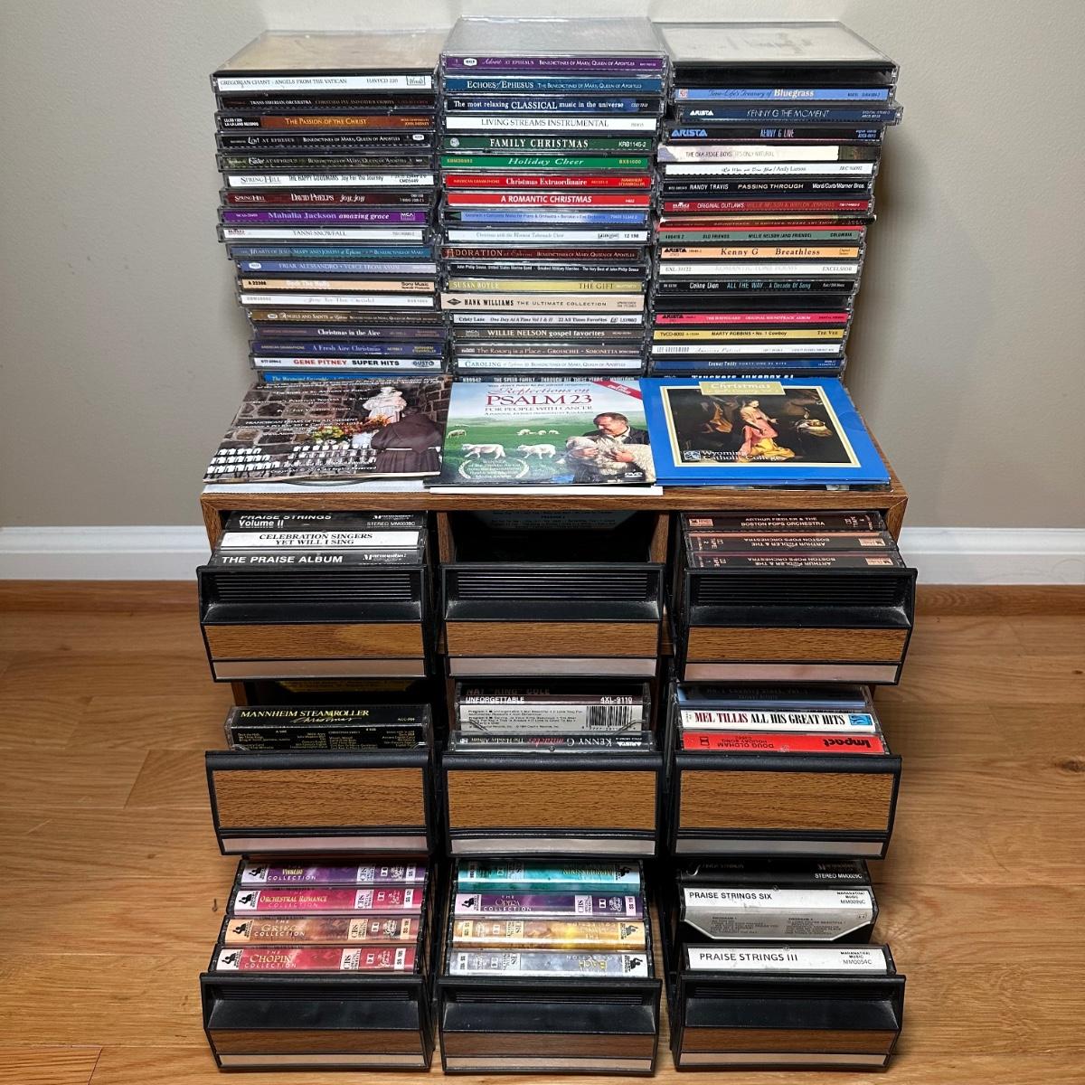 LOT 18K: Collection Of CDs, 8 Track Tapes & Tape Organizers
