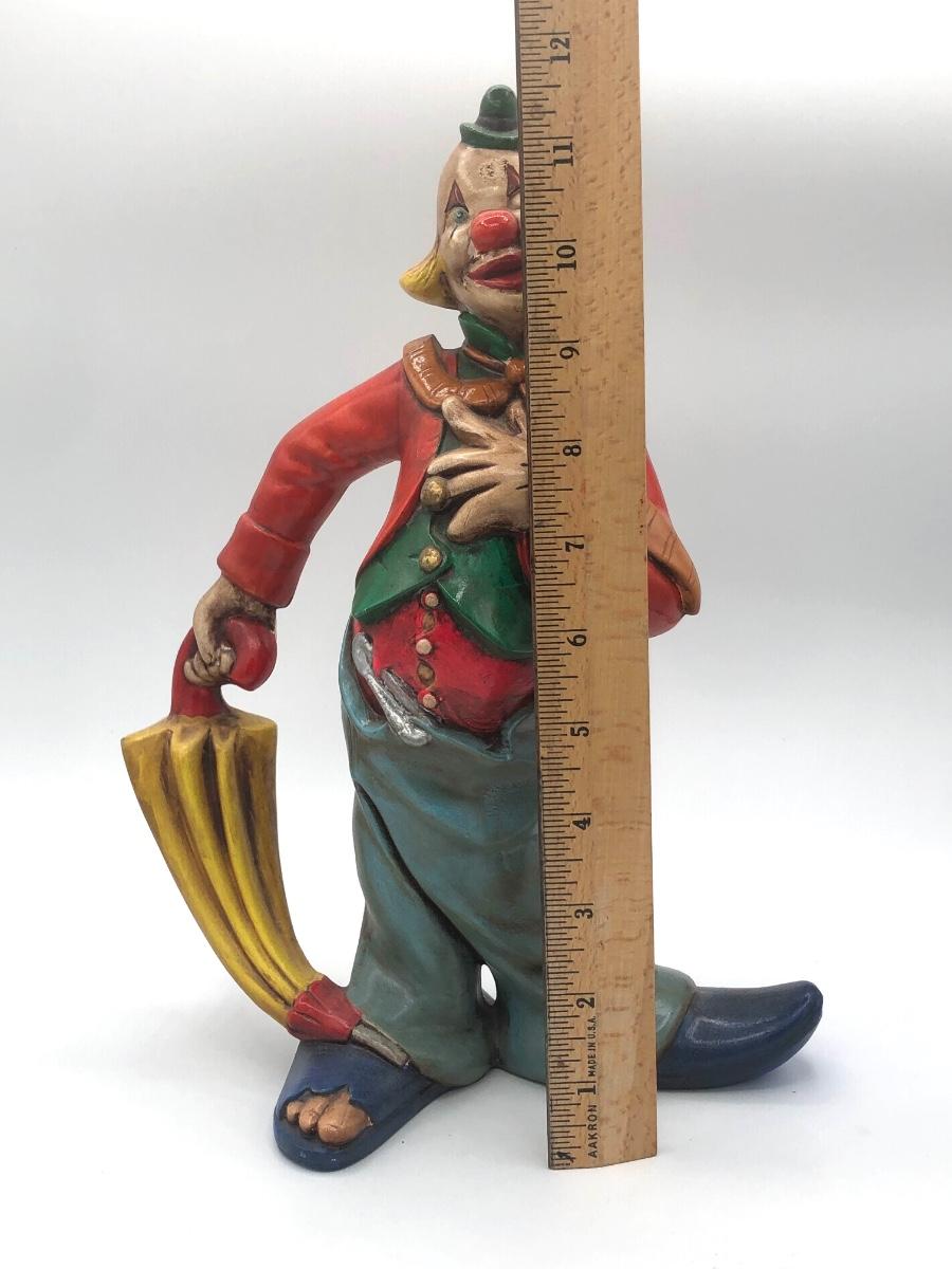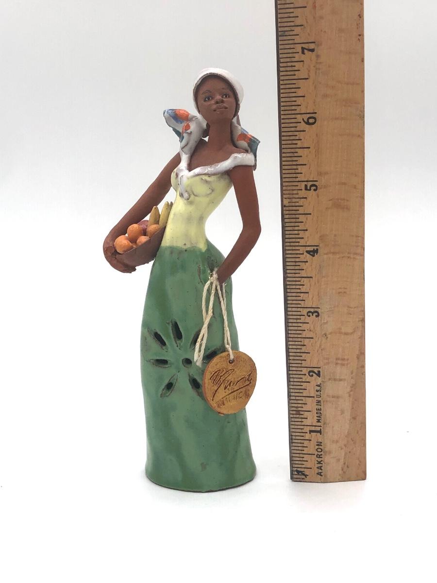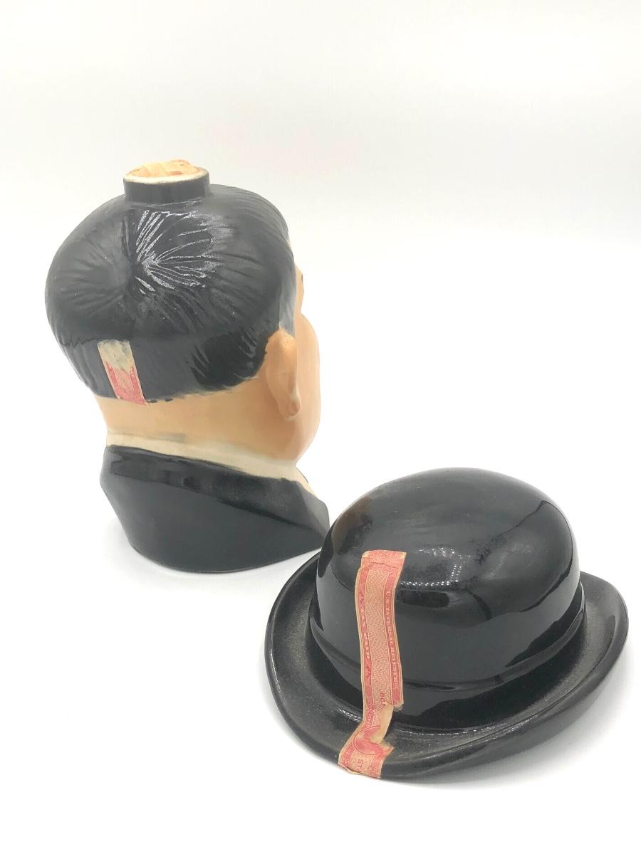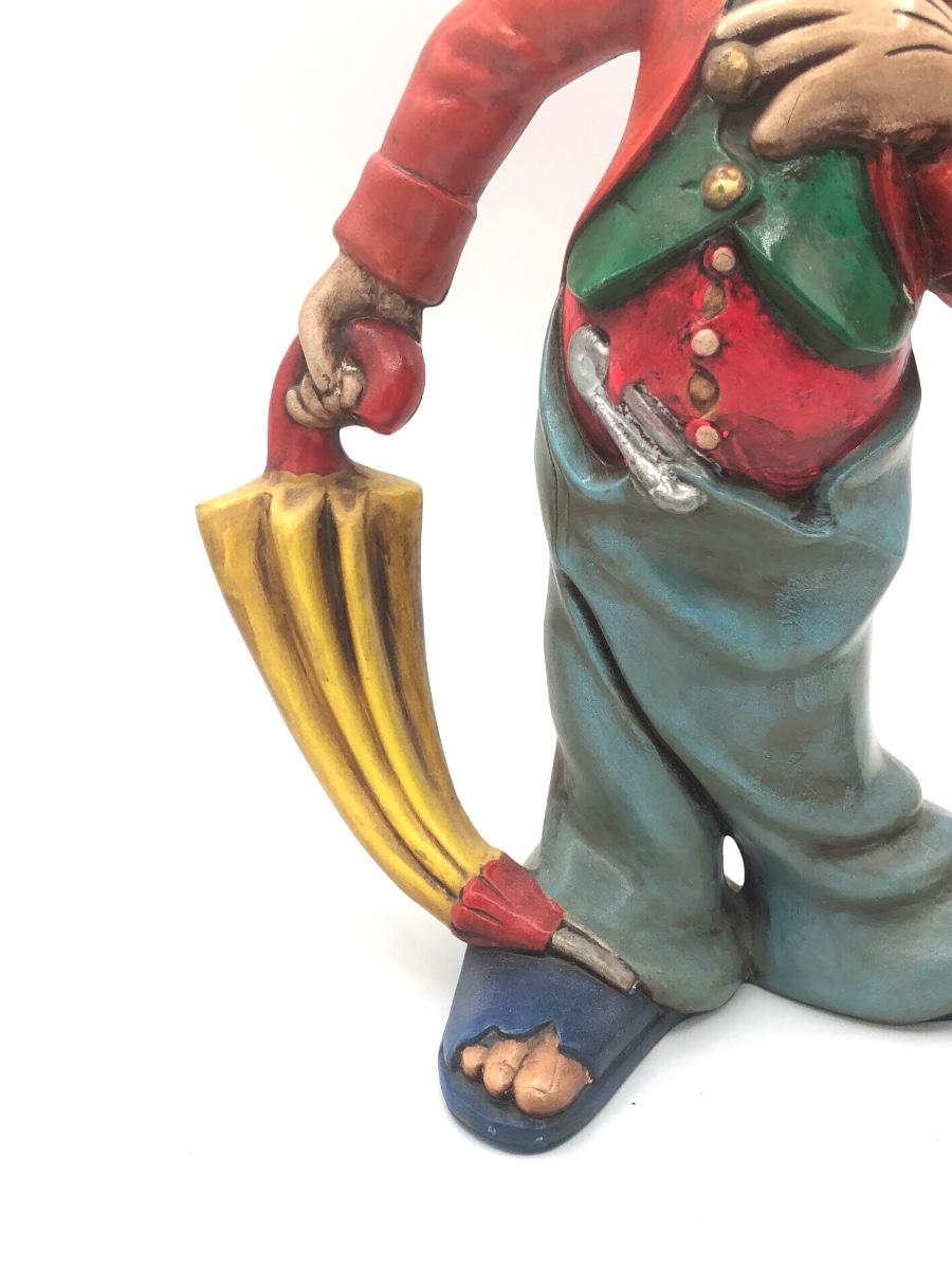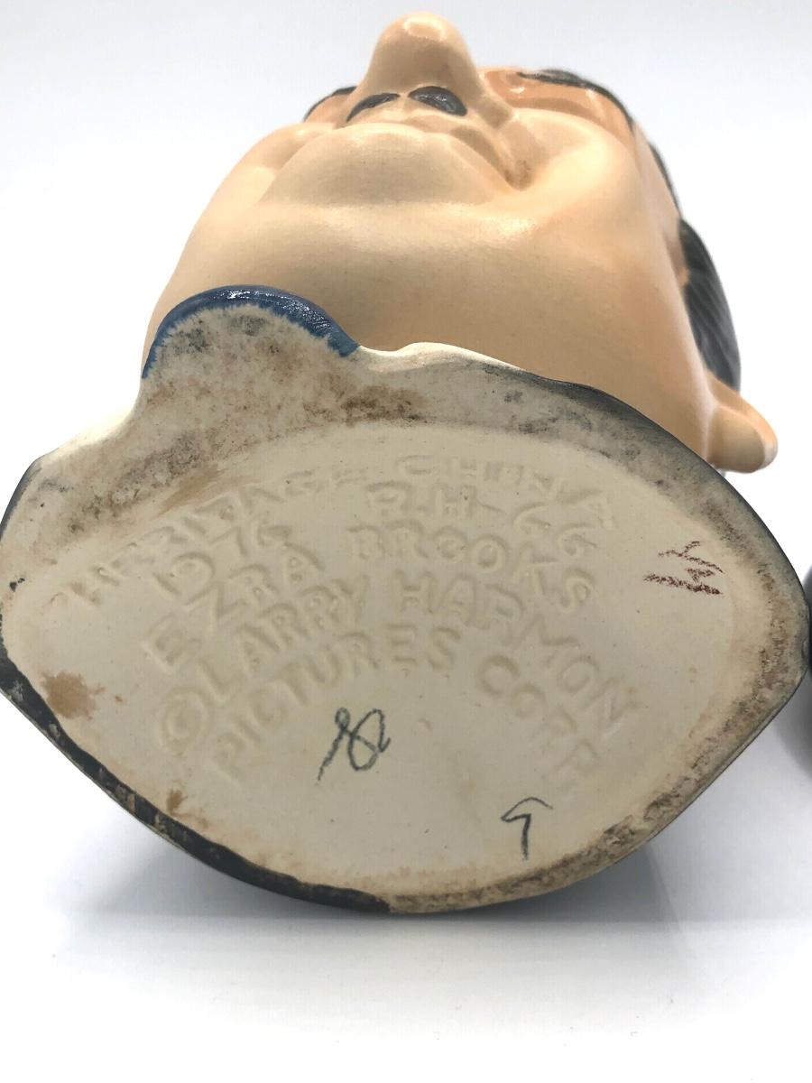 LOT 31L: Vintage 1976 Ezra Brooks Oliver Hardy Whiskey Decanter, Vintage Atlantic Mold Ceramic Circus Clown Figure, 1979 Signed George Hull Villager Figurines & Jamaican Clay Woman Figure