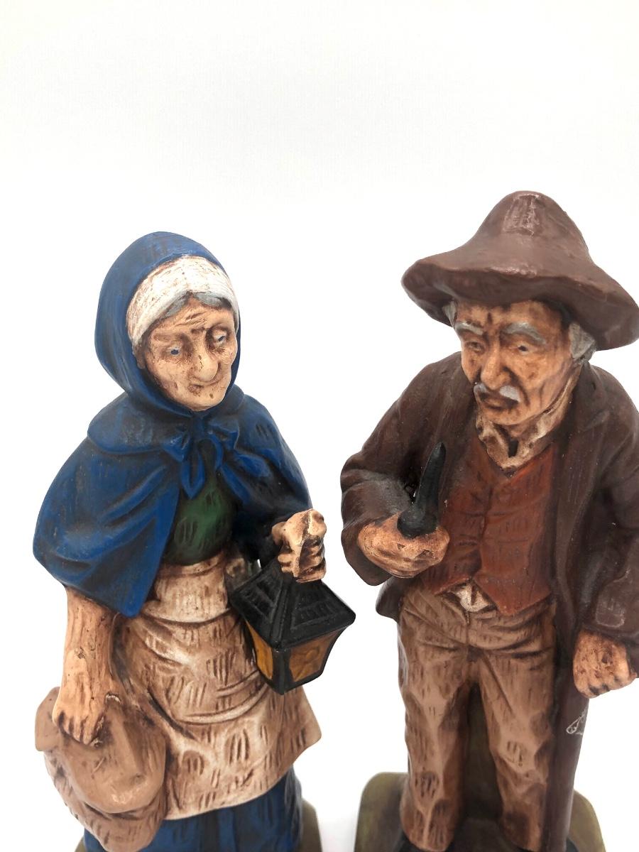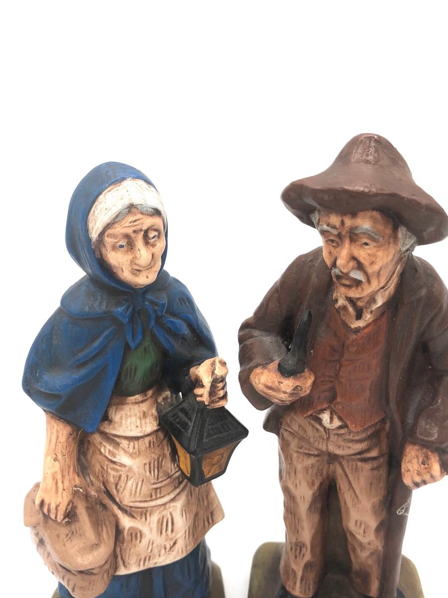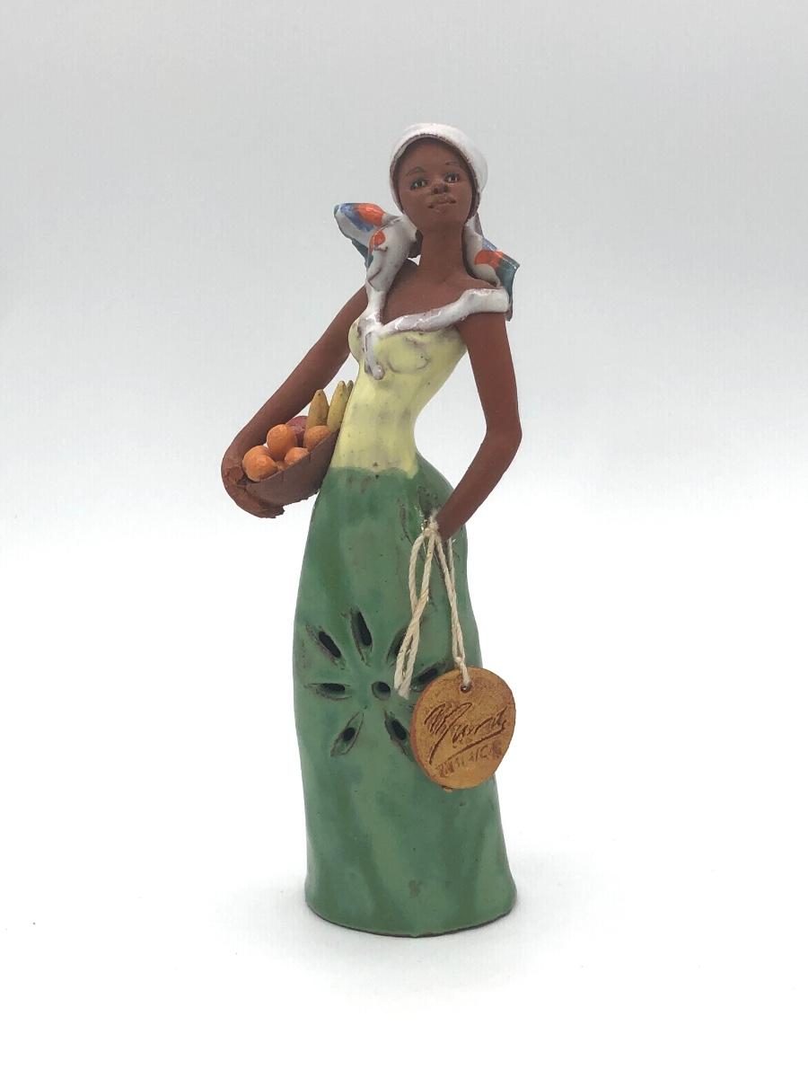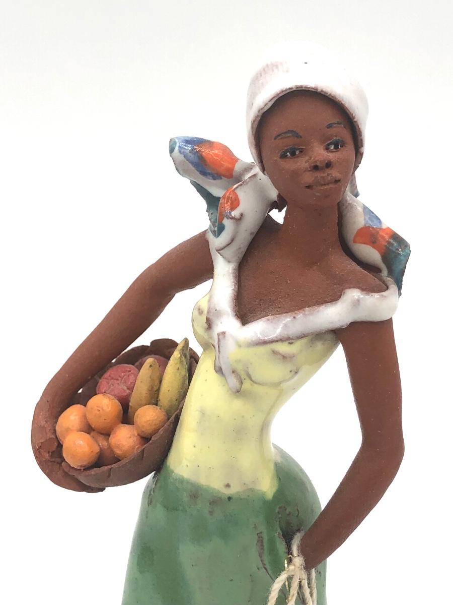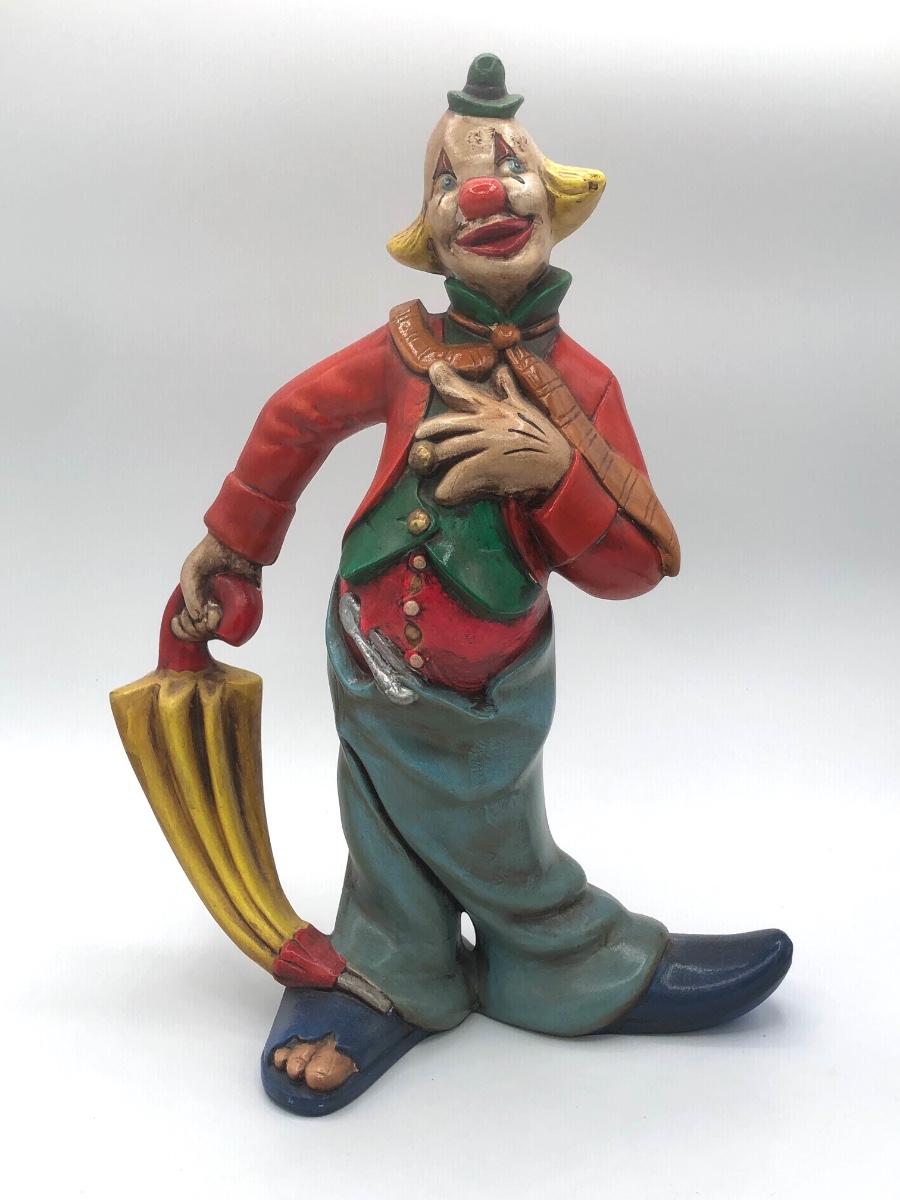 LOT 31L: Vintage 1976 Ezra Brooks Oliver Hardy Whiskey Decanter, Vintage Atlantic Mold Ceramic Circus Clown Figure, 1979 Signed George Hull Villager Figurines & Jamaican Clay Woman Figure
