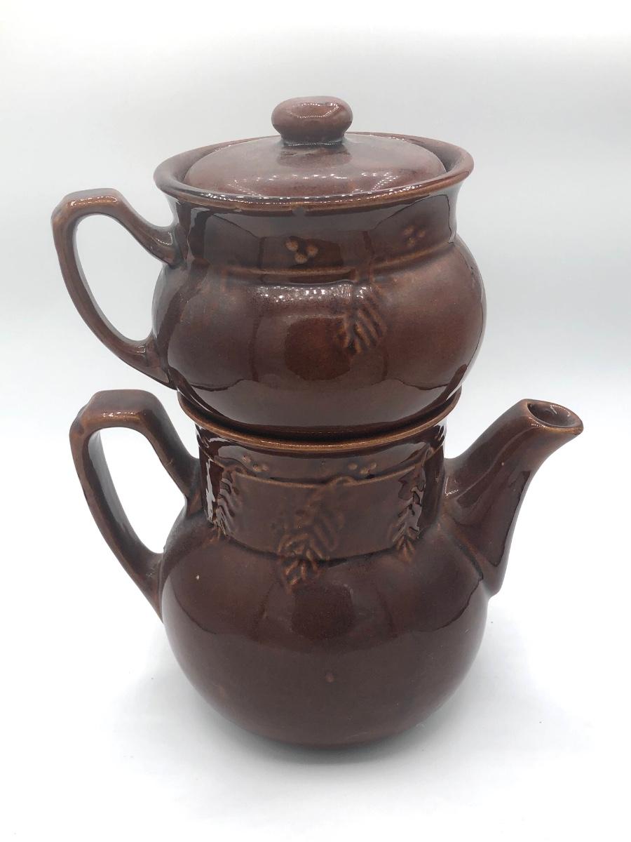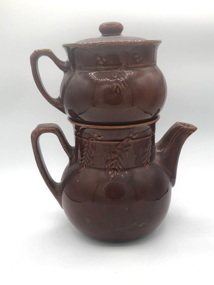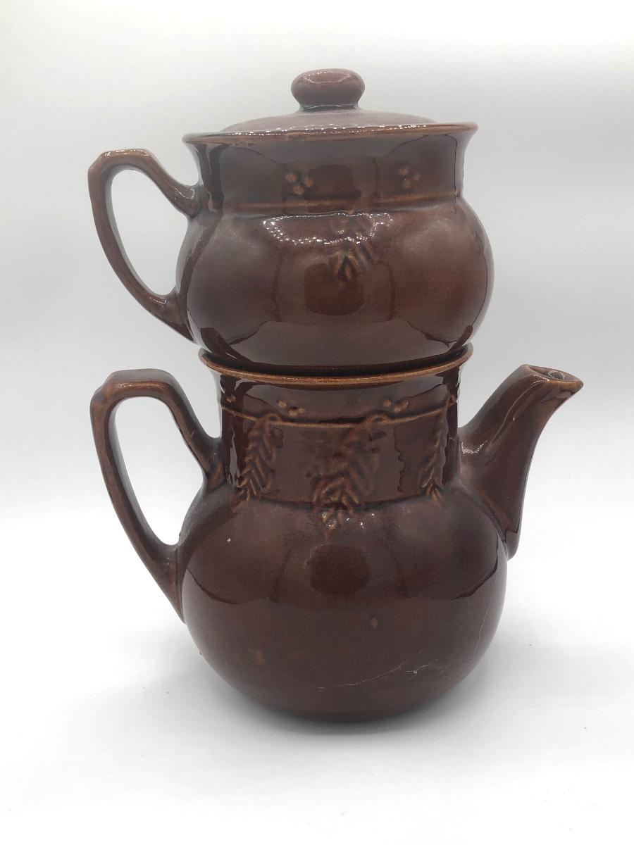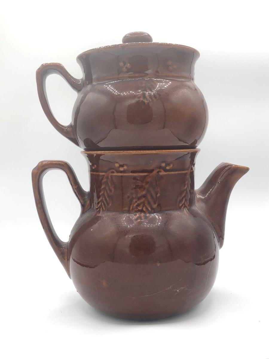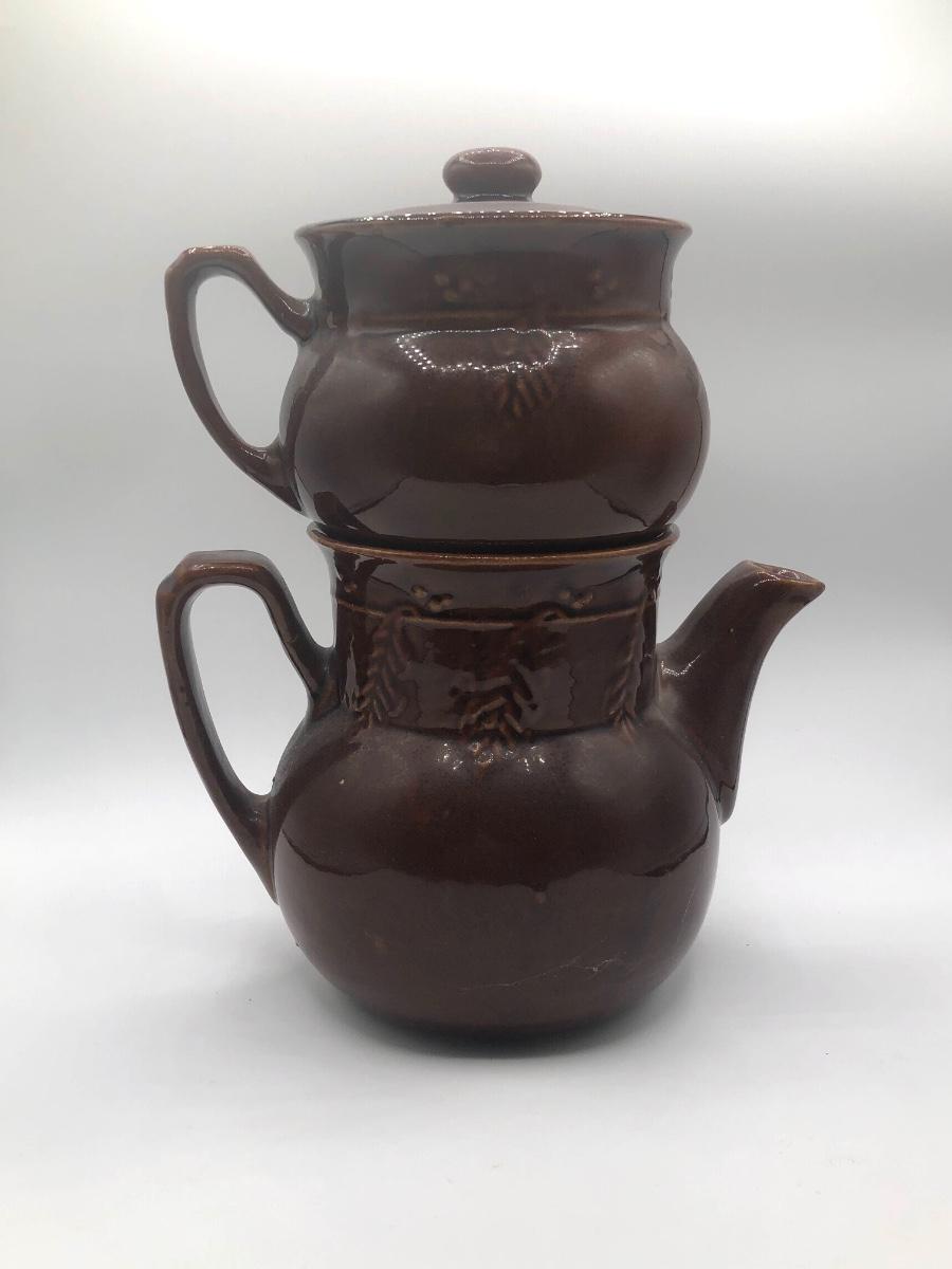 LOT 33L: Vintage Stoneware Coffee Pot Drip Percolator Made in USA