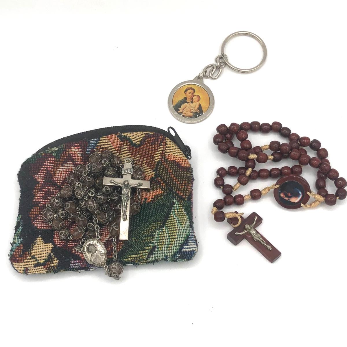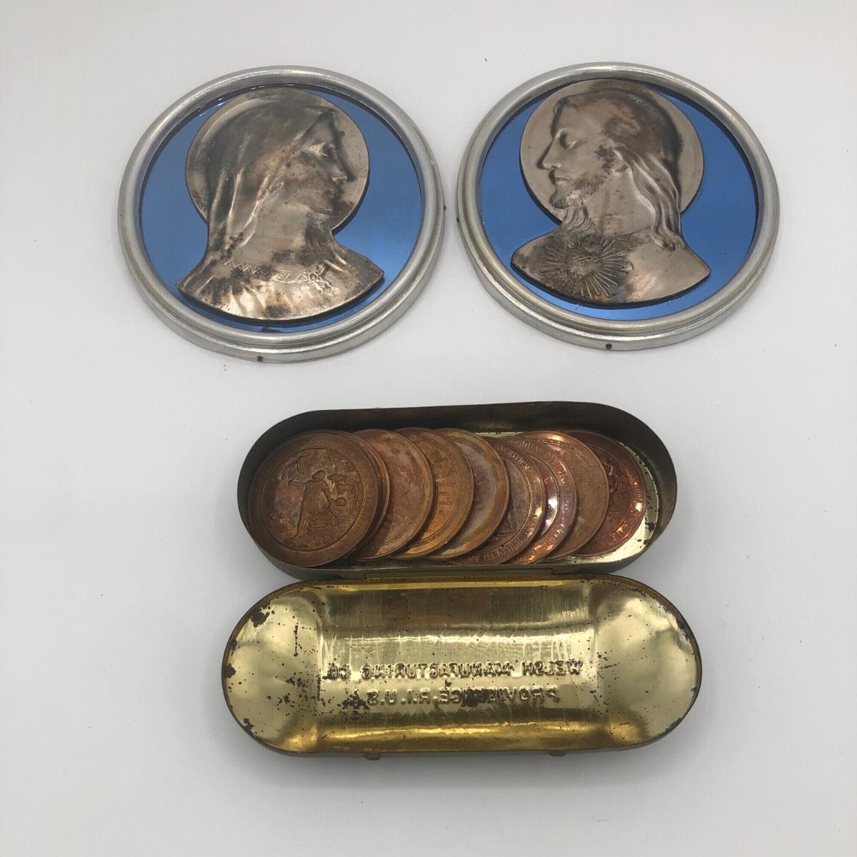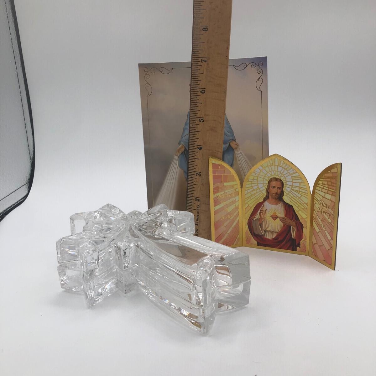 LOT 35L: Religious Collection - Lenox Crystal Covered Cross Trinket Box, Rosaries, 10 Biblical Coins, Crucifixes & More