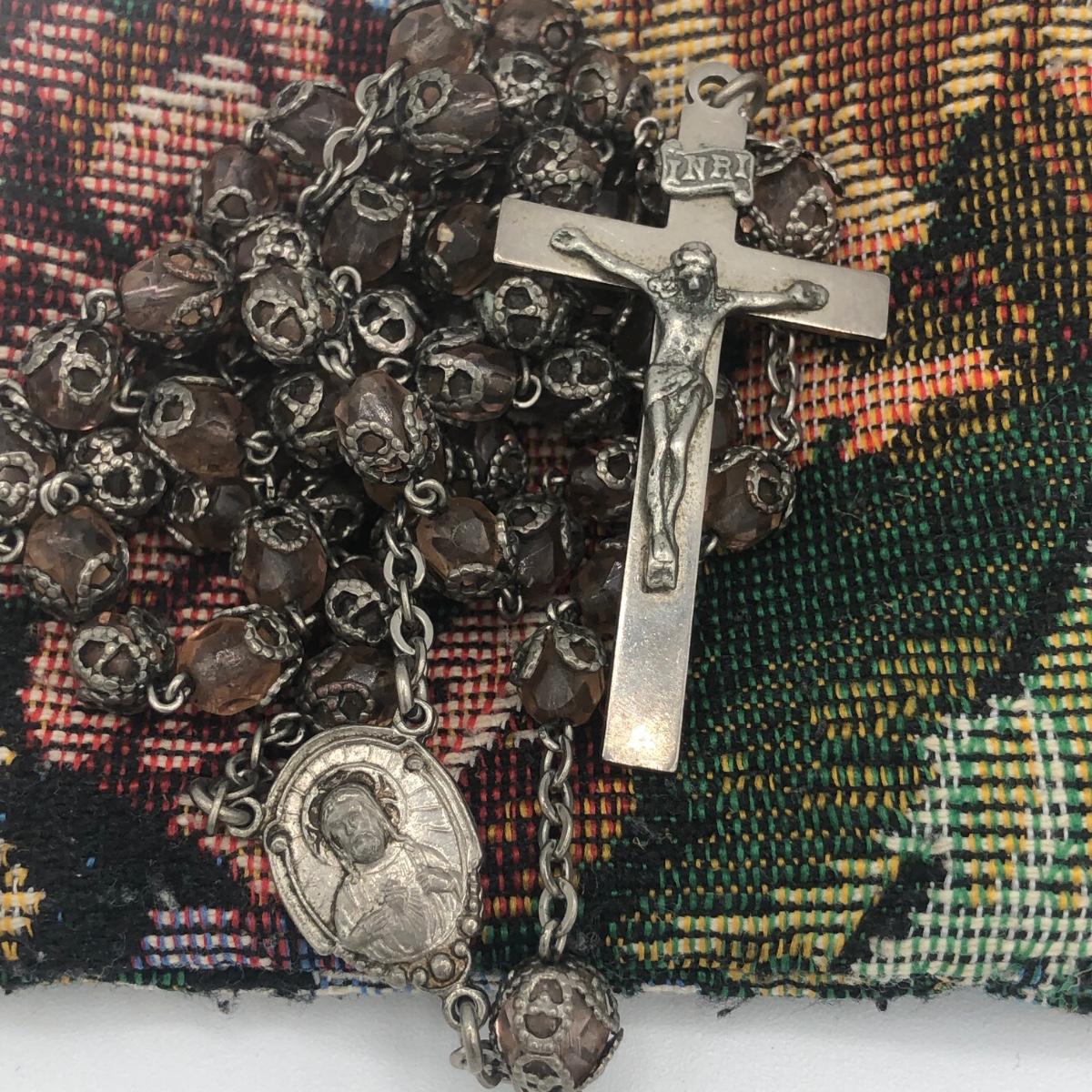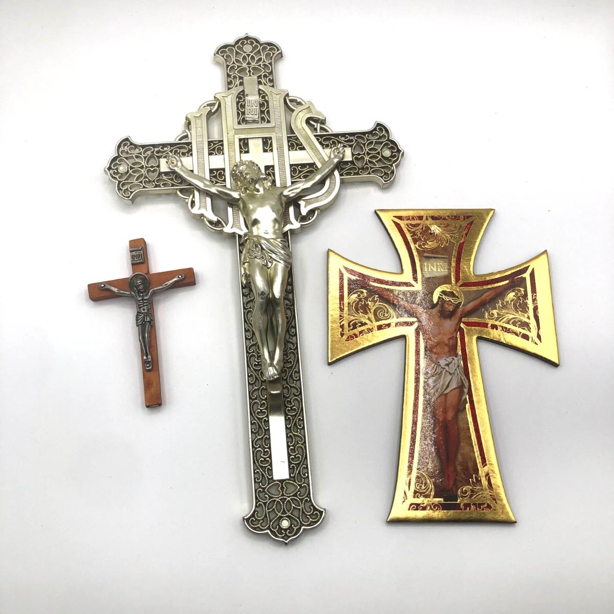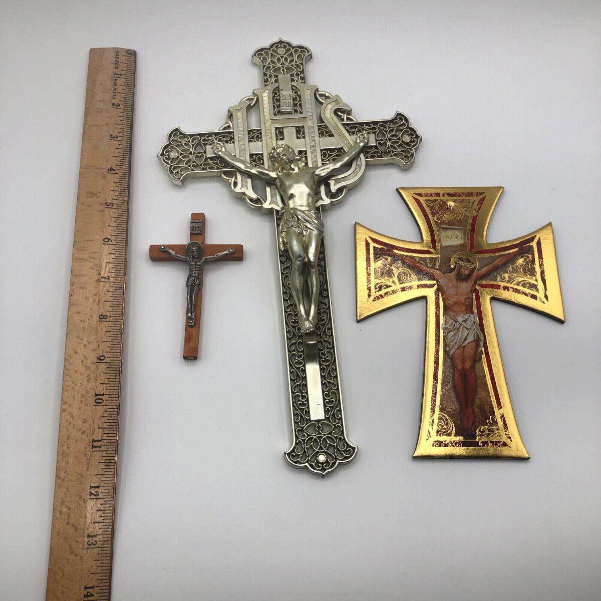 LOT 35L: Religious Collection - Lenox Crystal Covered Cross Trinket Box, Rosaries, 10 Biblical Coins, Crucifixes & More