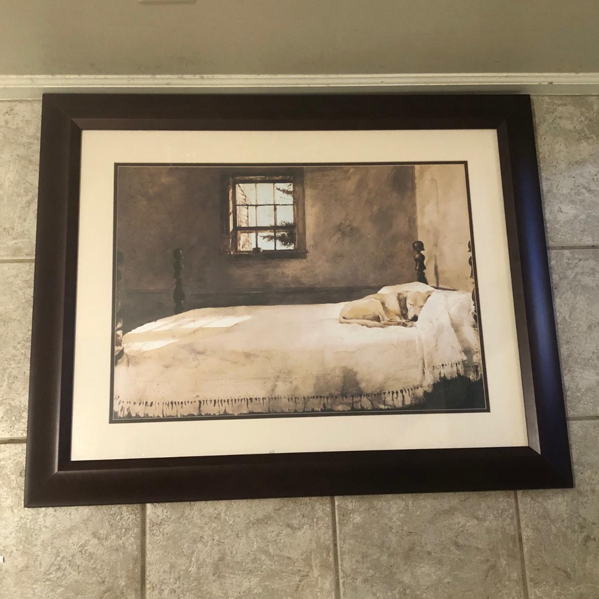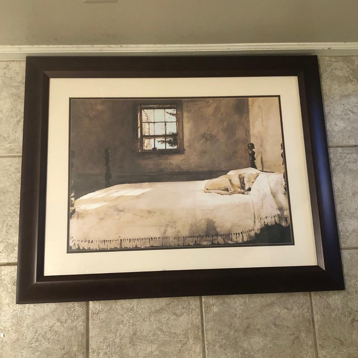 LOT 40L: Andrew Wyeth "Master Bedroom" Framed Art Print, MCM Autumn Color Leaves Metal Wall Hanging & Royal Board Sweden Wall Art